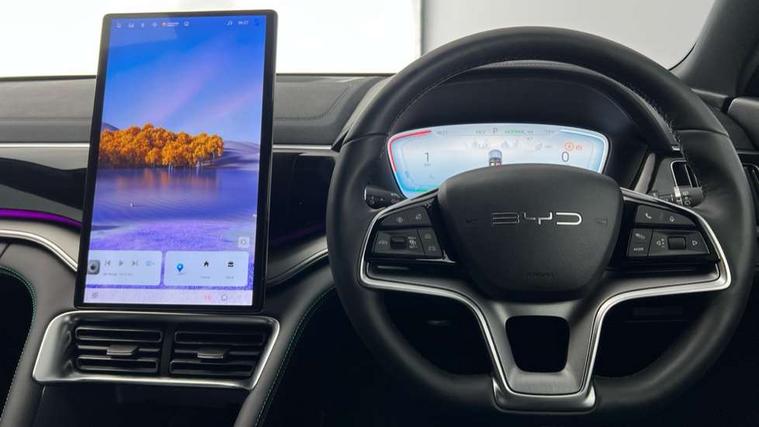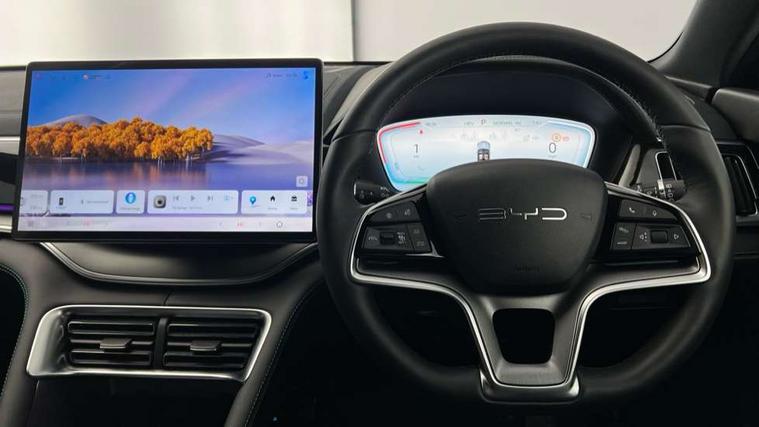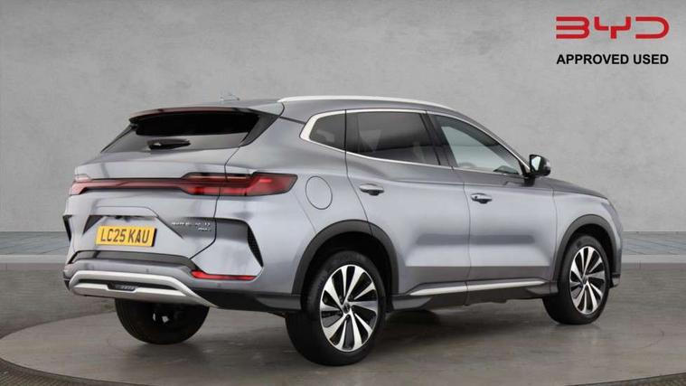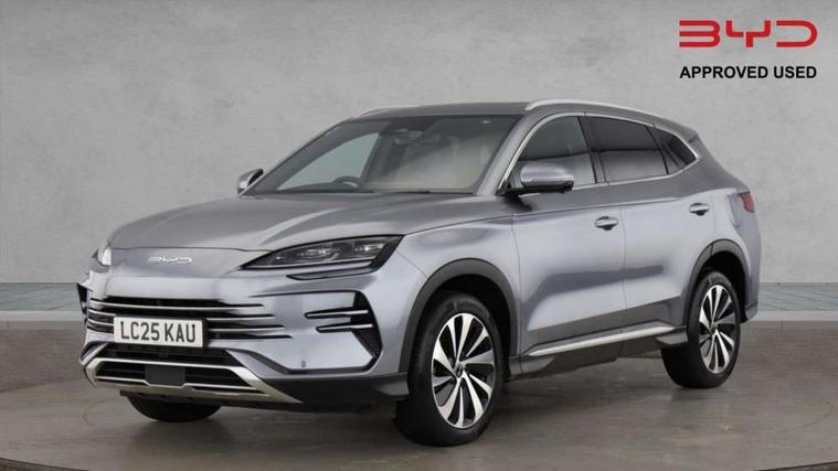 12.3" TFT full LCD instrument panel, 360 camera, Adaptive Cruise Control (ACC) and Intelligent Cruise Control (ICC), Automatic vehicle hold, Blind spot detection, BYD voice control assistant "Hi, BYD", Controller Deceleration Parking (CDP), Drive mode select (Eco, normal, sport, snow), e-Call (emergency call), Electric tailgate release, Emergency Lane Keeping Assist (ELKA), Forward collision warning, Front and rear parking sensors, Front cross traffic alert and front cross traffic brake, Head up Display, Indirect driver fatigue management, Intelligent Speed Limit Control (ISLC), Keyless system entry and start, Lane change assist, Lane Departure Assistant (LDA) and Lane Departure Warning (LDW), Lane departure prevention, PAS, Predictive collision warning, Rear collision warning, Rear cross traffic alert and rear cross traffic brake, Rollover Control System (RMI), Smartphone wireless charging, 2 x 15W, Traffic sign recognition (TSR), Vehicle-to-Load (V2L) function, 11kW on board charger, Mode 3 Type 2 charging cable (3 phase), V2L (Vehicle to load) power strip - Type F, 15.6" Electrically rotatable touchscreen, FM/DAB+ radio, Front USB ports, 1 x 18W Type C, 1 x 60W Type C, Infinity sound system with 10 speakers, Rear USB ports, 2 x 18W Type C, Aluminium roof rails, Auto dimming interior rear view mirror, Auto headlamps (on/off), Dynamic welcome lights, Electric folding and heated door mirrors, Emergency tow hook, Exterior mirror footlights, Follow me home headlights (The headlights turned on in advance and delayed off function), Front windscreen, UV protection, thermal insulation and sound proofing, High beam assist, LED 3rd brake light, LED daytime running lights, LED Headlights, LED taillights, One touch electric front/rear windows with pinch protection, Panoramic sunroof with anti-pinch sensor and electrically adjustable sunshade, Rain sensor windscreen wipers, Rear fog lights, Rear side wing doors, Rear window and rear windscreen with tinted glass, Rear wiper, 12V power outlet, 3 seat bench in 2nd row, 8 way electrically adjustable drivers seat, Adjustable rear headrests, Boot parcel shelf, Driver and passenger sunvisors with illuminated vanity mirrors, Driver seat memory function, Front centre armrest with 2 cupholders, Front LED reading lights, Front passenger seat with 4-way electric adjustment, Front seat footlights, Heat pump, Heated front seats, Heated steering wheel, Integrated headrest in front seats, ISOFIX and i-Size for front passenger and outer rear seats, LED front door lights, Nylon floor mats, PM2.5 air filter, PM2.5 air purification system, Rear air vents, Rear armrest with 2 cupholders, Rear side LED reading lights, Rhythm-reactive multi-colour ambient lighting, Single front passenger seat, Split folding rear seats - 40/60, Vegan leather multifunction steering wheel, Vegan leather upholstery, Ventilated front seats, 3x3 point rear seatbelts, ABS/EBD, Automatic emergency braking system, Brake override system (BOS), Child presence detection, Comfort stop, Door open warning, Driver airbag, Electric parking brake, Force limiting pre-tensioned front seat belts, Front centre airbag, Front passenger airbag, Front passenger airbag deactivation, Front side airbags, Hill descent control, Hill hold control, Hydraulic Brake Assist (HBA), Hydraulic brake boost, Mechanical child safety lock, Rear middle seat force limiting seat belt, Rear seat belt pretensioners, Reflective vest, Side curtain airbags, Traction control system (TCS), Tyre pressure monitoring system (TPMS), Vehicle Dynamics Control System (VDC), Warning triangle, 2 x Smart keys, Anti theft alarm system, Automatic door locking, 19" Bi-colour alloy wheels, Tyre nut covers remover, Tyre repair kit,