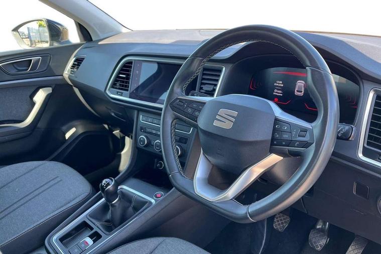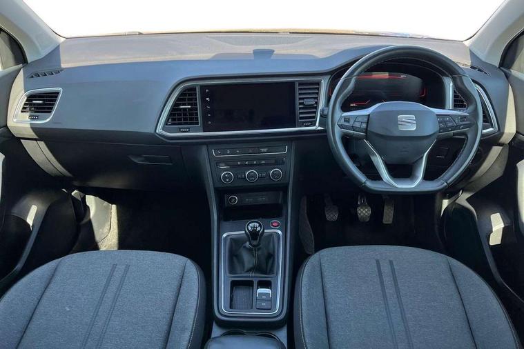 8" Digital cockpit, Colour multi-function on board computer display, Cruise control system with speed limiter, E-call, Outside temperature gauge, PAS, Self parking functionality (includes front and rear parking sensors), Start/stop system, Tailgate, Trip computer, Wireless full link smartphone integration, Wireless phone charger, Steering wheel mounted audio/phone controls, Black wheel arch surrounds, Body colour bumpers, Chrome front grille frame, Chrome roof rails, Chrome side window trim, Daytime running lights, Door mirrors with welcome light silhouette, Dynamic headlight range control with self adjusting whilst driving, Electric adjustable/heated/folding door mirrors, Front and rear electric windows, Full LED headlamps with lens and LED front fog lamps with cornering function, LED rear tail lights with dynamic indicators, Rear fog lights, Rear side wing doors, Rear wash/wipe, Simulated exhaust pipes, Third brake light, Variable front intermittent wipers, 12V socket in front, 3 seat bench in 2nd row, 60/40 split folding rear seat, Cloth upholstery with front comfort seats, Drawer under right front seat, Dual zone climate control, Front and rear head restraints, Front centre armrest, Front seat back storage pockets, Height adjustable driver and passenger seat with lumbar adjustment, ISOFIX points in outer rear seats with top tether anchorage points, Leather steering wheel and gear knob, Rear armrest and easy back seat release mechanism from boot, Single front passenger seat, Interior lighting pack - Ateca, Navigation system pack with DAB - Ateca, 3x3 point rear seatbelts, ABS, Traction control system (TCS), Electronic stability control (ESC) and Electronic differential lock system (XDS), Airbags - Driver and front passenger airbag with deactivation, front side, two curtain and driver's knee airbags, Electric parking brake with auto hold function, Front and rear seatbelt reminder, Front assist with autonomous emergency braking, Hill hold control, Manual rear child locks, Single tone horn, Tiredness recognition system, Traction control, Tyre pressure monitoring system, Alarm, Keyless entry, Locking wheel bolts, Remote central locking, Chrome interior detailing, 18" Performance machined alloy wheels 36/2 in nuclear grey,