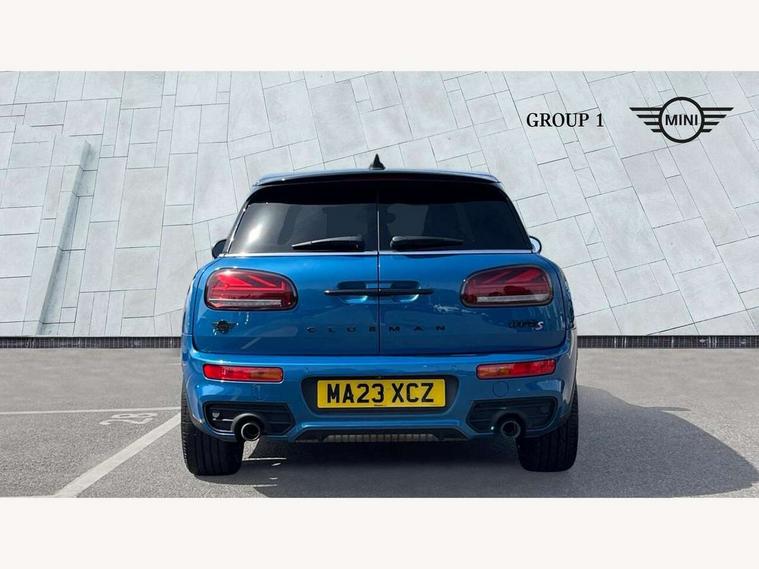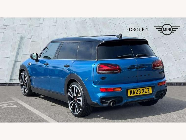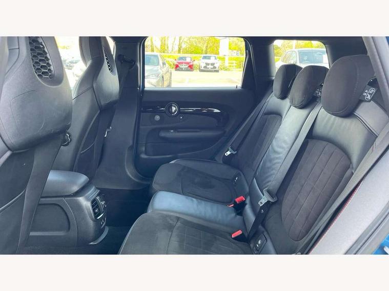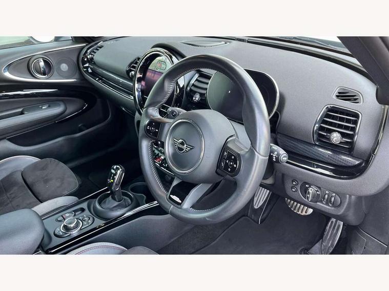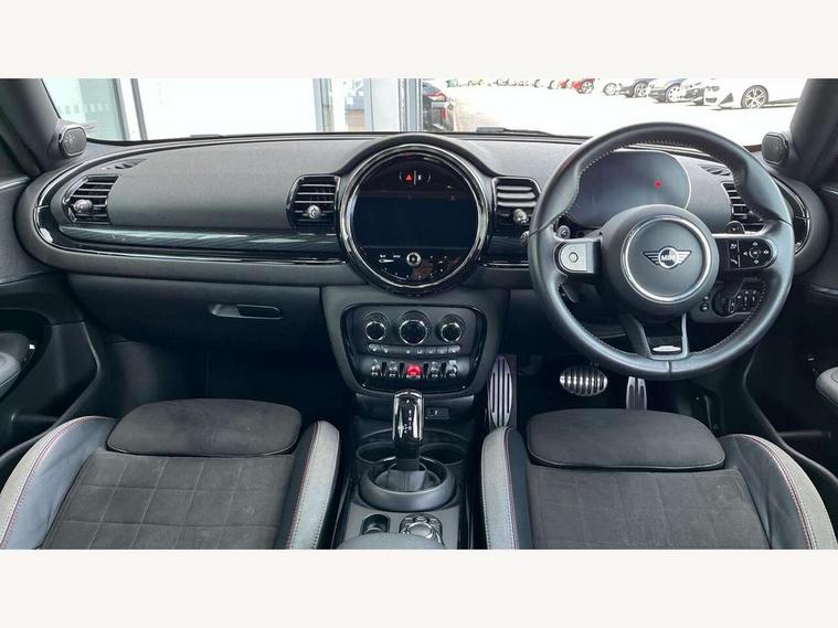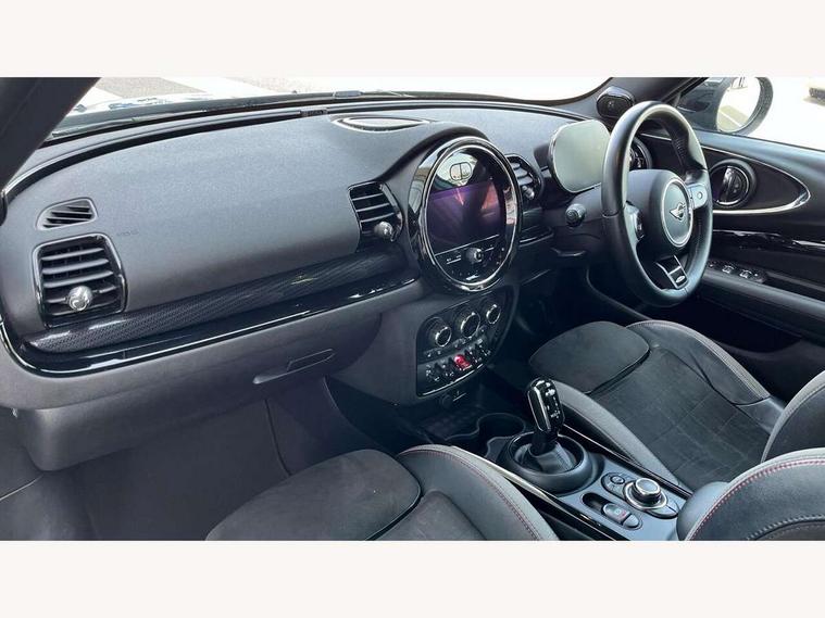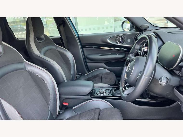 Active Guard incl speed limiting and lane departure functions with auto steering, and front collision warning with brake intervention, Automatic start/stop function with brake energy recuperation, Compatible mobile phone bluetooth with audio streaming, Digital cockpit, Electro-mechanical speed dependant steering assistance, Instrument cluster, Mini E-call, MINI TeleServices, On board computer, Rear parking distance control, Double Vanos system, Fully variable valve control, High precision injection, Performance Control, Steptronic sport transmission with double clutch and steering wheel paddles, FM tuner and DAB digital radio, Bonnet scoop, Chrome fuel filler cap, Dynamic brake lights, Electric windows, Heated rear window, Heated windscreen washer jets, John Cooper Works - aerodynamic kit (front and rear apron, spoiler), front and rear sport bumpers and part-painted side sills with door sill finishers, John Cooper Works rear spoiler, LED headlights with closed ring as daytime driving lights, LED rear light with union jack design, Metal door sill strips with Cooper S imprint, Model logo, Model logo on rear doors, Radiator grille, Rain sensor with auto headlights, Rear fog lights, Rear window wiper, Side scuttle panel with integrated indicator, Split rear doors, Sun/heat protection glass, Twin exhaust tailpipe, White indicator lenses, 12V Accessory socket in centre console, 360L luggage compartment capacity, 4 lashing eyes in luggage compartment, 60/40 split folding rear seat, Anthracite headlining with grab handles and clothes hooks, Chrome interior highlights, Cupholders, English handbook, Glove compartment, Height and length steering column adjustment, Interior lighting with 12 basic colours selectable via toggle switch in roof, Isofix rear child seat preparation, John Cooper Works perforated leather steering wheel with contrast stitching in chilli red and John Cooper Works logo, John Cooper Works sports seat with integrated headrest, adjustable thigh support and John Cooper Works logo, Leather gearshift lever and handbrake gaiters, LED reading lights, vanity mirror lights, front foot well light and spotlight on front seats, Manual air conditioning, Multifunction steering wheel, Storage compartments in doors, Sunvisors with vanity mirrors, Toolkit, Excitement pack - Clubman, Navigation pack - Clubman, 2 tone horn, 3 point seatbelts on all seats, 6 Airbags - front, side, head and seat belt tensioners, Anti-lock braking system (ABS), DSC - Dynamic Stability Control, Electronic handbrake, Front and rear disc brakes, Tyre pressure monitoring system, Alarm system with tilt sensor, monitoring doors, bonnet interior and tailgate, Auto drive away locking, Deadlocking function, Electronic vehicle immobiliser, Locking wheel bolts, Start/stop toggle with keyless go,