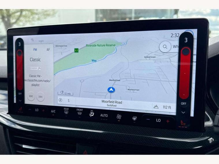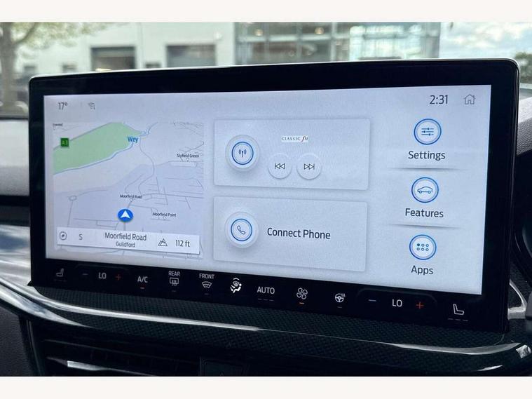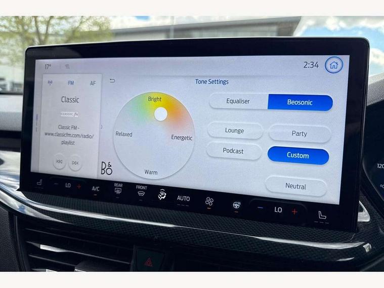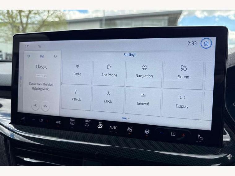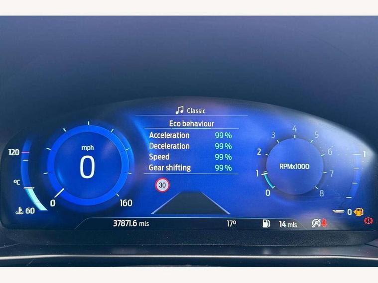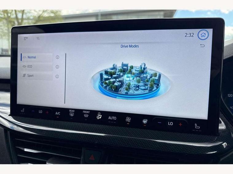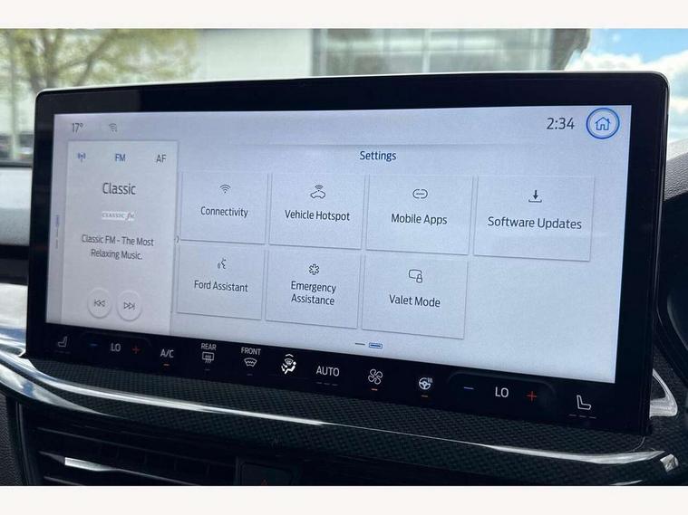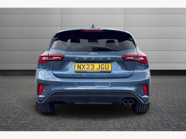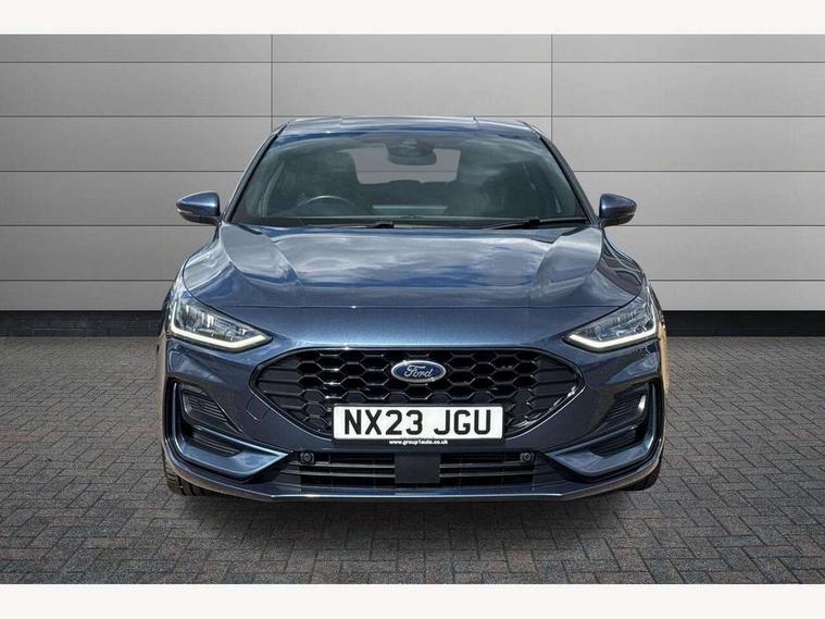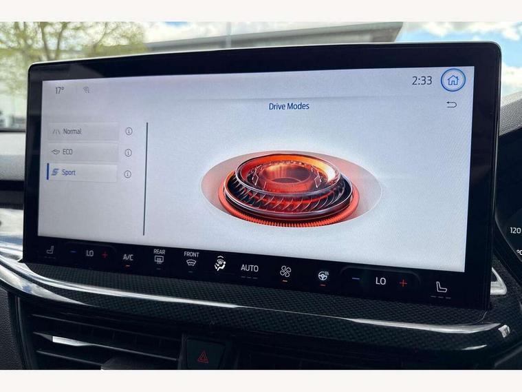 12.3" Digital instrument cluster, Bluetooth system, Digital clock, Easy fuel capless refuelling system, Eco mode, Ford SYNC4 Nav with 13.2'' touchscreen, DAB, Emergency Assistance, Apple Carplay & Android Auto, B&O Premium Audio with 10 speakers, FordPass Connect, Lane keeping system - lane keeping alert and lane keeping aid, PAS, Rev counter, Selectable drive mode, Service interval indicator, Trip computer, Wireless charging pad, Sports tuned suspension, 2 USB ports, Auto headlamps (on/off), Body coloured door handles, Electrically operated front and rear windows with one touch opening and closing, Electrically operated heated power fold door mirrors with puddle lamp with side indicators, Front variable intermittent wipers with electric wash, Heated rear window, LED daytime running lamp, LED rear lamps, LED third brake light, Polished twin tailpipe, Privacy glass, Quickclear heated windscreen, Rain sensor, Rear side wing doors, Tailgate wash/wipe, Unique ST-Line grille, full bodystyling kit, and large body coloured rear spoiler, 3 rear headrests, 3 seat bench in 2nd row, Dual zone electronic air temperature control, Full sensico premium upholstery, Height adjustable front headrests, Isofix child seat preparation, Load through ski hatch, Manual 4-way passenger seat adjusts, Power 4-way driver seat adjust, with power lumbar adjust, Reach + rake adjustable steering column, Single front passenger seat, Winter pack - Focus, 3x3 point rear seatbelts, ABS+Electronic Brake force Distribution, Auto hold function, Driver airbag, EDL traction control, Electronic parking brake, Electronic stability control, Front and rear seatbelt reminder, Front inertia reel height adjustable seatbelts with pre-tensioners, Front passenger airbag, Front side airbags, Passenger airbag deactivate switch, Post collision braking, Pre collision assist with autonomous emergency braking and pedestrian/cyclist detection, Red brake calipers, Remote/power child rear door locks, Side curtain airbags, Three rear inertia reel lap/diagonal seatbelts, Tyre pressure monitoring system, Keyless entry and keyless start, MyKey system, Remote central locking & engine immobiliser, Thatcham alarm with power door dead locks, 18" 5x3 spoke pearl grey high gloss machined finish alloy wheels with mini spare wheel,