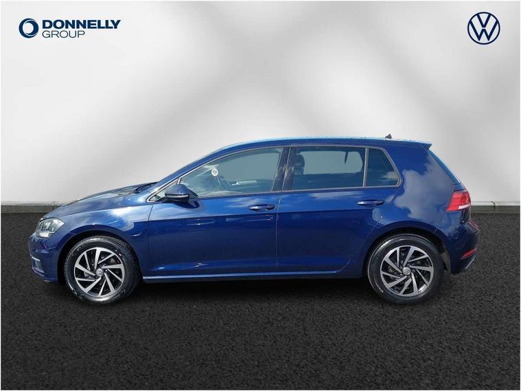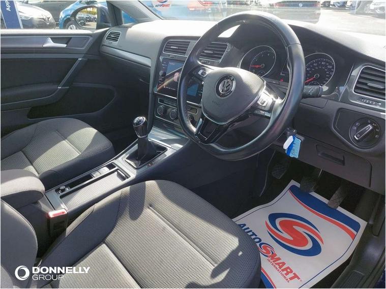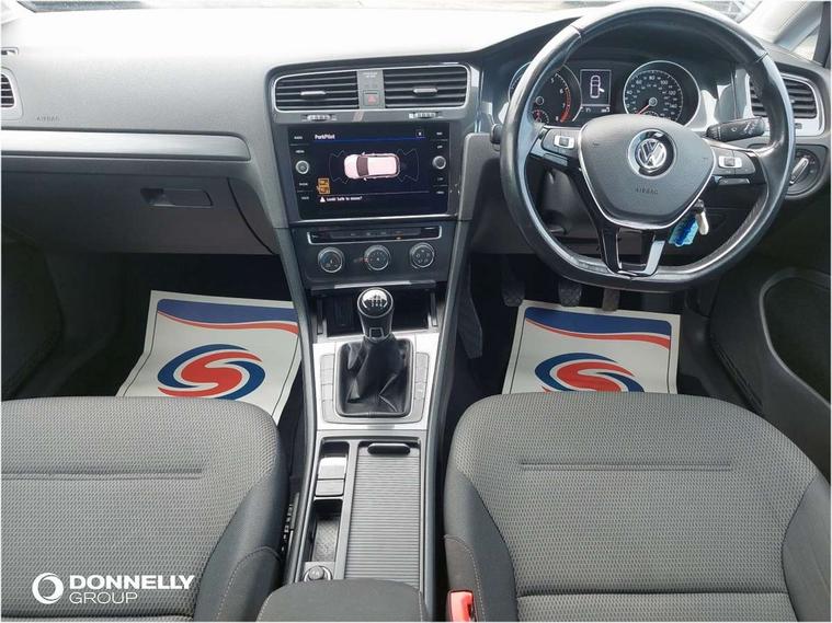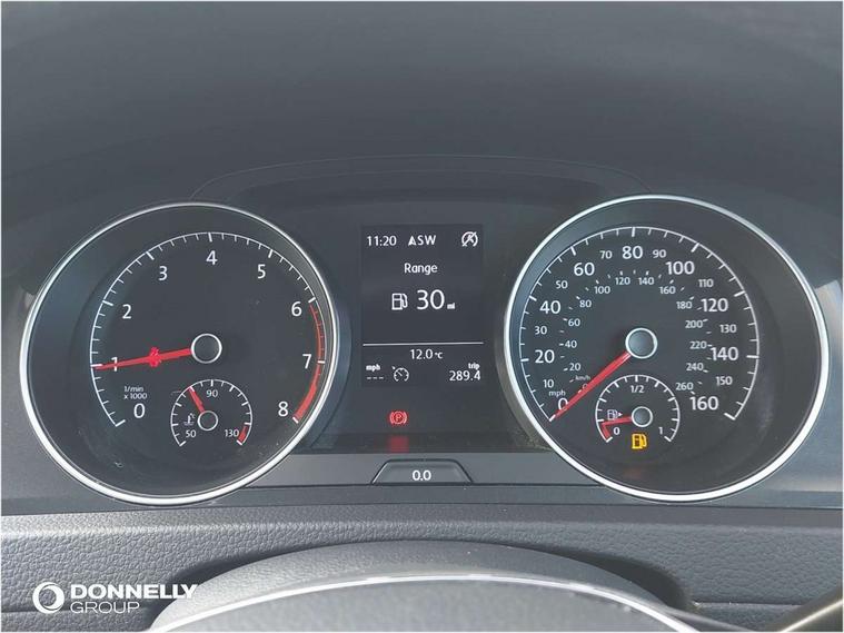 'Lights On' Reminder warning buzzer, ACC - Adaptive cruise control with front assist, forward collision warning, distance monitoring, city emergency brake and speed limiter, Bluetooth telephone and audio connection for compatible devices, Brake pad wear indicator warning light, Car net app connect combined functionality of Apple CarPlay, Android Auto and MirrorLink, USB connection, audio and voice control, Driver alert system, Driver profile selection, Driving Mode Selection with four preset modes - Eco, normal, sport or individual modes, Instrument cluster in white, Multifunction computer with visual gear change recommendation for fuel consumption, Power assisted speed sensitive electro-mechanical steering, Push tank flap, Speed limit display, Speedo, rev counter, electronic odometer, trip, service interval display, exterior temperature and fuel gauge, Stop/start system, Ultrasonic front and rear optical and audible parking sensors, Warning buzzer and light for front seatbelts unfastened, Battery regeneration during braking, XDS electronic differential lock, 8 Speakers, Composition media system, DAB Digital radio receiver, Driver Personalisation profile selection, MDI multi device interface, MP3/WMA compatability, Premium USB cable in choice of either Apple or Android smartphone compatibility, SD card slot, SMS Functionality, Title and cover art display, 4 X 20W output, USB connection and socket, USB and SD card connectivity, Aspherical driver's exterior mirror, Automatic coming/leaving home lighting function, Automatic dimming rear view mirror/rain sensor, Black front air intake and radiator grille with chrome insert, Black rear diffuser, Body colour bumpers, Body colour door handles, Body colour door mirrors with integrated indicators, Dusk sensor + automatic driving lights, Electric front windows, Electric rear windows, Electrically adjustable and heated door mirrors, Fully galvanised body, Heated rear windscreen, Hidden exhaust pipe, High level 3rd brake light incorporating LED Technology, LED front fog lights with static cornering light function, Range adjustable headlights via infotainment system with LED daytime running lights, Rear fog lamp, Rear number plate lights incorporating LED technology, Rear tinted glass 65% light absorbing from B pillar backwards, Rear window aerial, Rear window wash/wipe with intermittent wipe, Reflectors in all doors, Remote electrically foldable door mirrors, door mirror puddle lights and reverse activated kerb-view adjustment on passengers door mirror, Tailgate with integrated rear roof spoiler, Windscreen wipers/ intermittent wipe + 4 position delay, 12V socket in luggage compartment, 3 rear headrests, 3 spoke steering wheel, 4 load lashing points in luggage compartment, 60/40 split folding rear seat backrest, Auto fold down lever in rear seat backrest, Bag hook in luggage compartment x 2, Cooled glovebox, Courtesy light delay, Cupholder cover, Dust/pollen filter, Front and rear reading lights incorporating LED technology, Front centre armrest with storage compartment and two rear air vents, Front passenger seat height adjust, Front seat back storage pockets, Grab handles front x 2, rear x 2 with integrated coat hooks, Height adjustable driver's seat, Height and reach adjustable steering wheel, Illuminated vanity mirrors, Instrument lighting white adjustable panel illumination, Interior light delay, Isofix preparation for 2 rear child seats, Load through provision with rear centre armrest and cupholders x2, Luggage compartment light, Overhead storage box, Passenger underseat drawer, Pearl grey headlining, Storage box in luggage compartment, Storage compartment in roof console with cover, Storage compartments in centre console, Storage compartments in front doors, Storage compartments in rear doors, Stowable luggage compartment cover, Sun visors, Variable boot floor, height adjustable and removable, Convenience Pack - Golf, Light and Sight pack - Golf, Mirror pack - Golf, 3 point height adj front seatbelts + pretensioners, 3 rear three point seatbelts, Airbags - Driver's and front passenger's, curtain airbag, Driver's knee, front side impact and passenger's airbag deactivation switch, Anti-lock Braking System (ABS) with Hydraulic Brake Assist (HBA), Automatic post collision braking system, Child locks on rear doors, Driver/Passenger optimised head restraints, Electronic parking brake with auto hold, ESP with EDL + ASR, Pre crash preventive occupant protection, Predictive pedestrian protection, Tyre pressure loss indicator, Volkswagen roadside assistance, Alarm with interior protection and deactivation via infotainment system, Electronic engine immobiliser, Remote central locking with 2 remote folding keys, Brushed dark silver decorative inserts in dash and door panels, Chrome plated air vent surround, Chrome-plated light switch surround, Decor strip on dashboard and door side trim, Polar night black centre console, Steel space saver spare wheel,