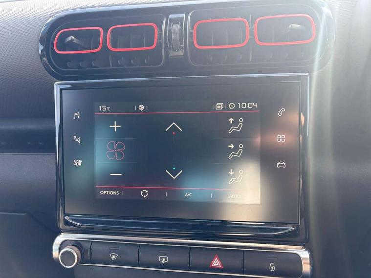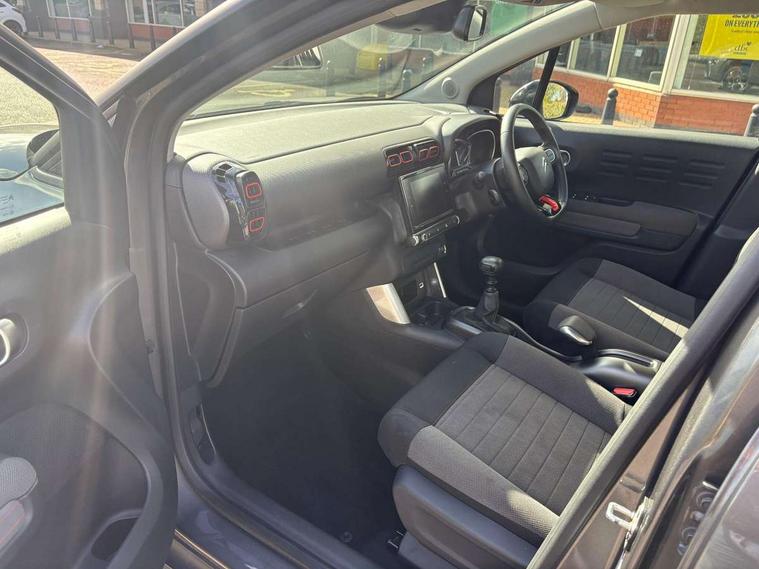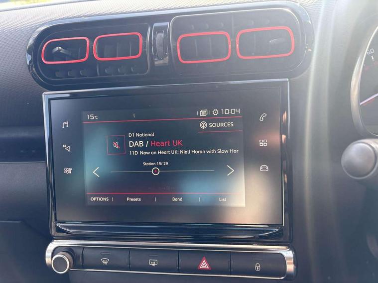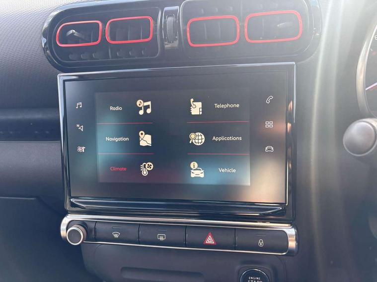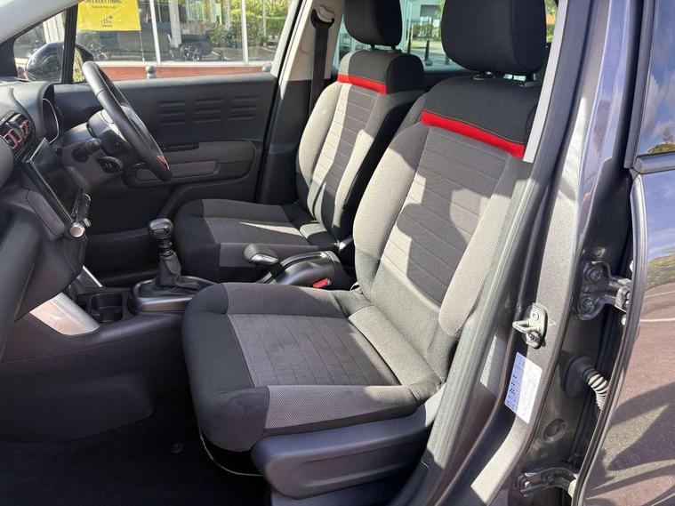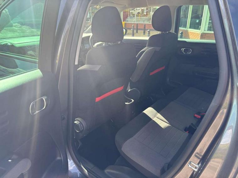 7" colour touch screen, Citroen connected nav with connect box and emergency assist system, Coffee Break Alert, Cruise control + speed limiter, Lane departure warning system, Mirror screen compatible with Apple Carplay and Andriod auto, Multi function on board trip computer, Rear parking sensors, Rev counter, Speed limit recognition and recommendation, Variable PAS, Bluetooth hands free and media streaming with USB socket and jack, Citroen connected DAB radio with 6 speakers, Steering wheel mounted controls for stereo and telephone, Auto dimming electrochrome rear view mirror, Automatic lights, Automatic windscreen wipers, Body colour bumpers, Body colour painted door handles, Dark tinted rear windows, Electric front windows + one touch + anti-pinch, Electric rear windows + anti-pinch, Electrically adjustable, heated and folding door mirrors, Front and rear aluminium effect bumper protectors, Front fog lights with cornering function, Halogen headlights with LED daytime running lights, Rear wiper, 0.5L Large bottle rear door storage, 1.5L Large bottle front door storage, 12 volt front socket, 12 volt rear socket, 60/40 split folding rear seat, Additional 12V socket in the rear, Automatic air conditioning, Boot light, Driver and passenger sunvisor with courtesy mirror, Flex load/Pull out boot floor, Front courtesy reading lights, Grey soft touch dashboard facia, Height adjustable driver's seat, Height adjustable front headrests, Height and reach adjustable steering wheel, ISOFIX outer rear seats mounting points including top tether, Lashing eyelets in boot, Leather gear knob, Leather steering wheel with satin chrome inserts and radio controls, Rear centre armrest/ski flap, Sliding rear bench, Three height adjustable rear head restraints, Tilt adjustable rear seats (Two positions), ABS with Electronic brakeforce distribution and Emergency braking assistance, Active safety brake, Airbags - Driver/front passenger, front lateral and curtain, Drivers/passengers and rear seats unfastened seat belt warning, Electronic stability control, Five 3 point inertia reel seat belts, Forward collision alert, Front seatbelt pretensioners, Hill start assist function, Manual rear child locks, Tyre pressure monitor, Alarm, Automatic boot locking, Automatic door locking, Immobiliser, Keyless entry and start, Locking wheel nuts, Remote central locking + deadlocks, 17" Diamond cut 4 ever alloy wheels, Space saver spare wheel,