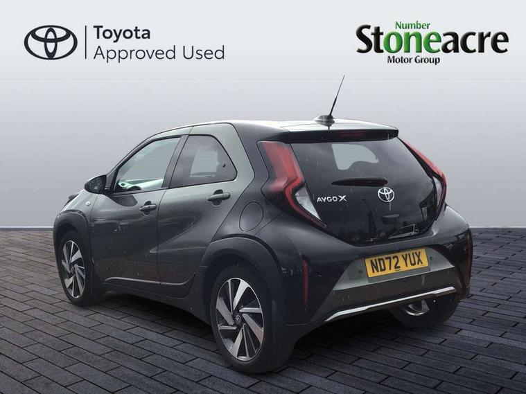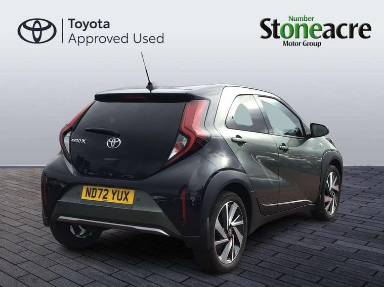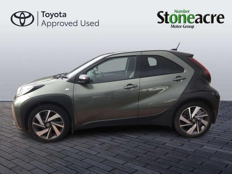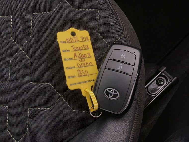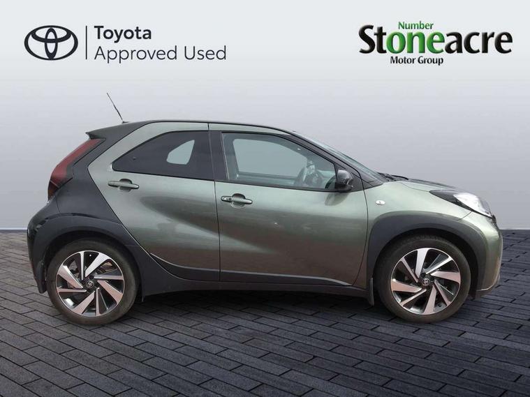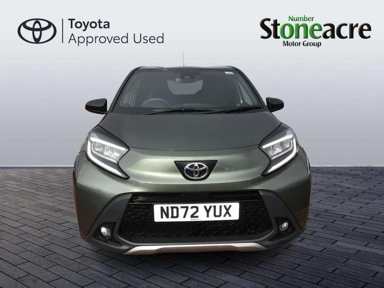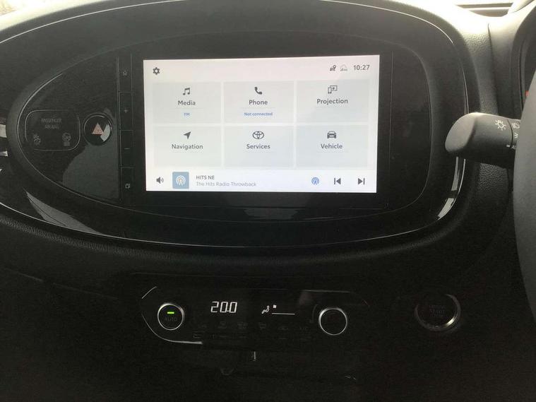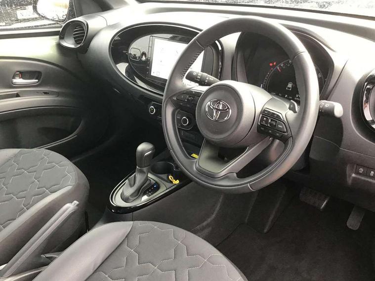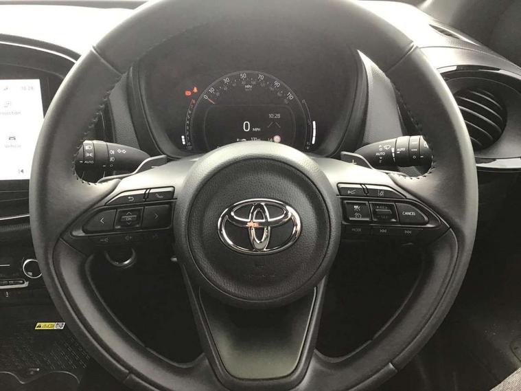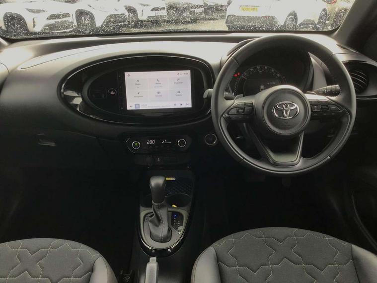 4.2" TFT colour screen, Adjustable speed limiter, Analogue speedometer, Bluetooth connectivity, Digital tachograph, Driver attention alert system, eCall emergency call system, ECO-driving indicator, Electric power steering, Front and rear parking sensors with auto brake, Intersection turn assist, Key reminder warning, Noise reduction kit, Pre collision system with emergency steering assist, Remote boot door release on key, Reversing camera with static guide lines, Smart entry and push button start, Speed limit display, Start and stop, Wireless charger, Wireless Smartphone Integration includes Apple CarPlay and Android auto, Vehicle Stability Control (VSC), 4 speakers, 9" HD multimedia display touch screen with Toyota smart connect, DAB digital audio broadcast, USB connector, Auto headlights, Auto wipers, Automatic headlights cut-off, Automatic high beam On/Off switch, Bicycle towing hook, Black fog light surrounds, Black side protection mouldings, Black wheel arch mouldings, Body colour door handles, Body coloured front bumper, Boot door scuff plate, Eclipse black rear bumper, Electric heated door mirrors, Follow me home headlights, Front and rear underruns in silver, Front fog lights, Front power windows, Gloss black door mirrors, Gloss black upper front grille, Headlight cut-off reminder, LED daytime running lights guide, LED front light guide, LED High mounted stop lamp, LED projector headlights, Manual day/night rear view mirror, Manual headlight levelling, Pagoda roof, Power adjustable door mirrors, Privacy glass, Rain sensor, Rear combination lights LED bulb type, Rear side wing doors, Rear windscreen defogger, Rear windscreen wiper, Remote hazard lights system, Short antenna, Variable intermittent windscreen wipers, 12v power outlet - front, 2 seat bench in 2nd row, 3 spoke leather steering wheel, 50/50 split folding rear seat, Adhesive roof headlining, Adjustable speed limiter switch on steering wheel, Audio and telephone switches on steering wheel, Auto air conditioning, Black roof lining, Body colour satin anodised insert on steering wheel, Boot light, Centre room light, Chrome interior door handles, Chrome surround on air conditioning buttons, Clean air filter, Floor mats, Front and rear cup holders, Front head rest deco art, Front head restraints, Gear shift indicator, Height adjustable driver seat, Intelligent adaptive cruise control switch on steering wheel, ISOFIX child restraint system on rear seats, Lane departure alert switch on steering wheel, Leather gearshift knob, Light blue ambient lighting in centre console, Manual tilt steering wheel, Manually reclining and sliding driver seat, Manually reclining and sliding front passenger seat, Multimedia switches on steering wheel, Paddle shift levers on steering wheel, Partial synthetic leather upholstery, Pollen filter, Rear door pockets, Rear head restraints, Remote air-conditioning system, Satin silver insert on gear shift knob, Single compartment glovebox with lights, Single front passenger seat, Soft tonneau cover, Sun visors with mirror on driver and passenger side, Voice recognition switch on steering wheel, Toyota safety sense pack - Aygo X, Anti lock braking system + Electronic brake force distribution, Child safety door lock, Emergency brake light signal (EBS), Hill start assist control (HAC), Passenger airbag on/off switch, Seat belt reminder for front and rear seats, Supplement restraints system (SRS) - 6 airbags, Traction control, Tyre pressure warning system, Immobiliser, Remote power door locks, Black wheel centre caps, Tyre repair kit,