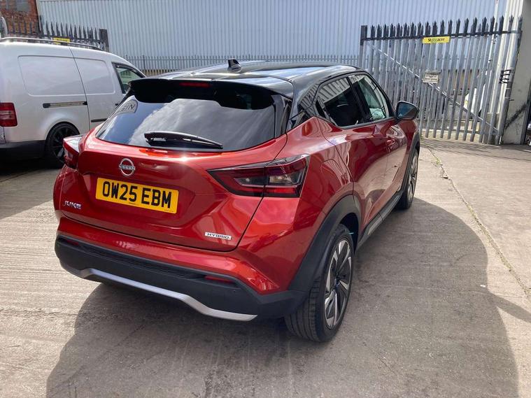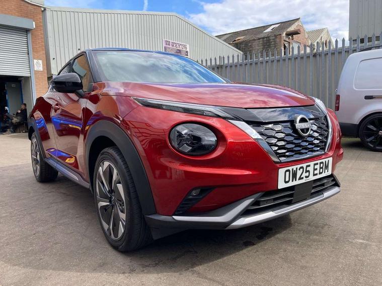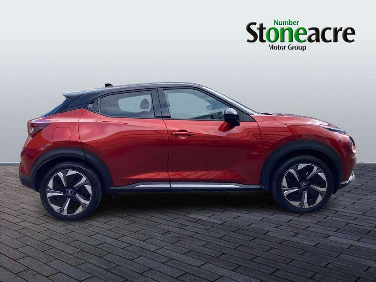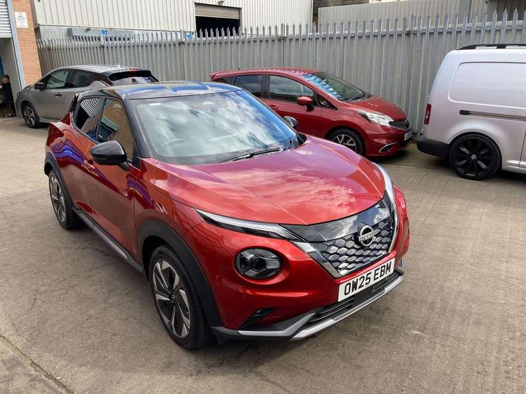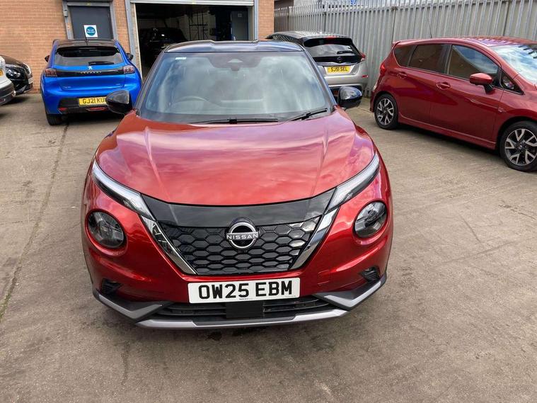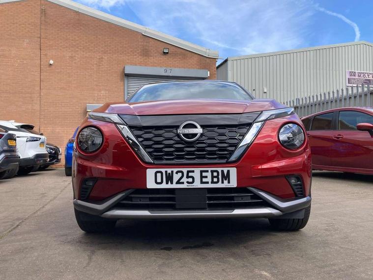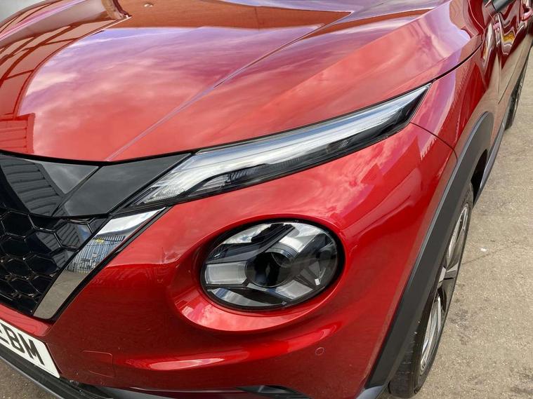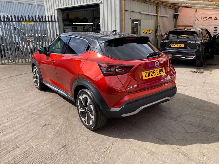 12.3" full colour TFT screen combimeter, Drive modes select (Eco, normal and sport), e-Pedal step, Emergency and breakdown call, EV mode switch, Front parking sensor, Intelligent driver alert system, Intelligent lane intervention, Lane departure warning system, Nissan connect 12.3" touch screen entertainment system, Nissan connect nav with TomTom traffic, Nissan connect services, Outside temperature sensor, Power Steering, Rear parking sensor, Stop/start button, Traffic sign recognition, Trip computer, Voice recognition, WiFi connectivity, Wireless Apple CarPlay and Google Android auto, Wireless Smartphone charger, 10 Bose speakers 8 speakers and 2 headrest speakers for driver/passenger seats, 2 X Rear console USB port, Bluetooth system, USB, Aux-in and 12V socket, Bose personal plus audio system, DAB Digital radio, Auto dimming frameless rear view mirror, Automatic hazard signal with emergency stop signal, Body colour door handles, Electrically adjustable door mirrors with integrated indicators, Follow me home headlights, Front and rear electric window with one touch driver window, High beam assist, LED 3rd brake light, LED daytime running lights, LED front fog lights, LED headlamps, LED rear fog lamp, LED rear lamps, One touch passenger window, Rear privacy glass, Rear side wing doors, Rear wiper, Roof spoiler, Shark fin roof antenna in solid Black, Solid black door mirrors, Solid black front bumper/rear bumper and side skirts inserts, Three blink turn signal, 3 height adjustable rear headrests, 3 seat bench in 2nd row, 60/40 split folding rear seat, Card holder on driver sunvisor, Door ambient lighting, Driver seat back pocket, Driver side rear coat hanger, Driver/passenger sunvisors and vanity mirrors, Front and rear cabin lights, Front armrest, Front door pockets with bottle holders, Front head restraints, Front/rear passenger grab handles, Gear console ambient circle lighting, Height adjustable driver's seat, Internal chrome door handles, Luggage board, Luggage space lighting, Monoform sporty seats, Multifunction steering wheel, Passenger seat back pocket, Rear door bottle holders, Single front passenger seat, Smooth synthetic leather steering wheel, Synthetic leather kneepad, Synthetic leather shift knob, Telescopic steering wheel adjustment, Two cupholders in front centre console, Two rear isofix child seat anchorage points with top tether, Welcome light and console tray ambient lighting, Comfort pack - Juke, Heat pack with height adjustable passenger seats - Juke, Interior personalisation pack - Juke, ProPilot pack - Juke Auto, Satin grey exterior personalisation pack - Juke, ABS with EBD and brake assist, Active ride control, Active Trace Control, Driver and passenger airbags, Driver and passenger side airbags, Electric handbrake with auto hold function, Electronic Stability Programme (ESP), Front and rear curtain airbags, Height adjustable seatbelts, Hill start assist, Intelligent emergency braking with pedestrian and cyclist recognition, Rear door child safety locks, Seatbelt reminder for driver/front passenger and rear seats, Three 3 point rear seatbelts, Traction control, Tyre pressure monitoring system, VDC Dynamic Vehicle Control, Alarm, Immobiliser, Intelligent key and start push button with walk away lock and approach unlock functions, Remote central locking, 19" Aero alloy wheels, Tyre puncture repair kit,