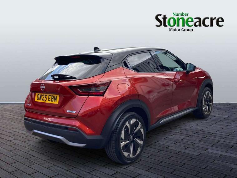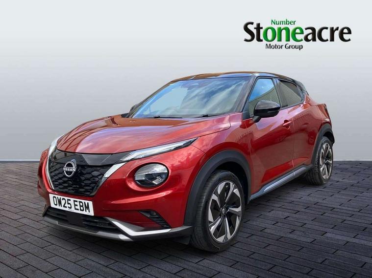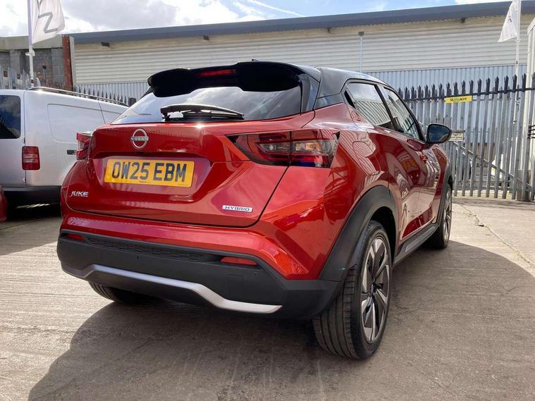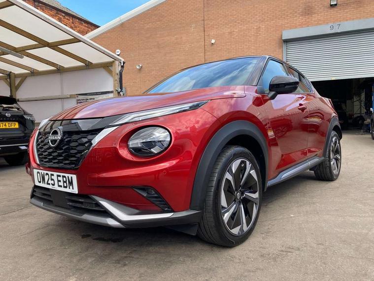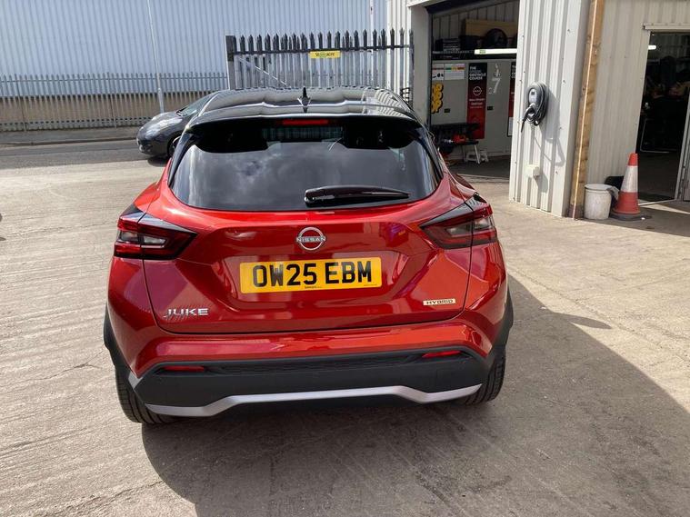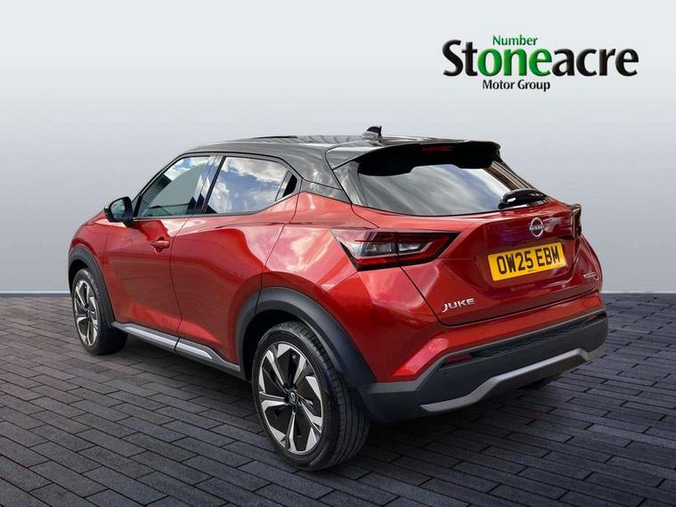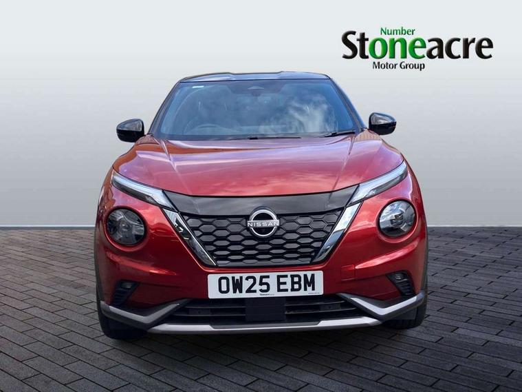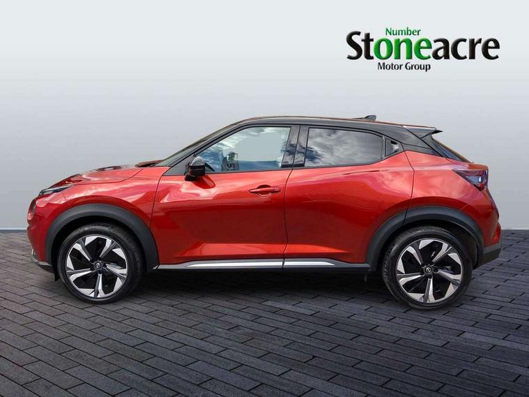 12.3" full colour TFT screen combimeter, Drive modes select (Eco, normal and sport), e-Pedal step, Emergency and breakdown call, EV mode switch, Front parking sensor, Intelligent driver alert system, Intelligent lane intervention, Lane departure warning system, Nissan connect 12.3" touch screen entertainment system, Nissan connect nav with TomTom traffic, Nissan connect services, Outside temperature sensor, Power Steering, Rear parking sensor, Stop/start button, Traffic sign recognition, Trip computer, Voice recognition, WiFi connectivity, Wireless Apple CarPlay and Google Android auto, Wireless Smartphone charger, 10 Bose speakers 8 speakers and 2 headrest speakers for driver/passenger seats, 2 X Rear console USB port, Bluetooth system, USB, Aux-in and 12V socket, Bose personal plus audio system, DAB Digital radio, Auto dimming frameless rear view mirror, Automatic hazard signal with emergency stop signal, Body colour door handles, Electrically adjustable door mirrors with integrated indicators, Follow me home headlights, Front and rear electric window with one touch driver window, High beam assist, LED 3rd brake light, LED daytime running lights, LED front fog lights, LED headlamps, LED rear fog lamp, LED rear lamps, One touch passenger window, Rear privacy glass, Rear side wing doors, Rear wiper, Roof spoiler, Shark fin roof antenna in solid Black, Solid black door mirrors, Solid black front bumper/rear bumper and side skirts inserts, Three blink turn signal, 3 height adjustable rear headrests, 3 seat bench in 2nd row, 60/40 split folding rear seat, Card holder on driver sunvisor, Door ambient lighting, Driver seat back pocket, Driver side rear coat hanger, Driver/passenger sunvisors and vanity mirrors, Front and rear cabin lights, Front armrest, Front door pockets with bottle holders, Front head restraints, Front/rear passenger grab handles, Gear console ambient circle lighting, Height adjustable driver's seat, Internal chrome door handles, Luggage board, Luggage space lighting, Monoform sporty seats, Multifunction steering wheel, Passenger seat back pocket, Rear door bottle holders, Single front passenger seat, Smooth synthetic leather steering wheel, Synthetic leather kneepad, Synthetic leather shift knob, Telescopic steering wheel adjustment, Two cupholders in front centre console, Two rear isofix child seat anchorage points with top tether, Welcome light and console tray ambient lighting, Comfort pack - Juke, Heat pack with height adjustable passenger seats - Juke, Interior personalisation pack - Juke, ProPilot pack - Juke Auto, Satin grey exterior personalisation pack - Juke, ABS with EBD and brake assist, Active ride control, Active Trace Control, Driver and passenger airbags, Driver and passenger side airbags, Electric handbrake with auto hold function, Electronic Stability Programme (ESP), Front and rear curtain airbags, Height adjustable seatbelts, Hill start assist, Intelligent emergency braking with pedestrian and cyclist recognition, Rear door child safety locks, Seatbelt reminder for driver/front passenger and rear seats, Three 3 point rear seatbelts, Traction control, Tyre pressure monitoring system, VDC Dynamic Vehicle Control, Alarm, Immobiliser, Intelligent key and start push button with walk away lock and approach unlock functions, Remote central locking, 19" Aero alloy wheels, Tyre puncture repair kit,