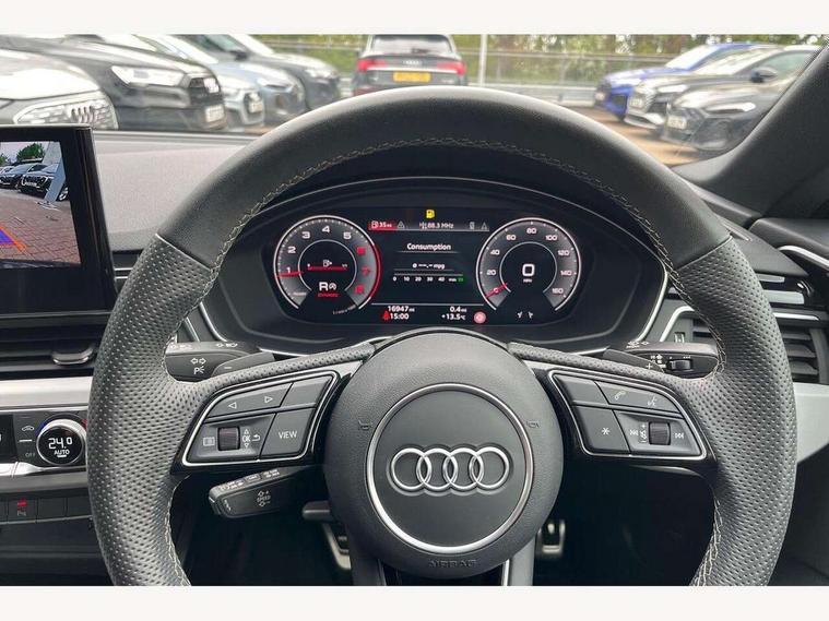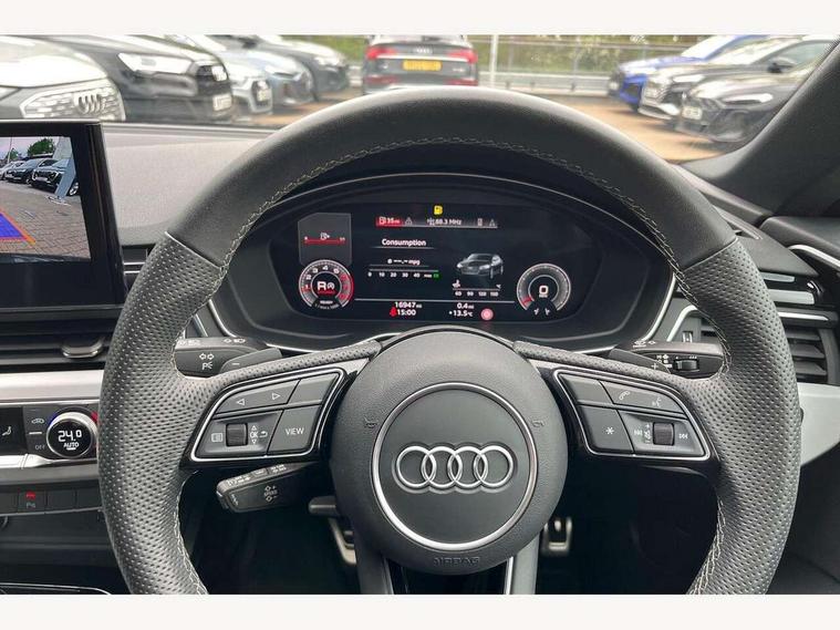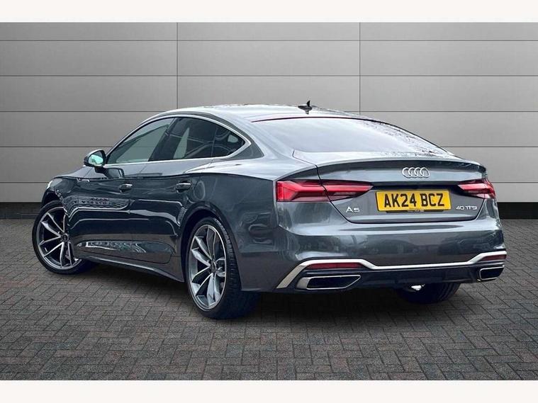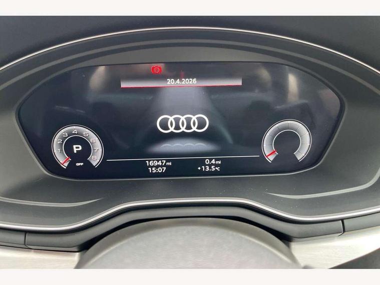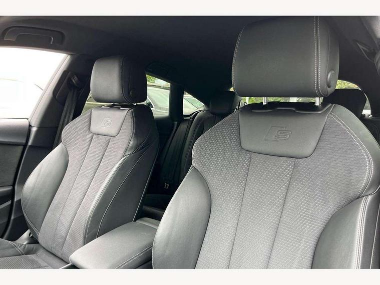 Audi connect safety and service (e-call), Audi drive select (Auto, Comfort, Dynamic, Efficiency and Individual), Audi smartphone interface, Audi virtual cockpit - 12.3" full colour digital instrument cluster, vehicle/engine speed, Radio/media information+Driver assistance systems, Automatic start-stop system with coasting functionality and efficiency programme, Bluetooth interface, Camera based traffic sign recognition, Electro-mechanical power steering, Email, calendar and text messages displayed via MMI, Front and rear parking sensors, Lane departure warning, MMI nav+ with MMI touch - 10.1" high resolution MMI display, touch sensitive, 3D map, route/country info, dynamic route guide, personal route assist, Power operated tailgate, Rear view camera, Service interval indicator, Voice control system, 54 litre fuel tank, Sports suspension lowered by 23mm, 8 passive loudspeakers, CD player, DAB digital radio reception, Two additional USB ports for rear passenger in rear centre console, Two SDXC card slots, Auto dimming door mirrors, Auto dimming rear view mirror, Body colour bumpers, Body colour door handles, Body colour front spoiler lip, Body colour side sill trim, Body coloured door mirrors, Electric adjustable heated door mirrors, Electric folding door mirrors, Electric front windows, Front fog lights, Honeycomb structure radiator grille in grained matt black, Kerb-view function for passenger side, LED headlights and rear lights with LED daytime running lights, LED side indicator lights integrated into door mirrors, LED third brake light, Matt aluminium silver tailpipe trim, Privacy glass, Rain and light sensors, Rear side wing doors, Rear wiper, S line badges on front wings, S line front and rear bumpers with side skirts, S Line rear diffuser in matt anthracite black with trim strip in matt aluminium silver, Side air inlets in grained matt black with matt aluminium silver inlay, Variable front intermittent wipers, Windscreen with acoustic glazing, 3 seat bench in 2nd row, 3 spoke high multifunction leather sport steering wheel with paddle shfit and S badging perforated leather grips, 4 way electric lumbar support for driver and front passenger, 40/20/40 split folding 3 seater rear bench seat, Adjustable steering column, Black carpets, Black cloth headlining, Black perforated leather gearknob, Contrast stitching on seats, steering wheel and gear lever gaiter, Deluxe 3 zone electronic climate control, Front centre armrest, Front head restraints, Front/rear floor mats, Heated front seats, Illuminated front door sill trim with S logo, ISOFIX child seat mounting and top tether, Luggage compartment mat, Manual seat adjustment, Rear centre armrest, Rear headrests, Single front passenger seat, Stainless steel pedals and footrest, Sunvisors with vanity mirrors, LED interior light pack - A5/RS5, 3x3 point rear seatbelts, 6 airbags - Driver, front passenger, curtain and side airbags, Attention and drowsiness assist, Electromechanical parking brake, Electronic Stabilisation Control (ESC) including ABS, ASR and EDL, Front passenger airbag deactivation, Height adjustable front seatbelts, Hill hold assist, Manual child lock in rear doors, Multi collision brake assist, Pop-up bonnet for pedestrian protection, Pre sense city, Seatbelt monitoring, Tyre pressure warning, Variable restraint system, Warning triangle and first aid kit, Anti theft alarm system, Anti theft wheel bolts, Immobiliser, Keyless Go, Remote central locking, Matt brushed aluminium inlays, Tool kit, Tyre repair kit,
