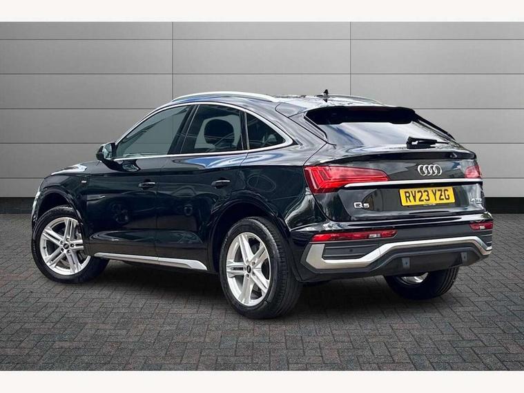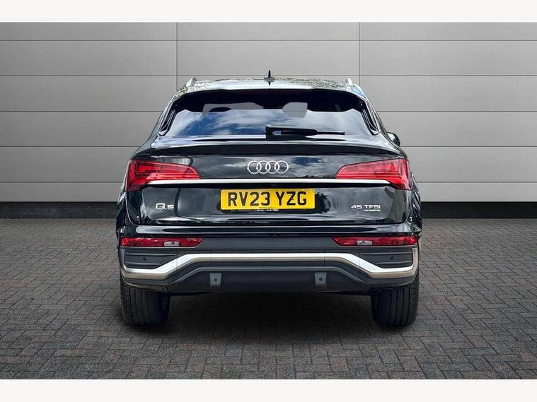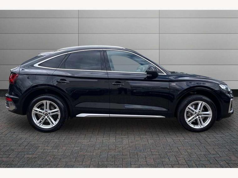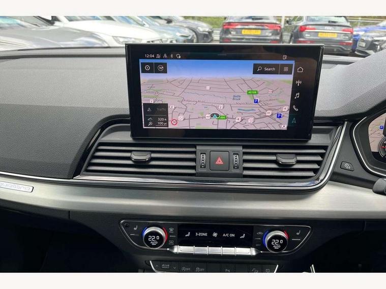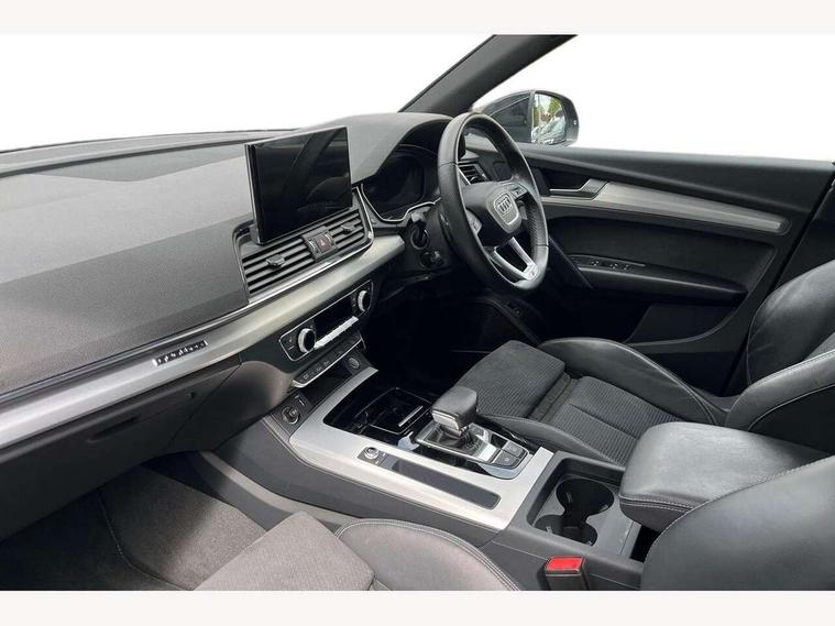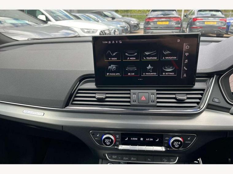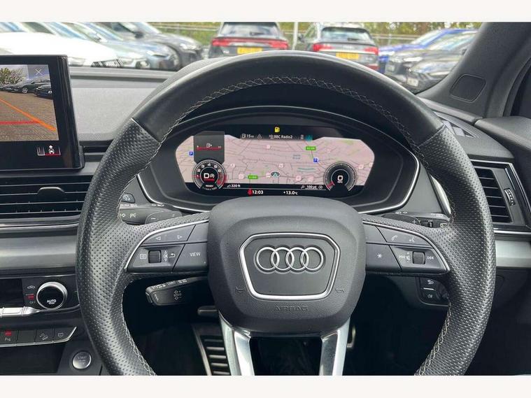 Acoustic front and rear parking sensor, Audi connect safety and service (e-call), Audi connect with Amazon Alexa Integration, Audi drive select, Audi virtual cockpit plus with 12.3" screen and three different layout designs, Audi wireless smartphone interface, Automatic start-stop system with coasting functionality and efficiency programme, Bluetooth interface, Electro - mechanical power assisted steering, MMI navigation plus with 10.1" touch screen, Power tailgate, Reversing camera, Service interval indicator, Voice control system with Audi hotword activation "Hey Audi", Quattro on demand, S line sports suspension, 2 x USB charging port with aux input socket, 8 loudspeakers, DAB Digital radio, Acoustic windscreen, Aluminium roof rails, Audi matrix LED headlights with dynamic front and rear indicators, Auto dimming door mirrors, Auto dimming frameless rear view mirror, Automatic headlight adjustment, Automatic headlights and windscreen wipers, Body colour door mirrors, Body colour rear diffuser with matt aluminium silver surrounds, Body colour underbody protection, Chrome plated exhaust trims, Daytime running lights, Door sills in Selenite silver, Electric adjustable/heated/folding door mirrors, Front air inlet surrounds in aluminium, Front and rear electric windows, Front radiator grille in honeycomb design, Headlight washers, High level LED brake light, Lower bumpers painted in contrast Manhattan grey, Rear chrome trim strip below lights, Rear privacy glass and rear side windows, Rear side wing doors, Rear wiper, Roof bars, S Line badges on the front wings, S Line front and rear bumpers, S Line rear spoiler, S Line side skirts, 3 rear headrests, 3 spoke leather multifunction steering wheel with S badging perforated leather grips, 40:20:40 split folding 3 rear bench seat in 2nd row with rear centre armrest, Black cloth headlining, Comfort front centre armrest, Contrast stitching on seats, steering wheel and gear lever gaiter, Deluxe 3 zone electronic climate control, Front head restraints, Front/rear floor mats, Gear lever in black leather, Heated front seats, Height/reach adjustable steering column, Illuminated door sill trims with S logo, Manual seat adjustment with 4-way electric lumbar support, Removable luggage compartment floor, Single front passenger seat, Stainless steel pedals, Sunvisors with vanity mirrors, Trunk roller cover, High gloss pack - Q5, LED interior light pack - Q5, 3 point seatbelts on all seats, 6 airbags - Driver, front passenger, curtain and side airbags, Electrically operated child locks on rear doors, Electromechanical parking brake, Electronic stabilisation control including ABS, ASR and EDL, First aid kit with warning triangle and vests, Front passenger airbag deactivation, Hill descent control, Hill hold assist, ISOFIX child seat mounting for front passenger seat and ISOFIX child seat mounting with Top Tether for outer rear seats, Multi collision brake assist, Pop-up bonnet for pedestrian protection, Pre sense city, Seat belt force limiter, Seatbelt monitoring, Tyre pressure warning, Anti theft alarm, Anti-theft wheel bolts, Keyless Go access/ignition system, Remote central locking, Air vents inserts and centre console in gloss black, Matt brushed aluminium inlays,