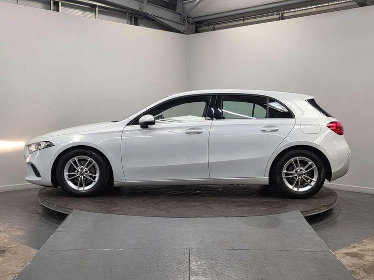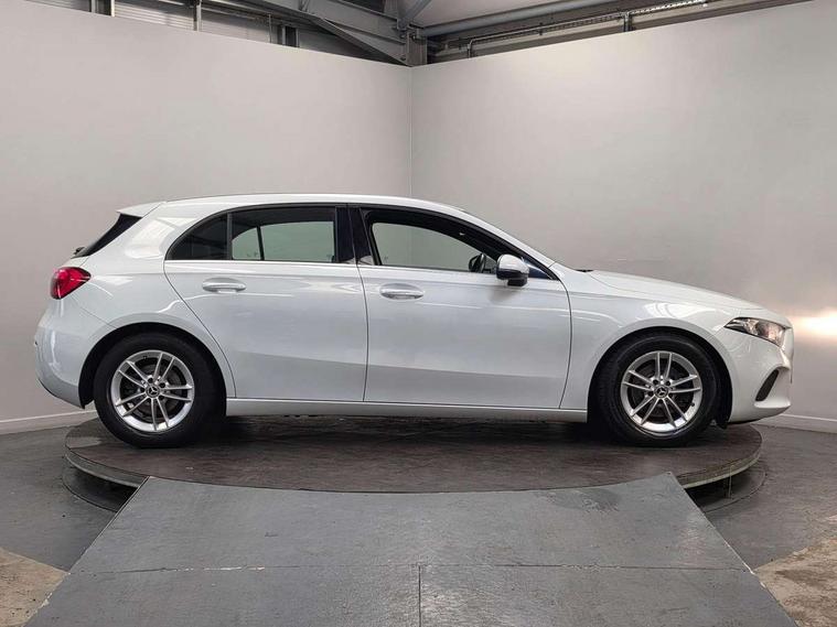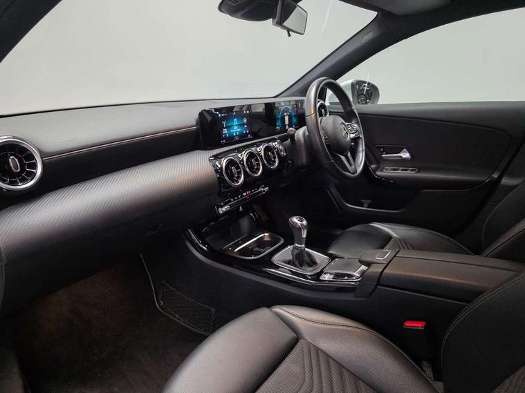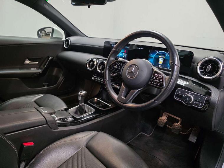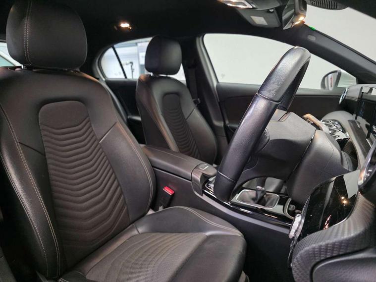 180 degree rear view camera with parking guidelines, 7" colour screen in instrument panel, 7" touchscreen media display, Active lane keep assist, Attention assist, Brake pad wear indicator warning light, Cruise control + speed limiter, Direct steering, DYNAMIC SELECT with a choice of driving modes (ECO, Comfort, Sport and Individual), ECO start/stop function, Fluid level warning indicator for fuel, oil, coolant and washer fluid, Hard-disk navigation, Hey Mercedes Voice activation, Lamp failure indicator, Mercedes me connect including emergency call system, accident recovery, breakdown and maintenance management, Outside temperature gauge, Radio aerial integrated into roof spoiler, Service indicator (ASSYST), Speed sensitive power steering, Trip computer, Lowered comfort suspension, DAB Digital radio, Dual bluetooth interface, 2 USB ports (type C), MBUX multimedia system with DAB digital radio and touchpad including satellite navigation, 4 Electric Front and Rear windows, Active aerodynamics with AIRPANEL in the front apron, Adaptive brake lights, Black weather strip, Blue tinted glass, Body colour bumpers, Body colour door handles, Body colour side skirt, Body coloured door mirrors, Chrome beltline trim, Diamond radiator grille with black pins with one louvre in silver + chrome insert, Electric adjustable and heated door mirrors with integrated LED side indicators, Halogen headlamps with integrated daytime running lights, Headlamp assist automatic headlamp activation, Heated glass rear windscreen + timer control, LED third brake light, Part LED tail light, Rain sensor windscreen wipers, Rear fog lights, Rear wiper, 12V socket, 3 Spoke leather multi function steering wheel, 40:20:40 split folding rear seats, Air vents surround and cruciform nozzle in silver chrome, Artico man-made leather/Bertrix fabric upholstery, Auto Mercedes-Benz child seat recognition sensor, Black roof lining, Controller on centre console with chrome surround, Cup holder and stowage compartment lighting, Floor mats, Freight packaging without tie-down hooks, Front centre armrest with storage compartment, Front comfort seats with adjustable head restraints, Front door sills with Mercedes Benz lettering, Front doors with ambient and signal light, Front footwell lights, Front reading lamps in left and right console downlighter, Front seat backs luggage nets, Front seat cushion length adjustment, Front signal exit lamp, Front vanity lights, Handle recess/closing light, Height/reach adjustable steering column, Illuminated glove compartment stowage, ISOFIX Child seat top tethers and anchor fixings, Luggage compartment cover, Manual height adjustable front seats, Oddments tray lighting, Rear head restraints, Rear Reading Lamps, Seat occupancy sensor for front passenger seat, Spectacles compartment for driver, Storage compartment under load area floor, Sunvisors with illuminated vanity mirrors, Thermatic single zone climate control, Touchpad, Touchpad illumination, Twin front cupholders, Light and sight pack - A Class, Seat comfort pack - A Class, 3 rear 3 point seatbelts, ABS with Brake Assist, Active bonnet, Active brake assist includes forward collision warning system with autonomous braking, Adaptive brake assist with hold function and hill start assist, Childproof locks manually operated for rear doors and electrically operated for rear power windows, Crash responsive emergency lighting, Driver and passenger head and side airbags, Drivers knee airbag, Dual stage driver/passenger airbags, Electronic parking brake, ESP curve dynamic assist, ESP with ASR, Front and rear seatbelt reminder, Tyre pressure monitoring system, Warning triangle and first aid kit, Window airbags, Alarm system/interior protection/immobiliser, Keyless Go, Remote central locking and crash sensor with emergency opening function, Black seatbelts, 16" 5 twin spoke light alloy wheels painted in vanadium silver, Summer tyres, Tirefit sealant kit,