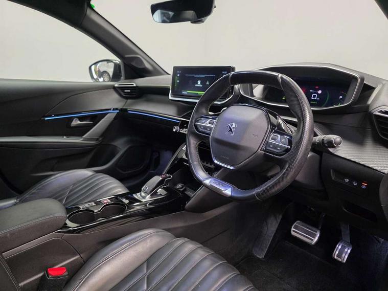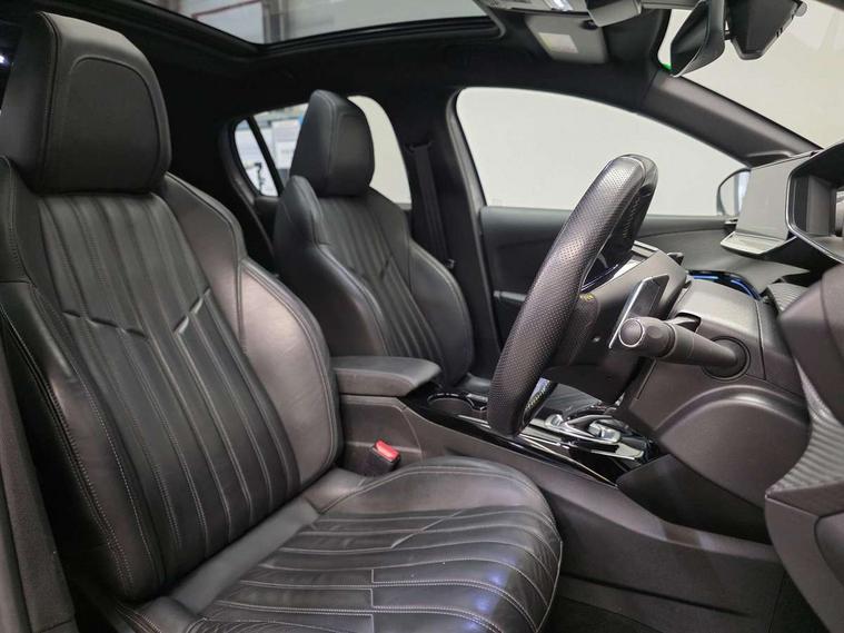 Bluetooth telephone facility, Driver attention warning, Exterior temperature indicator with ice warning, Front and rear parking sensors, Mirror screen with mirror link, apple carplay and android auto, Multi function trip computer, PEUGEOT i-Cockpit with compact steering wheel, PEUGEOT i-Cockpit with configurable 3D headup instrument panel, PEUGEOT SOS and assistance, Push button start, Smart phone docking station, Smartphone charging plate, Speed limit recognition and recommendation, Visio Park 1 with 180 degree Colour reversing camera, 2 front USB socket with USB-C, 2x USB sockets in rear, 6 speakers radio with mp3 compatible, DAB Digital radio, Voice recognition for radio, navigation and telephony features, 2 X Rear number plate lights, Automatic hazard light activation upon heavy brake application, Automatic lights, Automatic windscreen wipers, Body coloured exterior door handles, Dark tinted rear side and tailgate windows, Diamond Black roof, Electric front windows + one touch + anti-pinch, Electric rear windows with one touch/anti-pinch, Electrically adjustable, heated and power folding door mirrors, Extended diamond black rear spoiler, Follow me home headlights, Frameless electrochrome interior rear view mirror, Front windscreen wiper with magic wash cleaning system, Full LED headlights with smartbeam assist, Gloss black finish on B pillar, Gloss black rear cluster connecting strip, Gloss black wheel arch extensions, Gloss black window surround, GT Line model designation badging on C pillar, GT Line model designation badging on tailgate, Headlights left on audible warning, LED daytime running lights with 3 claw headlight with distinctive tooth design, LED side indicator lights integrated into door mirrors, Model designation badges front and rear, Nera black door mirror shells, Radiator grille - Dark chrome chequered and gloss black edge trim, Rear bumper with gloss black finish, Rear full LED 3D peugeot signature claw effect lights with daylight function, Rear lower bumper diffuser effect trim in gloss black, Rear reversing lights, Rear windscreen wiper triggered automatically in reverse gear, Stainless steel door sill scuff plates, Tailgate with heated rear windscreen and wiper blade, Twin chrome exhaust tailpipes, 1/3 to 2/3 split folding rear seats, 12V socket, 8 Colour personalisable ambient lighting, Aluminium pedals and foot rest, Automatic gear lever in full grain leather and satin chrome, Driver and front passenger seat manual adjustment in longitudinal and back rest angle, Driver and front passenger seat mechanical height adjustment, Driver and front passenger sport seats, Dual zone electronic climate control, Electric power steering with reach and rake adjustable steering column, Front and rear carpet mats in black with lime green stitch detail, Front centre armrest with storage compartment, Front LED interior light with 2 reading spotlights and rear interior light with timer, High centre console with 2 cup holders, ISOFIX child seat mounting points on passenger seat, Lime green contrast stitching to armrest, front centre console, door panels and dashboard facia, Map pockets on the backs of the front seats, Mistral full grain perforated leather steering wheel with aikinite stitch detail and satin chrome 'GT' emblem, Piano keys gloss black plated toggle switches to access main functions of the vehicle, Roof lining - Mistral black, Seatbelt unfastened on the move audible and visual alert for front and rear seats, 2x 2nd row ISOFIX child seat mountings, 3 point seatbelts on all rear seats, ABS (Anti-lock Braking System) with EBD (Electronic Brakeforce Distribution) and EBA (Emergency Braking Assistance), Active safety brake with night function/cyclists/pedestrians, Child locking functionality on rear doors, Driver and passenger airbags with Passenger airbag deactivation system, Driver/front passenger side airbags, Electric parking brake, ESP with Hill Assist, Front and rear curtain airbags, Front and rear disc brakes, Front optimised safety headrests and 3 x rear retractable headrests with height adjustable, Front three point retractable seatbelts with force limiters, Tyre pressure sensor, Automatic door locking when moving off, Deadlock, Electronic code immobiliser, Thatcham Cat.1 alarm, Carbon effect Dashboard, front and rear door panel finish, 17" Camden diamond cut two tone alloy wheels, Space saver spare wheel,
