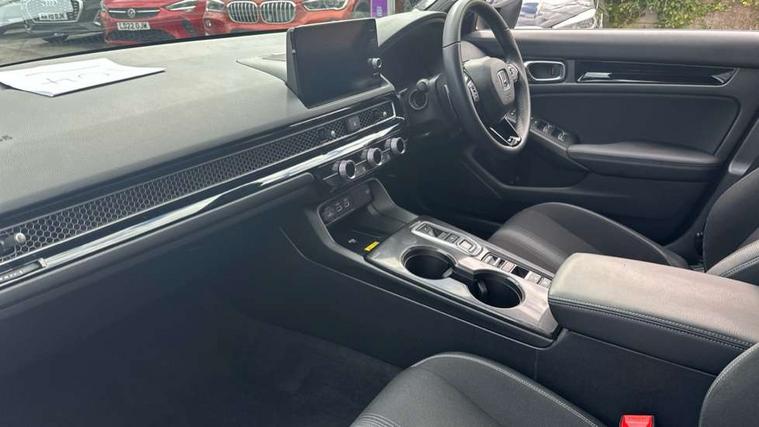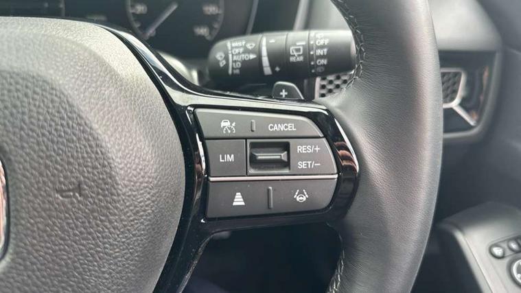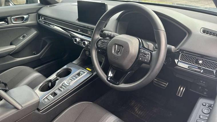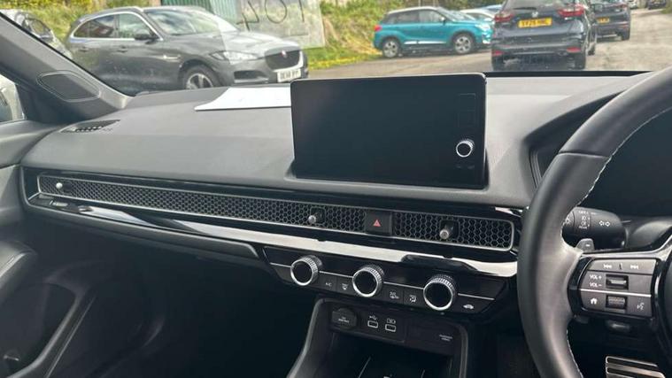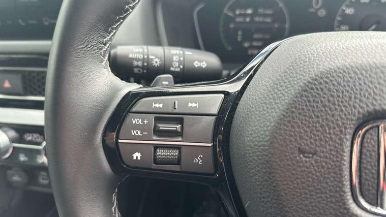 7" Multi information display screen, Adaptive cruise control, Adaptive motion for electric power steering, Adjustable speed limiter, Agile handling assist, BLIS (Blind Spot Information System) with Cross Traffic Monitor, Bluetooth hands free telephone connection, Driving modes, Economy mode, Electric power steering wheel with variable gear ratio steering, Emergency call service, Emergency stop signalling system, Forward collision warning, Front and rear parking sensors, Honda CONNECT with Navigation 9" touchscreen, AM/FM/DAB, Apple Carplay and Android Auto, live traffic info, Honda sensing, Idle stop, Intelligent speed limiter, Lane departure warning system, Lane keep assist, Low speed following, Power meter, Rear parking camera, Road departure mitigation, Smartphone wireless charging plate, Tailgate, Traffic jam assist, Traffic sign recognition, Wireless apple carplay, Vehicle stability assist, 'Shark fin' mobile antenna, 2x USB Front socket (1 data & 1 charge), 8 Speakers, Digital Audio Broadcast (DAB) Tuner, Front tweeters, Steering wheel mounted audio controls, Aspherical driver door mirrors, Auto dimming rear view mirror, Auto headlight adjuster, Auto headlights, Automatic coming/leaving home lighting function, Automatic rain sensing wipers, Black window frames, Body colour door handles, Electric adjustable heated door mirrors, Electric front and rear windows, Electrically folding door mirrors, Headlight extension black, High beam assist, High level LED brake light, LED daytime running lights, LED front fog lights, LED front turn type, LED Headlights, LED rear lights, Low gloss black window garnish, Material finish grille, Pop up hood, Privacy glass, Rear side wing doors, Rear wiper, Single hidden exhaust pipe, Variable front intermittent wipers, 3 seat bench in 2nd row, 60/40 split folding rear seat, Cargo accessory power socket, Cargo net hooks, Driver and front passenger seat armrests, Driver's electric lumbar adjustment, Driver's seat height adjustment, Dual climate control air conditioning system, Fabric/synthetic leather upholstery, Front accessory power socket, Front map lights, Front/rear courtesy lights, Glovebox light, Heated front seats, Hybrid emblem, Isofix points/i size, Leather steering wheel, Meter Illumination white, Passenger seat back pocket, Platinum chrome interior door handles, Rear air vents, Rear head restraints, Rear reading lights, Rear seat centre armrest, Single front passenger seat, Stainless steel sports pedals, Sunvisors with illuminated vanity mirrors, Tilt/telescopic adjustable steering wheel, Tonneau cover, Trunk light, USB Rear number 2 x charge, White ambient roof light, 3x3 point rear seatbelts, ABS+EBD+Brake assist, Airbags - driver and front passenger, Airbags - Knee (AS), Airbags - Knee (DR), Anti-whiplash front headrests, Brake hold function, Collision mitigation braking system, Collision mitigation throttle control, Deflation detection system, Driver SRS airbag (single stage inflation), Electronic parking brake with auto hold, Front and rear curtain airbags, Front and rear seat belts with emergency locking retractor (ELR), Front centre airbag, Front side airbags, Hill start assist, Low speed brake system, Manual child lock in rear doors, Passenger airbag deactivate switch, Rear airbags, Regenerative braking/deceleration paddle control, Immobiliser, Mirrors and windows key fob, Remote central locking with 2 jack knife keys, Security alarm, Selectable door unlock, Smart entry + Smart start, Superlocking, Tilt sensors, Ultrasonic security sensor, Tyre repair kit,