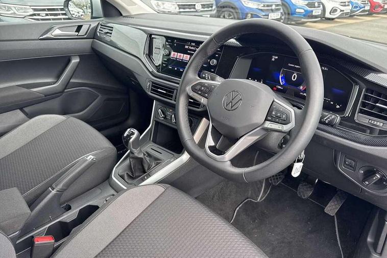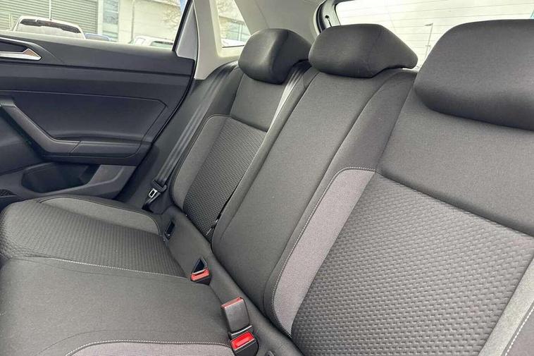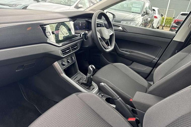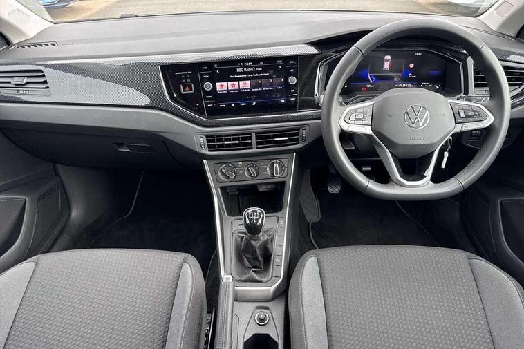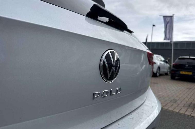 Adaptive cruise control without follow-to-stop and speed limiter, Advanced driver attention and drowsiness monitor, Bluetooth mobile phone interface, Dynamic road sign display, Emergency call service, Mobile phone preparation with inductive charging function, Multifunction front facing camera for distance control, Power assisted speed sensitive steering, Preparation for navigation system with media and internet package, Preparation for We connect and We connect plus, Rear view camera, Speedo and rev counter, electronic odometer, trip, service interval display and exterior temperature gauge, Standard rear axle, Travel Assist - Lane keeping system and traffic jam assist, Travel assist including emergency assist, Trip computer, Warning signal and warning light for front and rear seatbelts not fastened, Washer fluid level indicator, Wireless app connect, Front wheel drive, Rear shock absorpion, Start-stop system with battery regeneration (recuperation - energy recovery during braking), DAB Digital radio, Diversity antenna for FM reception, Automatic dimming interior rear view mirror, Automatic headlight control with LED separate daytime running lights with coming/leaving home function, Body colour bumpers with chrome inserts, Body colour door handles, Body colour door mirrors, Electric front windows, Engine badge deletion, Headlight range adjustment, Heat insulating and laminated safety glass windshield, LED Headlights, LED rear combination lamps, Power folding adjustable/heated exterior mirrors and front passenger exterior mirror lowering function, Rain sensor, Rear electric windows, Rear fog light, Rear side wing doors, Rear tinted glass from B-pillar backwards approx 65% tinted, Rear windscreen washer and wiper with interval delay, Third brake light, 12V power socket in centre console, 2 front and 2 rear reading lights with switch off delay and dimmer, 2 USB-C ports in the front, 2 USB-C charging sockets on the center console in the rear, 3 rear head restraints, 60/40 split folding rear seat and rear seat bench not split, Carpet mats, front and rear, Ceramique roof lining, Chrome plated radiator grille inserts, air vent surrounds and light switch surrounds, Door and side trim panel, Driver and front passenger seat height adjustment, Driver/passenger sunvisors with illuminated vanity mirrors, Front centre armrest, Front seat backrest storage pockets, Front standard seats, Handbrake lever handle in leather, Hartley/Thomas cloth upholstery, Headliner in recycled material, Isofix child seat preparation easy-fit (for two outer rear seats, and front passenger seat) compatible with I-size, Leather trimmed gear knob, Luggage compartment cover, Luggage compartment lighting, Removable luggage compartment floor, Single front passenger seat, Standard climatic zones, Standard pedal cluster, Three spoke leather wrapped multifunction steering wheel, Light and vision pack - Polo, 3 point height adj front seatbelts + pretensioners, 3 point seat belt for centre rear seat, 3 point seatbelts, outer rear with ECE lable, ABS, Driver and front passenger airbag with front passenger airbag deactivation, Drivers and front passengers safety optimised head restraints, ESC (Electronic stability control) + EDL (Electronic Differntial lock) and ASR (Traction control), Extended and predictive pedestrian/ cyclist protection, Front assist with autonomous emergency braking (for Adaptive Cruise Control ACC up to 130 mph), Front curtain and side airbags with center airbag, Front disc brakes, Hill hold control, Manual child lock in rear doors, Rear drum brakes, Single tone horn, Tyre pressure loss indicator, Alarm with interior protection, Anti-theft alarm system with interior monitoring, backup horn, and towing protection, Anti-theft wheel bolts, Electronic engine immobiliser, Lava stone black gloss/matt decorative inserts in dash and front door panels, 16" Torsby alloy wheels, Low rolling resistance tyres,