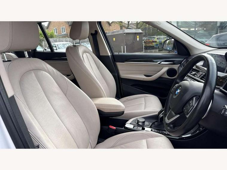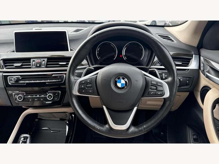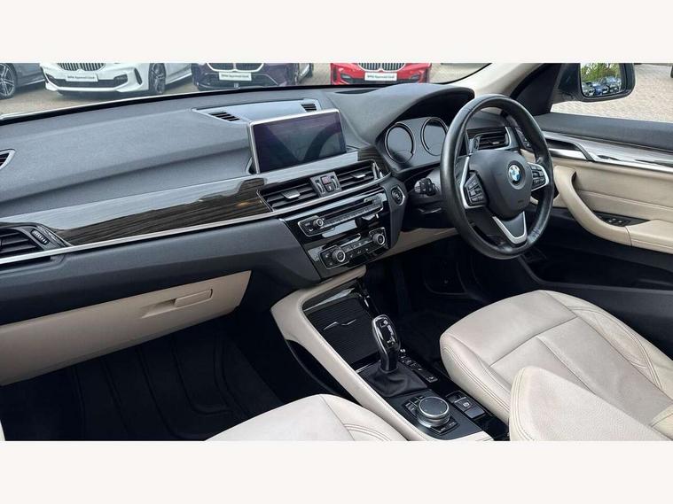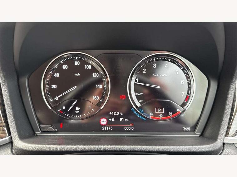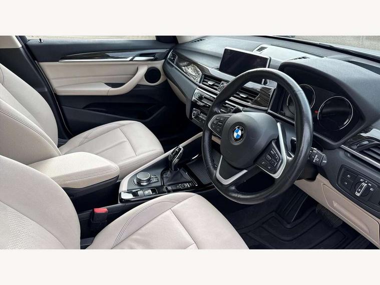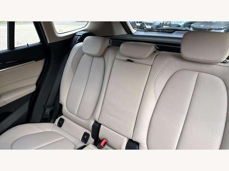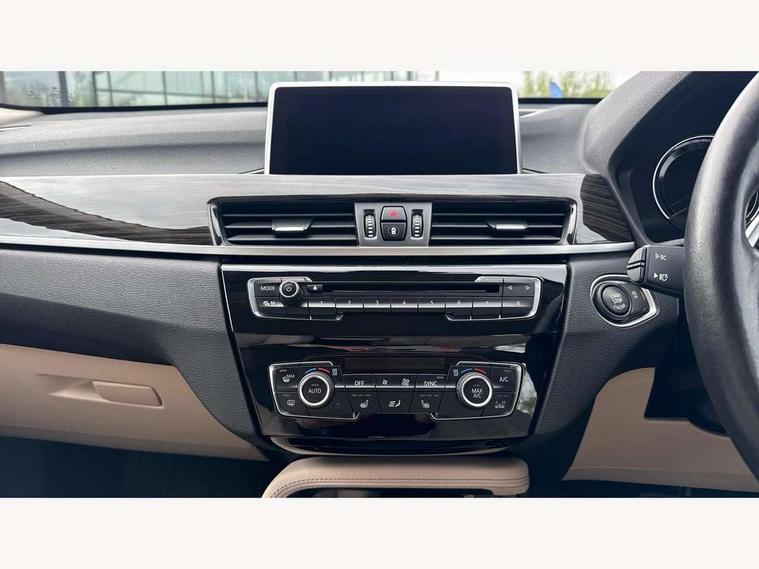 Active Guard incl speed limiting and lane departure functions with auto steering, and front collision warning with brake intervention, Ambient temperature display, Attentiveness assist, Automatic tailgate opening, BMW Online services, BMW remote services, BMW Teleservices, Lights on warning, On board computer, Outside temperature gauge, Real time traffic information, Service interval indicator, Servotronic PAS, Speed limiter, Stop/start button, Tyre puncture warning system, Electronic differential lock, Performance Control, BMW professional radio with CD player, DAB Digital radio, USB/audio interface, Adaptive LED Headlights, Adjustable headlights, Body colour bumpers, Body colour door handles, Body colour door mirrors, Electrically adjustable and heated door mirrors, Exclusive door sill finishers, Fingertip control / anti-trap function on electric window, Follow me home headlights, Front and rear electric windows, Front fog lights, Heat insulating tinted glass, Heated windscreen washer jets, LED daytime running lights, Rain sensor including auto headlights activation, Rear window wash/wipe, Twin chrome exhaust tailpipes x2, Welcome home function, 12v power point in centre console, 12V power socket in passenger footwell, 3 rear headrests, 3 spoke sport leather steering wheel, 4 grab handles, Black door sill finishers with BMW designation, Boot light, Centre console with cupholders, Dakota leather upholstery, Driver/passenger sunvisors with ticket holders, Drivers folding storage compartment, Dual zone automatic air conditioning, Front and rear door armrests, Front centre armrest/sliding cover, Front passenger isofix child seat attachment, Front/rear adjustable head restraints, Heated front seats, Illuminated glovebox, Isofix rear child seat preparation, Leather gearknob/gaiter/handbrake grip, LED ambient lighting in door trim, Luggage area underfloor compartment, Luggage compartment lighting, Multifunction steering wheel, Rake/reach adjustable steering wheel, Sliding/split/reclining 40/20/40 rear seat with 60/40 split rear seat base, Steering wheel gearshift paddles, Velour floor carpets, Extended storage package - X1, 3 rear 3 point seatbelts, ABS/EBD, Audio/visual collision warning system, Automatic Stability Control (ASC), BMW emergency call, Cornering brake control (CBC), Crash Sensor - activates hazard/interior lighting + unlocks doors, Driver/Front Passenger airbags, Driver/front passenger side airbags, DSC - Dynamic Stability Control, Dynamic brake control, Dynamic Traction Control - DTC, Electronic parking brake, Front and rear head airbags, Front passenger airbag deactivation, Front seatbelt force limiters, Hill start assist, Pyrotechnically pre-tensioned front seatbelts, Rear door child safety locks, Seatbelt warning, Tyre pressure monitor, Warning triangle and first aid kit, Auto door lock when driving, Central locking including boot and fuel flap with deadlocks, Engine immobiliser, Locking wheel nuts, Remote control Thatcham category 1 alarm, High gloss black centre console, Low rolling resistance tyres,