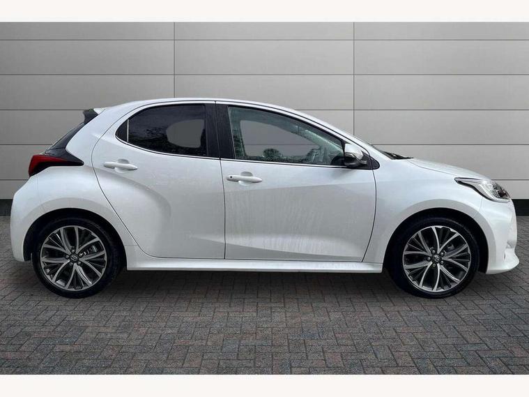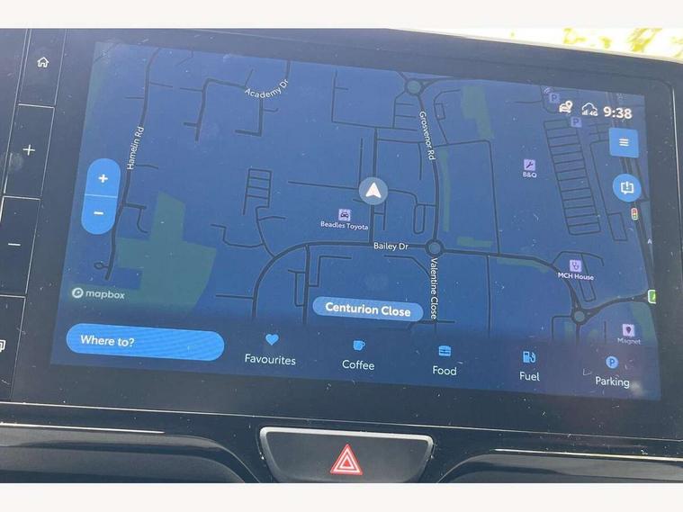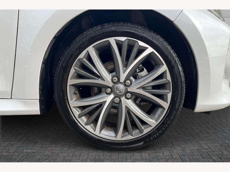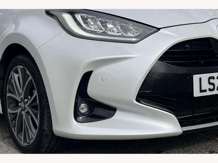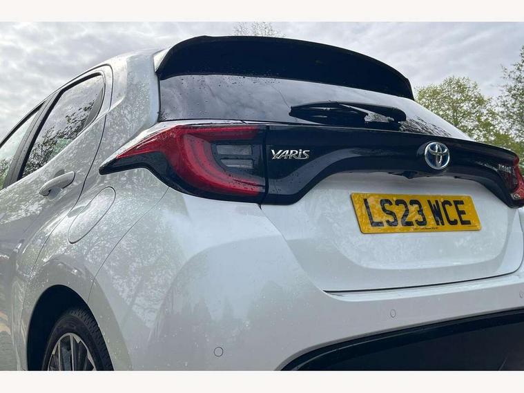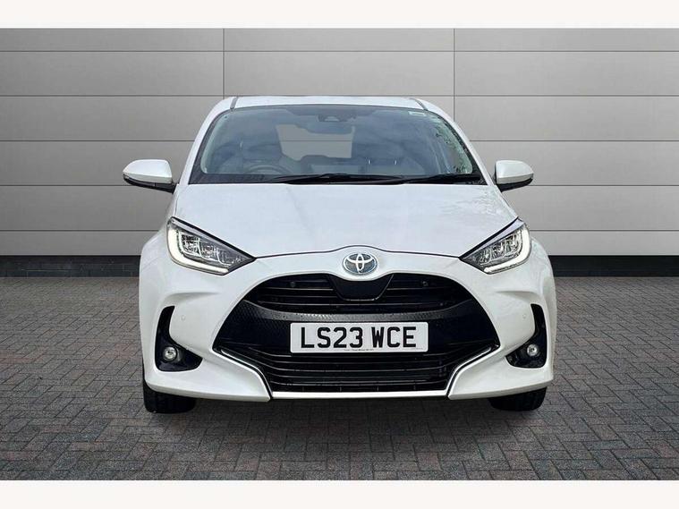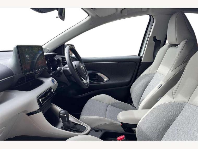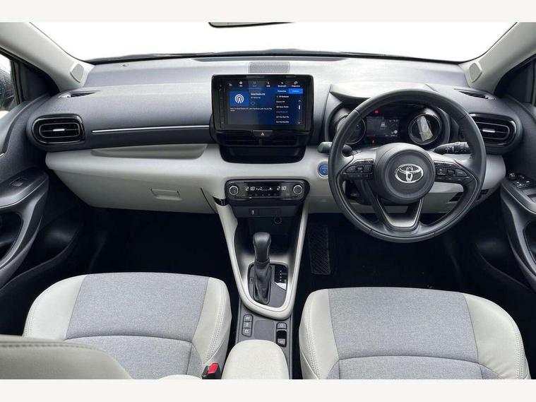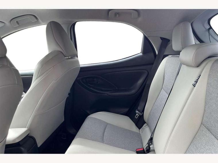 Adaptive cruise control, Adjustable speed limit with speed warning, Blind spot monitoring, Bluetooth connectivity, Colour binocular inspired displays with digital speedometer, E-call, Electric power steering, Hybrid energy display, Multi information display switches on steering wheel, Reversing camera, Smartphone integration with Apple CarPlay and Android auto, Tailgate, Touch 2 navigation system, Voice recognition, Vehicle Stability Control (VSC), 6 speakers, 9" HD multimedia display touch screen with Toyota smart connect, USB connection, Acoustic windscreen glass, Auto windscreen wipers, Automatic headlights, Automatically retractable door mirrors, Body coloured door mirrors, Electric adjustable heated door mirrors, Follow me home headlights, Front auto power windows with anti jam protection, Full LED rear lights, LED daytime running lights, LED front fog lights, LED front light guide, LED Headlights, LED High mounted stop lamp, LED Indicators, LED rear light guide, Manual headlight levelling, Painted chequered front grille, Rain sensor, Rear auto power windows with anti jam protection, Rear privacy glass, Rear side wing doors, Rear spoiler, Rear wiper, Satin lower front grille, Shark fin antenna, Turning signal integrated indicators in door mirrors, Variable front intermittent wipers, 3 adjustable rear headrests, 3 seat bench in 2nd row, 3 spoke leather steering wheel, 60/40 split folding rear seat, Active headrests, Adjustable boot height, Coat hooks in rear grab handles, Cup holders (2 front & door), Data Communication Module (DCM) connected services, Dual zone automatic air conditioning, Fabric seat with partial synthetic leather upholstery, Front armrest, Front sport seats, Glovebox, Grey roof lining, Height adjustable driver's seat, Height adjustable passenger seat, Isofix seat fixing, Leather gearshift, Map pockets on the backs of the front seats, Pollen filter, Shopping bag hooks, Single front passenger seat, Tilt/telescopic steering column, Parking pack - Yaris, 3 point seatbelts on all rear seats, ABS+EBD+Brake assist, Electronic parking brake, Emergency brake light system (EBS), Front passenger airbag on/off switch, Front seatbelt reminder, Hill start assist control (HAC), Rear child proof door locks, Rear seat belt reminder, Supplemental Restraint System (SRS) 8 airbags: Driver & passenger's airbags, dual side curtain airbags, side impact airbags, front centre airbag, Toyota Safety Sense 2, Precollison + Night time Pedestrian & Cyclist Detection, Lane Trace Assist, Auto High Beam, Intelligent ACC & Road Sign Assist, Tyre pressure warning system, 2x Master key, Alarm/immobiliser, Keyless smart entry with push button start, Remote AC via MyT, Remote locking via MyT, Remote powered central double locking doors, Satin chrome interior styling, Soft touch instrument panel, Space saver spare wheel,