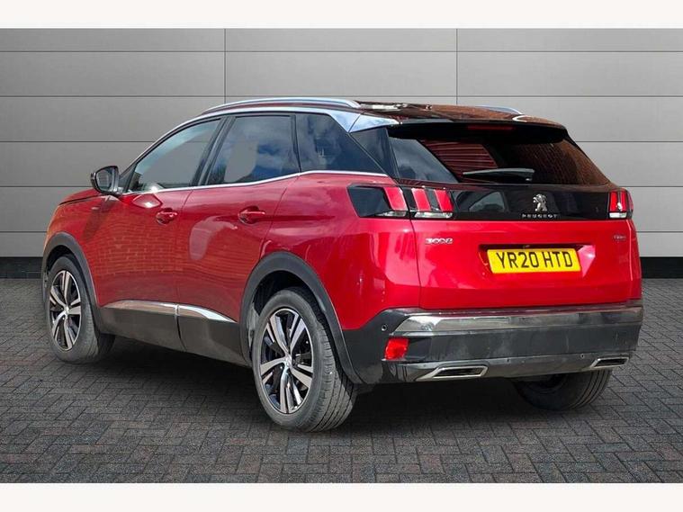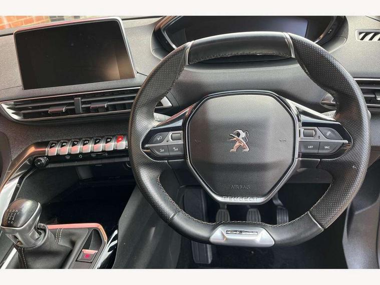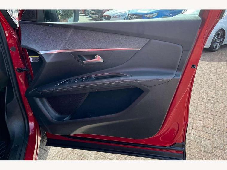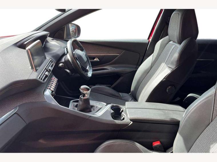 'Lights On' Reminder warning buzzer, 3D connected navigation + voice control + Peugeot connect SOS and assistance, Bluetooth telephone facility, Digital clock, Exterior temperature indicator with ice warning, Front and rear parking sensors, Lane departure warning system, Mirror screen with mirror link, apple carplay and android auto, Multi function trip computer, PEUGEOT i-Cockpit with 8.0" capacitive touchscreen in centre console, PEUGEOT i-Cockpit with compact sports steering wheel, PEUGEOT i-Cockpit with configurable 12.3" Head-up digital instrument panel, Smartphone charging plate, Speed limit recognition and recommendation, Sports button, Dynamic stability control and electronic anti-skid system, DAB Digital radio, Steering wheel mounted controls, USB socket, 2 X Rear number plate lights, Aluminium longitudinal roof bars, Auto self levelling headlights, Automatic hazard light activation upon heavy brake application, Automatic triggered rear windscreen wiper in reverse gear, Black and chrome front wing trim, Body colour door handles, Body colour rear spoiler with stainless steel edging trim, Body coloured bumpers, Body protectors (bottom of front and rear bumpers + wheel arches + protection at bottom of doors) in black, Chrome front fog light trim, Chrome rear bumper facia, Chrome side window trim, Dark tinted rear side windows + tailgate window, Door mirror mounted LED courtesy approach lights, Electric operated/heated door mirrors, Front windscreen wiper with magic wash cleaning system, Full LED headlights with LED fog lights with static cornering function, sports front bumper and grille, Gloss black B and C pillar and aerodynamic deflector trim, Gloss black rear cluster connecting strip, Gloss black windscreen surround, GT Line emblem in satin copper (front wings and tailgate), Headlights left on audible warning, Heated rear windscreen with integrated antenna, LED daytime running lights, LED sequential scrolling front indicators, LED side indicator lights integrated into door mirrors, Lion grey front bumper scuff plate, Nera black door mirrors, One touch electric front/rear windows with pinch protection, Power folding door mirrors with blind spot detection indicator and auto dipping function in reverse gear, Radiator grille in chrome edge trim with chequered design and black 'PEUGEOT' lettering, Rear LED Peugeot signature 'Claw Effect' lights, Stainless steel roof arches, Twin exhaust tailpipe, 1/3 to 2/3 split folding rear seats, 12V Sockets in dashboard, rear cabin and load area, 2 cupholders in front centre console, 2 rear reading spotlights, 2x Rear coat hooks, 3x Isofix child seat fittings in the front passenger and outer rear seats, 4 Grab handles retractable and damped, Aikinite stitching in armrest, gear lever and dashboard facia, Blue ambient lighting for connecting zone, Blue ambient lighting to front door panels, central storage and cupholders, Blue ambient lighting to head up instrument panel, Centre front armrest with butterfly wing opening and illuminated storage compartment, Driver and front passenger seat height adjustment, Driver seat manual adjustment, Dual zone automatic climate control, Electric power steering with reach and rake adjustable steering column, Fixing rings 4 in load compartment, Flocked front door pocket interior with blue ambient lighting, Flocked glovebox interior, Fold flat front passenger seat with picnic table, Footwell illumination, Front interior light with 2 reading spotlights and rear interior light with timer, Front passenger seat manual adjustments, Front seat back map pockets, Gear shift indicator, Illuminated glovebox, Illuminated vanity mirrors, LED interior lighting in storage spaces and load area, Mistral floor mats with Aikinite contrast stitching, Mistral full grain perforated leather steering wheel with aikinite stitch detail and satin chrome 'GT Line' emblem, Rear armrest with ski flap and two cup holders, Rear centre console ventilation system, Reclining front seats, Roof LED interior lighting, Roof lining - Mistral black, Satin chrome dashboard trim, Satin chrome digital instrument panel and touchscreen trim, Satin chrome front door panel recess trim, Satin chrome gear lever, Satin chrome interior door handles, Satin chrome scorpion's tail and toggle switch trim, Seatbelt not fastened audible and visual alert for front seats, Seatbelt unfastened on the move audible and visual alert for front and rear seats, Stainless Steel Scuff Plates, Two position boot floor, Driver sport pack - 3008, Safety pack - 3008, Safety Plus Pack - 3008, Visibility pack - 3008, 3x Rear three-point retractable seatbelts with force limiters in the outer rear seats, Adaptive driver and front passenger airbags with passenger airbag deactivation function, Anti lock braking system + Electronic brake force distribution, Driver and front passenger side airbags, Electric child locking functionality on rear windows and doors, Electric parking brake, Front and rear curtain airbags, Front optimised safety headrests and 3 x rear retractable headrests with height adjustable, Front three point retractable seatbelts with pre tensioners and force limiters, Front ventilated disc brakes and rear disc brakes, Height adjustable front seatbelts, Hill start assist, Tyre pressure sensor, Anti theft alarm, Automatic door locking when moving off, Central locking button on dash, Deadlocks, Electronic immobiliser, Locking wheel bolts, Remote control central locking with two plip keys, Brumeo fabric Dashboard, front and rear door panel finish,