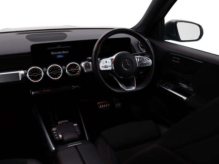 10.25" Digital instrument cluster display screen, 10.25" Digital media screen display, Attention assist - Monitors steering behaviour and long journey fatigue, Brake pad wear indicator warning light, Car wash mode, DYNAMIC SELECT with a choice of driving modes (ECO, Comfort, Sport and Individual), ECO start/stop function, Fluid level warning indicator for fuel, oil, coolant and washer fluid, Hard disk navigation, Hey Mercedes Voice activation, Lamp failure indicator, Mercedes me connect including emergency call system, accident recovery, breakdown management and maintenance, Mercedes me remote services, Outside temperature gauge, Owners manual and service booklet in English, Parameter steering system, Pre-installation of private car share, Radio aerial integrated into front and rear windshields, Service indicator (ASSYST), Smartphone integration with Apple CarPlay and Android auto, Traffic sign assist, Trip computer in multifunction display with current consumption indicator, 23.8 litre AdBlue fuel tank, Comfort suspension, Rear axle multi-link, DAB digital radio tuner, MBUX multimedia system with DAB digital radio and touchpad including satellite navigation, Mercedes Benz sound system (225 W) with 10 speakers, 1 central speaker, speakers on doors, a tweeter on door, one sub woofer + boost amplifier, Pre installation for Mercedes Benz Link, USB (type C) port in front stowage compartment, USB (type C) ports (2) in stowage compartment, Adaptive brake lights, Aerial for GPS, AMG bodystyling door panels black grained with chrome plated inserts, AMG bodystyling front apron with chrome splitter, AMG bodystyling rear apron with diffuser optics and chrome trim element, AMG specific front and rear bumper including underride guard in high gloss chrome, Auto headlights, Beltline strips and weather strip in chrome, Body coloured door handles with chrome insert for keyless entry, Body coloured door mirror caps, Electric adjustable and heated door mirrors with integrated LED side indicators, Electric panoramic glass sunroof, Exhaust system with dual flow exhaust pipes (non-functional), Front and rear electric windows, Headlamp assist automatic headlamp activation, Heated glass rear windscreen + timer control, High level LED third brake light, Interior mirror with black reading lamps and frameless, LED daytime running lights, Multibeam LED headlamps and tail lamp with adaptive high beam assist, Polished aluminium roof rails, Privacy glass with dark tinting on rear side windows and rear window, Radiator grille with pins in chrome and single louvre with chrome insert, Rain sensor windscreen wipers, Rear fog lamp, Rear side wing doors, Rear wiper, Two visible tailpipe trim elements exhaust, 3 seat bench in 2nd row, 3 spoke multifunction sport steering wheel in nappa leather, Air conditioning - Two zone thermotronic luxury automatic climate control with display, AMG sports pedals with brushed stainless steel surfaces and black rubber studs, Artico man-made leather/Microfibre Dinamica upholstery with red contrast stitching, Automatic child seat recognition sensor, Black floor mats with AMG lettering, Black roof lining, Fore/aft adjustment rear seats, Freight packaging with tie-down hooks, Front centre armrest with stowage, Front door sills with illuminated changeable cover, Front passenger grab handle with brushed side silver chrome, Galvanished gear shift paddles on steering wheel, Heated front seats, Height/reach adjustable steering column, Interior lighting - 64 colour Ambient lighting, Luggage net on driver/front passenger seat backrest, Rear armrest with two integral cup holders for drinks, Rear seat easy entry, Single front passenger seat, Sports seats with adjustable head restraints, Stowage compartment in centre console, Stowage compartment with retractable cover, Third row of seats for two people on rear seat, Touchpad on center console, Twin front cup holders, Two outer rear seat isofix and top tether child seat fixing points, Interior lighting with light and sight pack - GLB, Keyless go pack - GLB, Mirror pack - GLB, Off-road engineering package - GLB, Parking pack - GLB, 3 rear 3 point seatbelts, Active bonnet pedestrain safety measure which detects an impact and raises bonnet by 65mm, Adaptive brake assist with hold function and hill start assist, Airbags - kneebag for driver, Anti-lock braking system (ABS) with brake assist, Childproof locks manually operated for rear doors and electrically operated for rear power windows, Crash responsive emergency lighting, Curve dynamic assist, Driver and front passenger head and sidebags, Driver and front passenger windowbags, Dual stage driver and front passenger airbags, Electronic parking brake, Electronic stability programme with acceleration skid control, Front and rear seatbelt reminder, Front brake callipers with Mercedes Benz lettering, Front passenger seat occupancy sensor, Perforated and ventilated front brake discs, Tyre pressure monitoring system, Warning triangle and first aid kit, Remote central locking and crash sensor with emergency opening function, Thatcham category 1 alarm system with immobiliser and interior protection, Urban guard vehicle protection - Anti theft alarm system, tow away protection with visual and acoustic warning and alarm siren, Vehicle key with decorative surround in chrome, Black air vents with chrome surround, Carbon structure trim, 19" AMG 5 twin spoke light alloy wheels painted in tantalite grey with high sheen finish, Summer tyres, Tirefit tyre sealant kit,