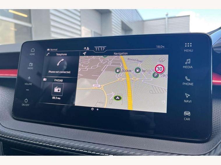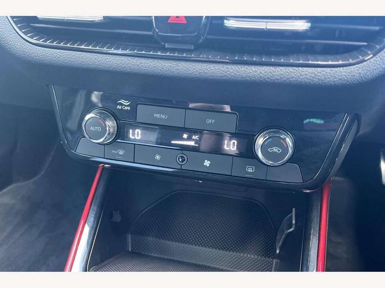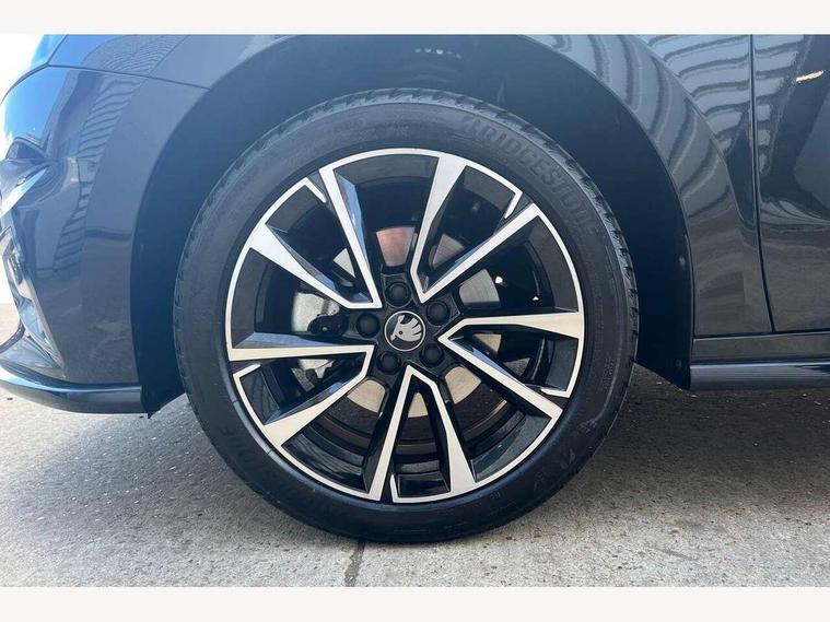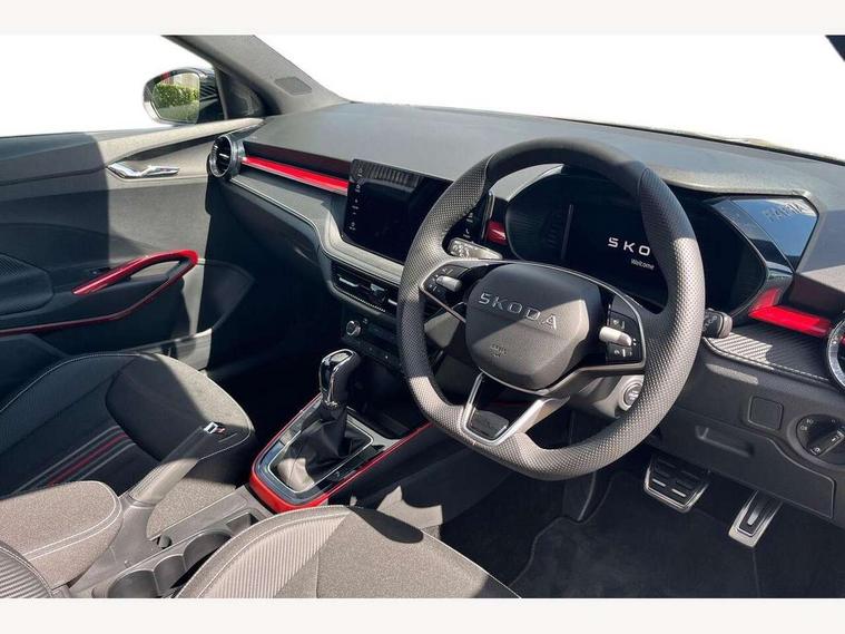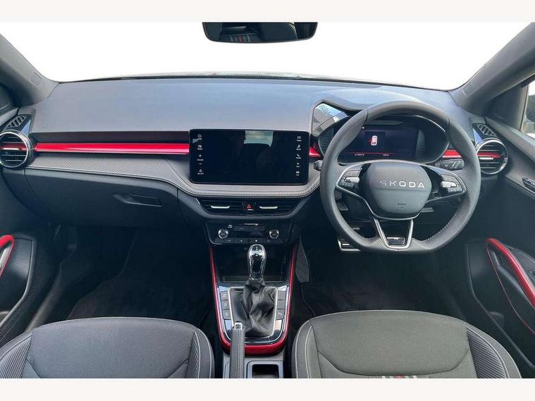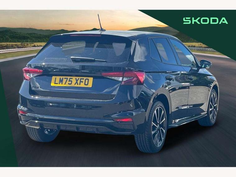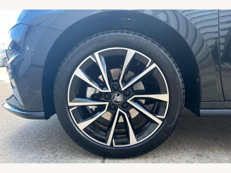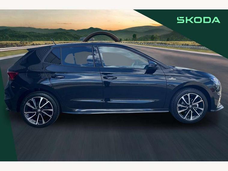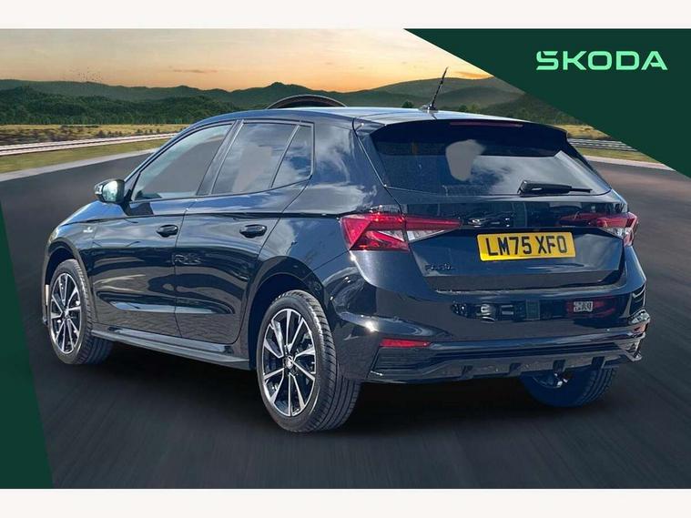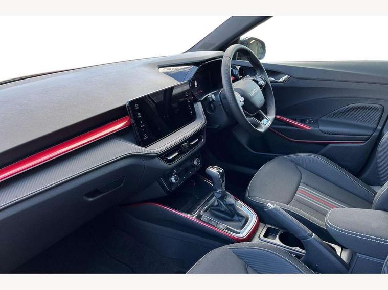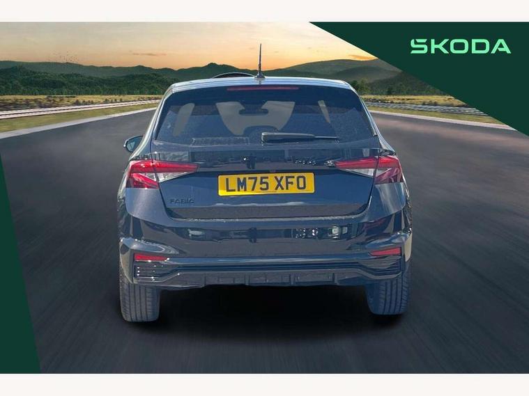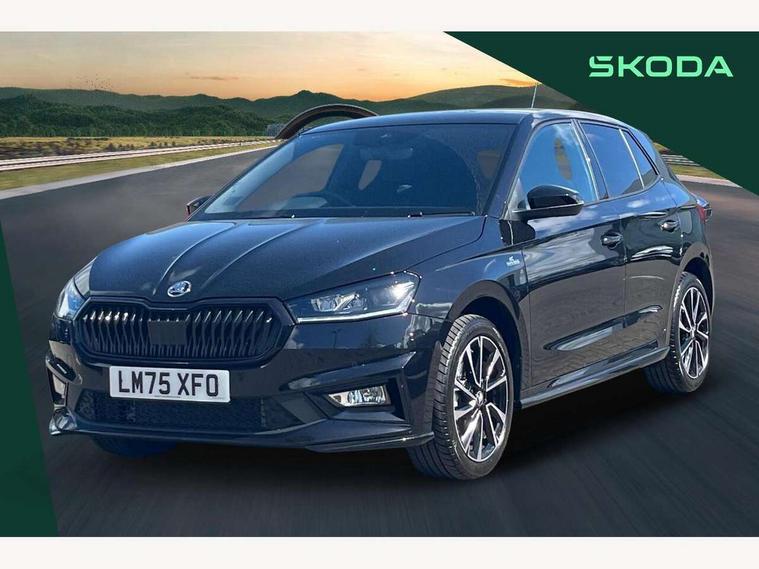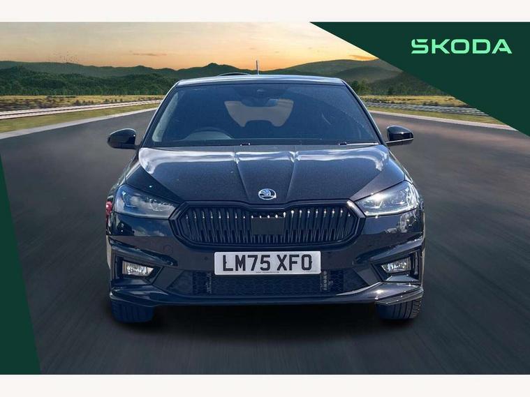 Advanced driver attention and drowsiness monitor, Bluetooth connection, Driver alert system, Electromechanical power steering, Exterior temperature gauge, Service interval indicator, Traffic sign recognition, Virtual cockpit with 10.25" colour display, Wireless SmartLink for Apple CarPlay and Android Auto, 6 Speakers (4 in front and 2 in rear), 9.2" colour display skoda navigation system with voice control and web radio, Auxiliary socket for external MP3 player, DAB digital radio reception, Auto dimming rear view mirror, Black radiator grille, Body coloured bumpers, Chrome window surround, Door mirror integrated indicators, Dynamic headlight range control, Front and rear electric windows, Front window wiper intermittent control, Ice scraper in fuel cap, LED 3rd brake light, LED daytime running lights with coming and leaving home feature, LED rear lights, Monte Carlo badging, Privacy glass, Rear LED fog light, Rear side wing doors, Rear window wiper with washing nozzles, Roof mounted spoiler, SKODA tailgate lettering in black, Sports bumpers, Unique dark chrome design logo on alloy wheels, 2 LED reading lights in front and rear, 3 rear headrests, Aluminium pedals, Backrest split and folding, Black headlining, Central console with fixed cup holder and storage box, Chrome handbrake release button, Door sills with fabia badging, Dual zone air conditioning with climatronic electronic control, Fabric/artificial leather upholstery, Front centre armrest, Front sports seats, Gearshift knob/handle in leather, Hand brake lever handle in leather, Height adjustable front headrests, Height adjustable front seats, Height adjustable steering wheel, ISOFIX and TopTether anchorage points to the outer rear seats, ISOFIX and TopTether on the front passenger seat, Luggage compartment lighting, Manually adjustable lumbar support in front seats, Metallic red interior door handles, Pollen filter, Rear seat bench unsplit, Single front passenger seat, Skoda lettering on steering wheel, Sun visors with mirror and airbag label on passenger side, Textile floor mats, Ticket holder, Umbrella in drivers door, Ambient lighting pack - Fabia Hatchback, Convenience pack - Fabia, Light and view pack plus - Fabia, 3-point height adjustable front seats belts with pretensioner and force limiter, Automatic warning lights in case of crash, Driver and passengers airbag with switch off function, e-Call+, ESC including ABS, MSR, ASR, EDS, HBA and XDS, Front and rear seat belt warning, FRONT ASSIST (AEB City and AEB Inter Urban), Front side airbags, Head airbags, Hill hold control, One tone horn, Pedestrian protection, Three rear 3-points safety seat belts with pretensioner and force limiter including stop function for outer rear seat belts, Tyre pressure monitoring system, Anti-theft alarm system including immobiliser, interior monitoring, backup horn, and towing protection, Central locking with radio remote control, interior controls, SAFE function and 2 foldable keys, Carbon effect door and side trim panels, Carbon effect lower decorative trim with white stitching, Grain satin black central console cover, Monte carlo air vents, Red metallic upper decorative trim, Anti-theft wheel bolts protection, Super-low rolling resistance tyres,