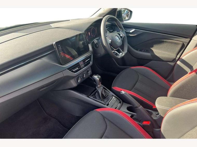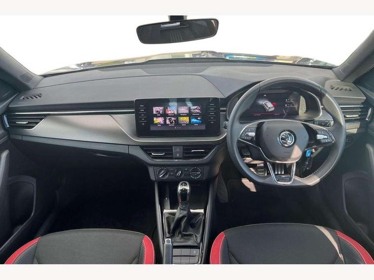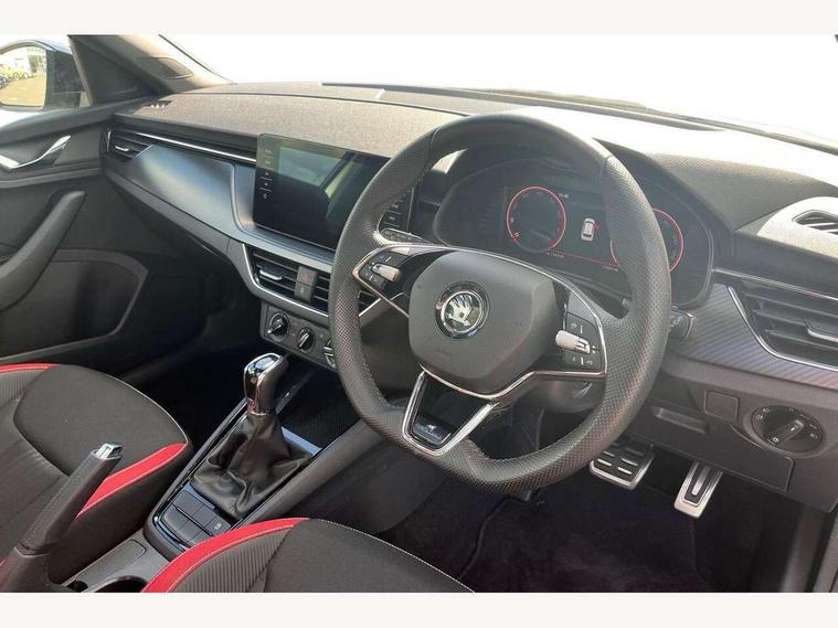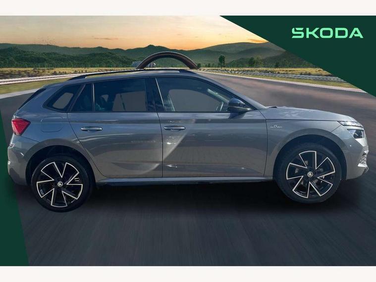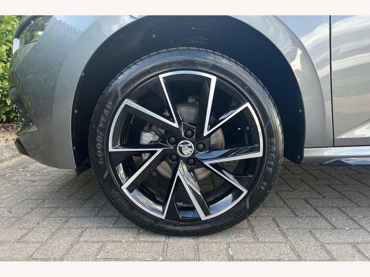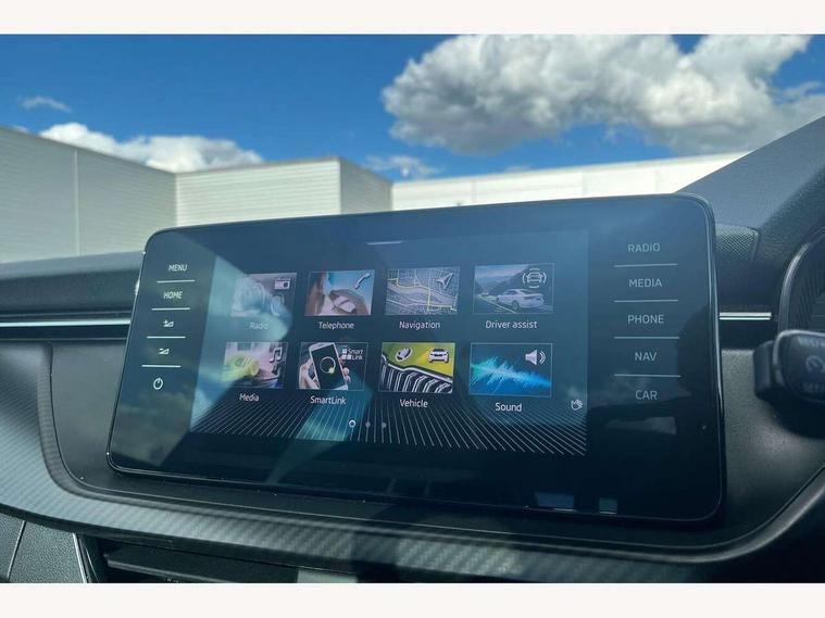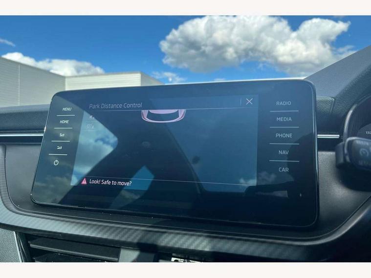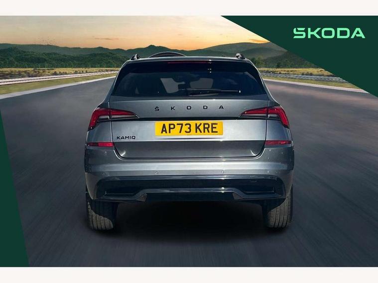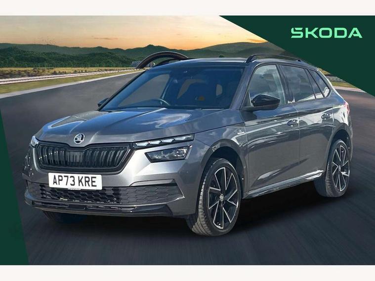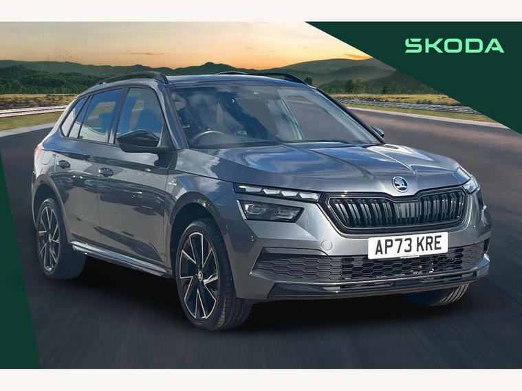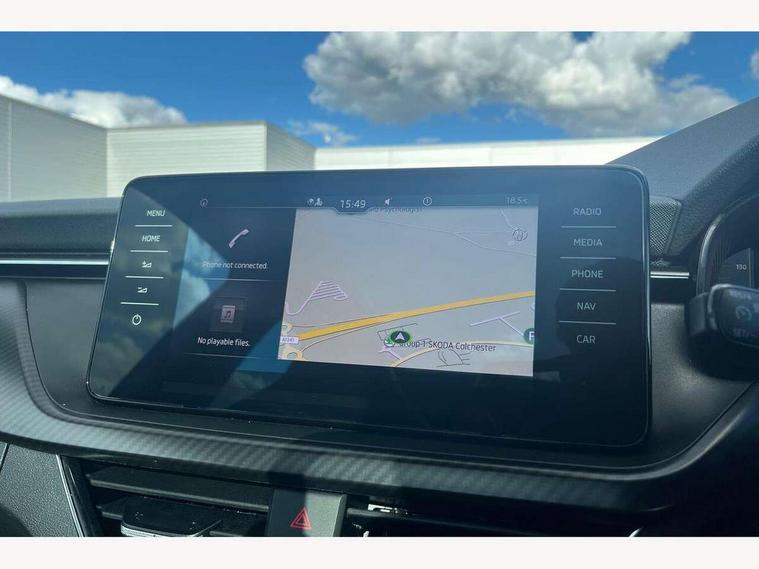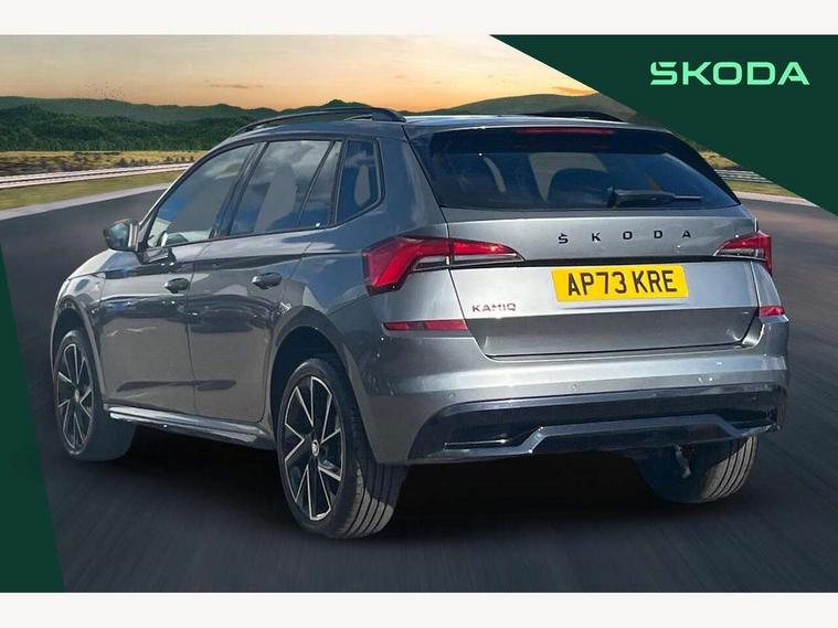 Amundsen satellite navigation with 9.2" glass colour touchscreen display, web radio, voice control and traffic sign recognition, Bluetooth system, E-call, Front assist system, Gesture control, PAS, Service indicator, Speed limiter, Wireless Smartlink for Apple CarPlay (wired for Android Auto), 8 Speakers, Auxiliary input socket, DAB Digital radio, Black door mirrors, Black radiator grille, Black rear diffuser, Body colour bumpers, Body colour door handles, Body colour roof spoiler, Boot lettering in black, Chrome grille surround, Dimming rear view mirror with black surround, Electrically adjustable and heated door mirrors, Fixed panoramic sunroof with black roof rails, Front and rear electric windows, Front sport bumper, Full LED headlights with adaptive front light system, cornering function, fog lights and dynamic indicators, Headlight range control, Heated rear window, High functionality rear led lights with dynamic indicators, KAMIQ Door sills, LED daytime running lights, LED third brake light, Light sensors, Monte carlo plaque, Privacy glass, Rain sensor, Rear fog lights, Rear side wing doors, Rear wiper, 12V Accessory socket in centre console, 3 seat bench in 2nd row, Aluminium pedals, Black ceiling for black/beige interior, Black roof lining, Chrome inner door handles, Cloth upholstery, Front head restraints, Glove compartment with illumination, Ice scraper, Isofix child seat fittings on outer rear seats, ISOFIX on front passenger seat, Leather gear lever, Manual lumbar support for front seats, Rake/reach adjustable steering wheel, Reading lights, Single front passenger seat, Sports seats, Sun visors with illumination on front passenger, Textile floor mats, Third rear headrest, Top tether for front passenger seat, Umbrella in driver's door, 3x3 point rear seatbelts, Airbags - driver and front passenger, ESP, Front passenger airbag deactivation switch, Front side airbags with curtain airbags, Hill hold control, Manual parking brake, Manual rear child locks, One tone horn, Rear disc brakes, Seatbelt reminder for driver an co-driver, Traction control, Tyre pressure monitor, Anti-theft alarm system with interior monitoring, backup horn, towing protection and remote central locking with SAFE system, Anti-theft wheel bolts, Electronic engine immobilizer, Chrome air vent surrounds, 18" Vega alloy wheels in black,