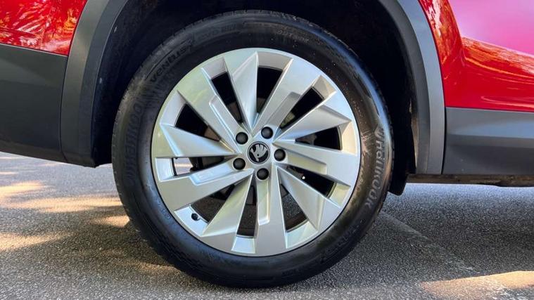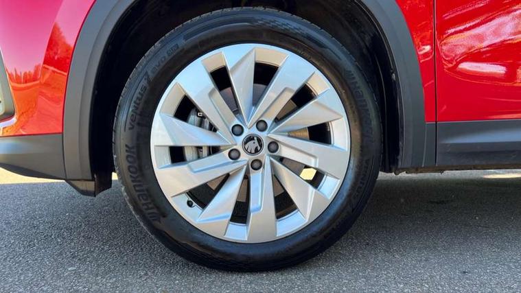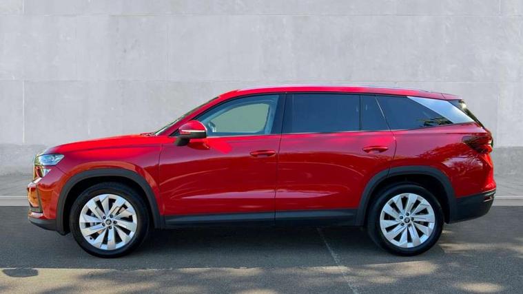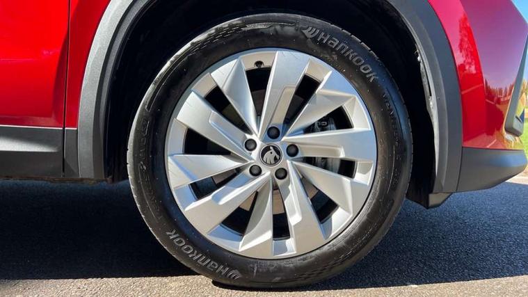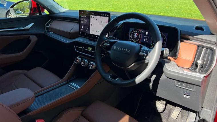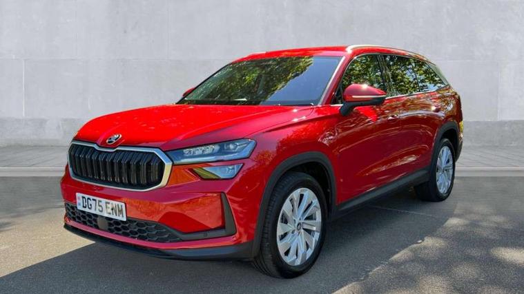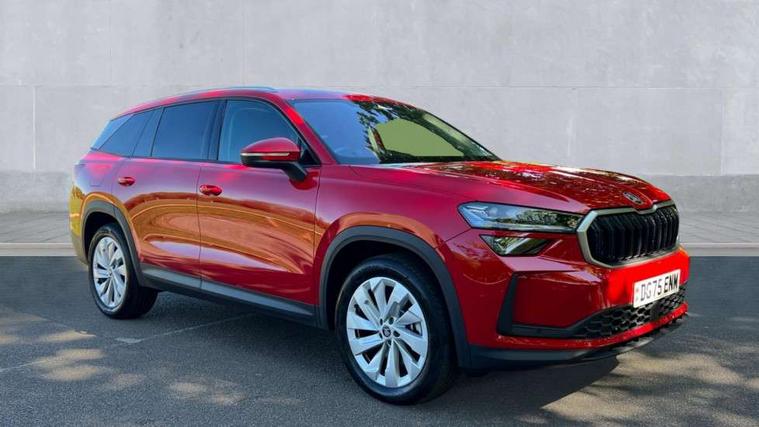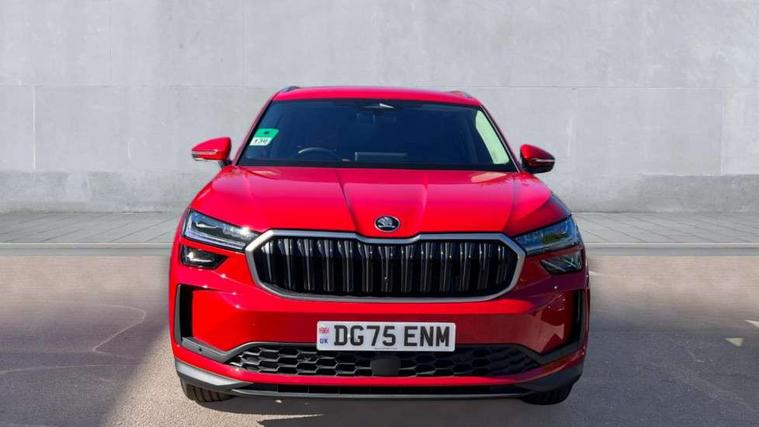 13" satellite navigation touchscreen display, Blind spot detection with door exit warning, Bluetooth system, ChatGPT functionality, Driver alert - Fatigue and drowsiness monitor, Dry display cleaner, Emergency call, Front and rear parking sensors, Front cross traffic assist, Lane assist, PAS, Rear traffic assist, Tailgate unlocking from outside, Traffic sign recognition, USB C Port x 2 in front centre console, Virtual Cockpit - 10.25" digital display, Voice control system, Wireless charging for two smartphones (15W) with cooling function, Wireless SmartLink for Apple CarPlay and Android Auto, Stop/start function, 2x USB-C in the rear, DAB Digital radio, Aero front windscreen wipers with intermittent function, Auto dimming rear view mirror, AWL (all weather lighting) and all weather light with cornering function, Black wheel arch surrounds, Body colour bumpers, Body colour door mirrors and handles, Cornering light and poor weather light, Electric folding /adjustable/separted heated/folding door mirrors, auto dimming with boarding sports and memory function, Electric front and rear windows, Exterior black decorative trims, Front grille with horizontal light strip, Heat insulating glass in windshield, Heated rear window, Ice scraper in fuel tank cap, Invisible tailpipe, LED daytime running lights, LED matrix headlights with AFS and LED fog lights, LED rear light with welcome effect and dynamic turn signals, LED third brake light in rear spoiler, Light assistant with automatic headlight control and coming home feature, Logo projection in door mirrors, Multiple matrix beam, Privacy glass, Rear roof spoiler, Rear side wing doors, Rear window wiper, Red decorative strip between rear LED lights, Safety reflectors on front and rear doors, Unique dark chrome design logo on alloy wheels, Window control switches with black trim, Windscreen wipers with rain sensor, Without engine designation, 1.5l bottle holder points in all door, 1x centre rear reading light, 2 seat bench in 3rd row, 2 spoke multi-function leather heated steering wheel with paddle shift, 3 configurable smart dials with 32mm coloured display, 3 seat bench in 2nd row, 4 foldable roof handles with rear coat hooks, Ambient interior lighting - Dashboard, front-door stowage compartments, front and rear door panels and footwell lighting, Automatic gear selector on steering column, Chrome interior door handles, Driver/front passenger reading lights, Fabric headlining, Fixed bench 40:60:40 split folding backrests, Front and rear floor mats, Front centre armrest with jumbo box storage compartment, cup holder and 12V socket, Height adjustable front headrests, Isofix child seat fittings in outer middle row rear seats and front passenger with top tether, Manually adjustable steering column, Pollen filter, Rear centre armrest with cupholders, Rear seat boot backrest release, Single front passenger seat, Skoda lettering on steering wheel, Storage pocket including mobile phone pockets on the backs of the front seats, Sunvisors with illuminated vanity mirrors, Three rear height adjustable headrests, Ticket holder on A Pillar, Tri zone climate control, Umbrella in door panel x1 made from sustainable materials, Upper and lower glovebox with card holder and coin compartment, USB C port by rear view mirror for charging only (15W), Exterior styling pack - Kodiaq, Auto door release and activation of warning lights in the event of an accident, Driver and front passenger airbag with knee airbag and front passenger airbag deactivation, Electric child locks, Electronic parking brake, ESC (incl. ABS+EMD+MSR+ASR+EDL+HBA+DSR+RBS+ESBS+MCB+TSA+XDS), Front assist with braking reaction to vehicles, pedestrians and cyclists, Front disc brakes, Fuel cut off safety device, Height adjustable front 3 point seatbelts + pretensioners, Hill hold assist, Junction assist with automatic emergency braking, Rear disc brakes, Safety vest holder in door, Seat belt reminder for all seats, Three point rear seat belts, Two tone horn, Tyre pressure monitor, Anti-theft wheel bolts, Immobiliser, Remote central locking with 2 keys,