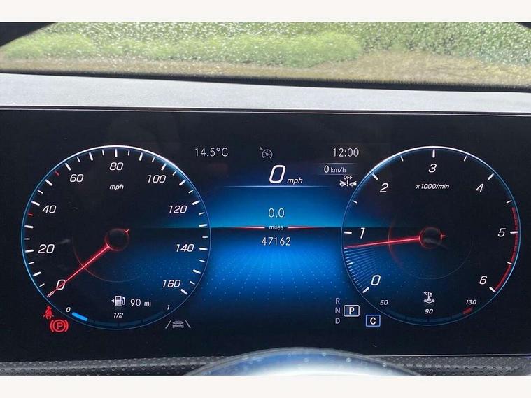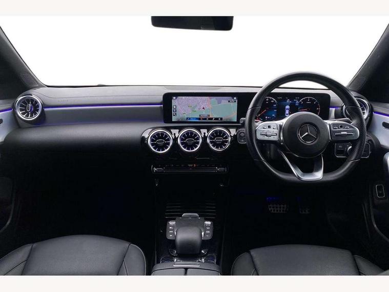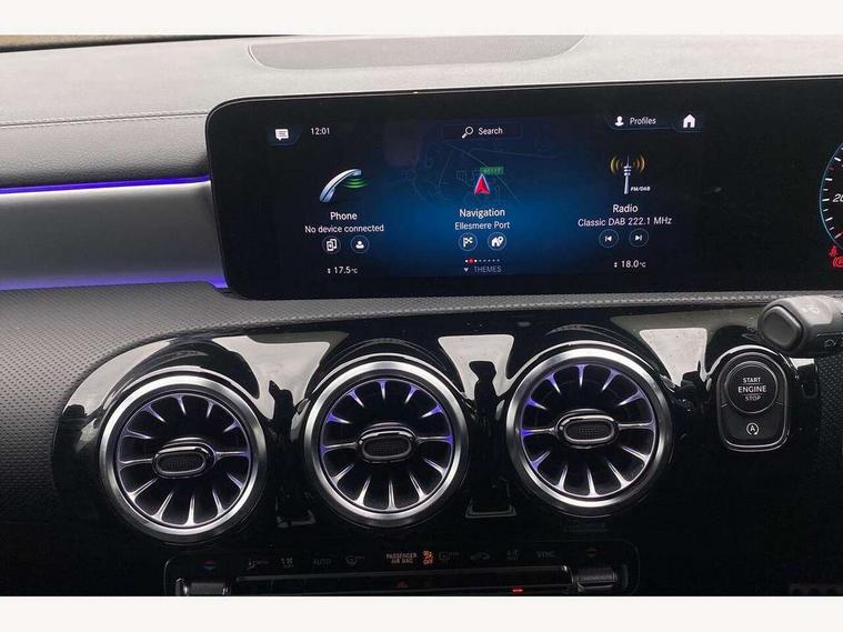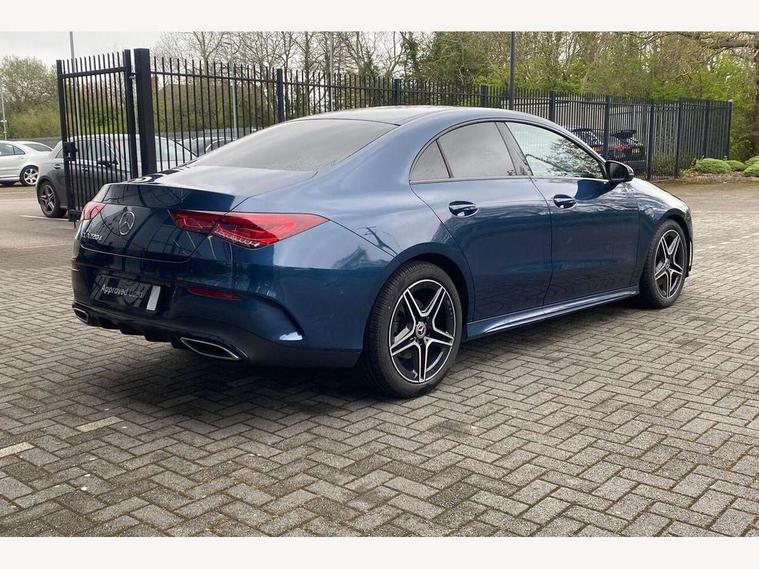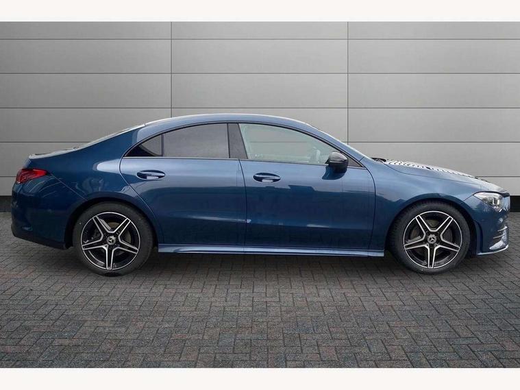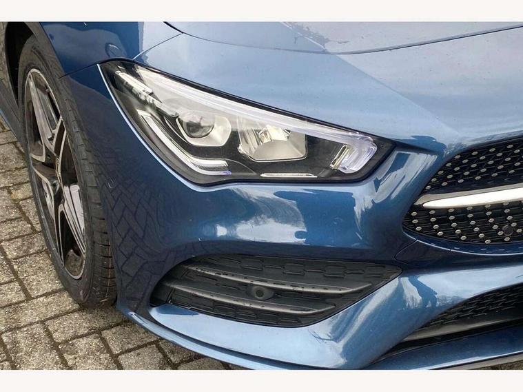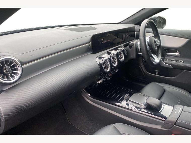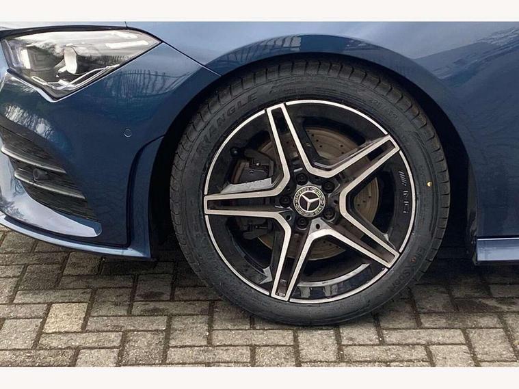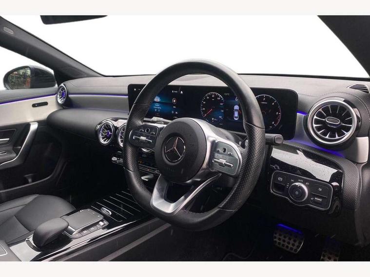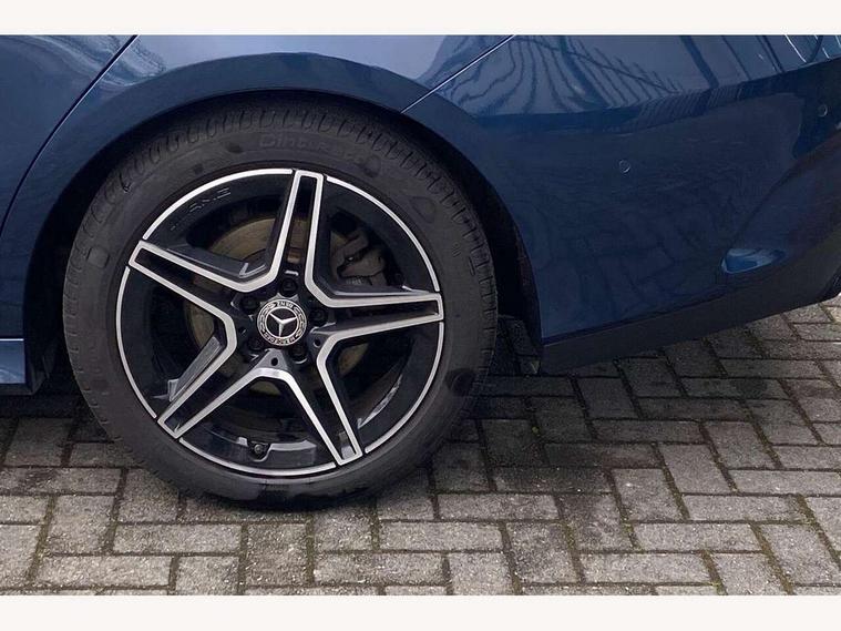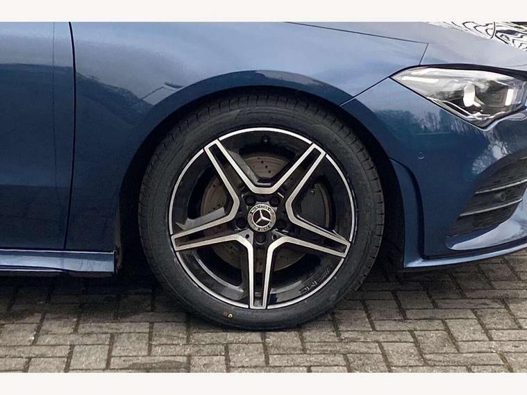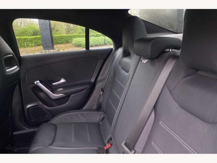 10.25 inch Instrument display with digital cockpit, 10.25 inch touchscreen central media display, Active lane keeping assist, Attention assist - Monitors steering behaviour and long journey fatigue, Bluetooth connection, Car wash mode, Cruise control with limiter, Direct steer system with speed sensitive power steering, DYNAMIC SELECT with a choice of driving modes (ECO, Comfort, Sport and Individual), ECO start/stop function, Fluid level warning indicator for fuel, oil, coolant and washer fluid, Hard-disk navigation, Hey Mercedes Voice activation, Lamp failure indicator, Mercedes me connect including emergency call system, accident recovery, breakdown and maintenance management, Mercedes me remote services, Outside temperature gauge, Owners manual and service booklet in English, Pre-installation of private car share, Preinstallation for Mercedes Benz link, Radio aerial integrated into front and rear windshields, Service indicator (ASSYST), Smartphone integration with Apple CarPlay and Android auto, Speed limit assist, Trip computer in multifunction display with current consumption indicator, Lowered comfort suspension, Rear axle multi-link, DAB digital radio tuner, MBUX multimedia system, Mercedes Benz sound system (100 W) with 6 speakers, USB (type C) ports (2) in stowage compartment and 1 in front of centre console, Adaptive brake lights, AMG body styling with AMG front apron and rear apron and visible exhaust tailpipe in chrome trim elements, AMG bodystyling side skirts, Body colour bumpers, Body colour door handles, Chrome beltline strips, Diamond radiator grille pins in chrome, Electric windows, Electrically adjustable and heated door mirrors with integrated LED indicators, Exhaust system with 2 Visible tailpipe trim elements and rear apron with trim in chrome, Headlamp assist automatic headlamp activation, Heated glass rear windscreen + timer control, High level LED third brake light, Interior mirror with black reading lamps and frameless, LED high performance headlamps with integrated LED daytime running lights, LED tail lamp, Privacy glass with dark tinting on rear side windows and rear window, Rain sensing windscreen wipers with two sensitivity settings, Rear boot, Rear fog lamp, Rear side wing doors, Variable front intermittent wipers, Window line trim strip in chrome, 3 seat bench in 2nd row, 3 spoke flattened bottom nappa leather multifunction steering wheel with perforated leather in grip area, 40:20:40 split folding rear seat backrests, Air condition air vents with surround in silver chrome, Air conditioning - Two zone thermotronic luxury automatic climate control with display, Artico man-made leather upholstery, Automatic child seat recognition sensor, Black roof lining, Brushed stainless steel sports pedals with rubber studs, Floor mats with stitched AMG lettering, Front centre armrest with stowage, Front door sills with Mercedes Benz lettering, Galvanished gear shift paddles on steering wheel, Heated front seats, Illuminated glove compartment stowage, Interior lighting - 64 colour Ambient lighting, Luggage net on driver/front passenger seat backrest, Manually adjustable front seats, Manually height and reach adjustable steering column, Rear head restraints, Single front passenger seat, Sport seats with fixed head restraints, Stowage compartment in centre console with retractable cover, Sunvisors with illuminated vanity mirrors, Touchpad on center console, Twin front cupholders, Two outer rear seat isofix and top tether child seat fixing points, Light and sight pack - CLA, Mirror pack - CLA, Night package - CLA, Parking package - CLA, Seat comfort pack - CLA, Active bonnet pedestrain safety measure which detects an impact and raises bonnet by 65mm, Active brake assist includes forward collision warning system with autonomous braking, Adaptive brake assist with hold function and hill start assist, Anti lock braking system (ABS) with brake assist, Black seat belts, Bonnet with power domes, Brake pad wear warning indicator, Childproof locks manually operated for rear doors and electrically operated for rear power windows, Crash responsive emergency lighting, Driver and front passenger head and sidebags, Driver and front passenger windowbags, Drivers knee airbag, Dual stage driver and front passenger airbags, Electric parking brake, Electronic stability programme with acceleration skid control, ESP curve dynamic assist, Front and rear seatbelt reminder, Front passenger seat occupancy sensor, Three point rear seat belts, Tyre pressure monitoring system, Warning triangle and first aid kit, Guard 360 degree guard vehicle protection system with immobiliser and interior protection, Keyless Go starting function, Remote central locking and crash sensor with emergency opening function, Light aluminium with longitudinal grain interior trim, 18" AMG 5 twin spoke light alloy wheels painted in black with high sheen finish, Summer tyres, Tirefit tyre sealant kit,