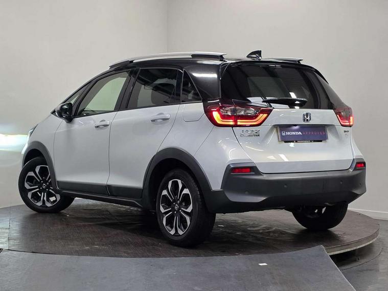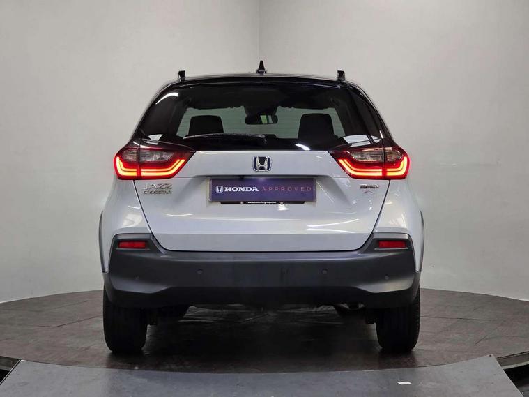 Adaptive cruise control, Bluetooth hands free telephone connection, Econ mode, Electric power steering wheel with variable gear ratio steering, Emergency stop signalling system, Forward collision warning, Front and rear parking sensors, Honda CONNECT with HERE Navigation + 9" touchscreen, AM/FM/DAB/Apple Carplay and android auto, Idle stop, Intelligent speed limiter, Lane departure warning system, Lane keep assist system, Low speed following, Multi-information display, Road departure mitigation, Traffic sign recognition, Vehicle stability assist, 'Shark fin' mobile antenna, 2 USB sockets in rear, 2x USB Front socket (1 data & 1 charge), Premium audio with 8 speakers, front tweeter, centre speaker, Remote audio controls on steering wheel, Subwoofer, Aspheric door mirrors, Auto wipers, Automatic headlights with on/off timer, Coming/leaving home function, Body colour door handles, eHEV emblem, Electric adjustable door mirrors, Electrically folding door mirrors, Exclusive styling includes Front and rear bumper, Front fog garnish, Black fender, side sill garnish, Front and rear electric windows, Heated door mirrors, High beam assist, LED daytime running lights, LED front fog lights, LED Headlights, LED rear lights, Privacy glass, Roof rails, Single exhaust tailpipe, 60/40 split rear bench seat, Climate control air conditioning, Driver and front passenger seat armrests, Driver and passenger front seat pockets, Driver's seat height adjustment, Fabric/Water repellent upholstery, Front accessory power socket, Front head restraints, Front map lights, Front/rear courtesy lights, Heated front seats, Isofix child seat restraint mechanism, Isofix points, Leather gearshift knob, Leather steering wheel, Magic seat flexibility system, Paddle shift controls, Plating interior door handles, Rear head restraints, Rear parcel shelf, Sunvisors with vanity mirrors, Tilt/telescopic adjustable steering wheel, Tonneau cover, Trunk light, 3x3 point rear seatbelts, Anti-lock braking system (ABS), Brake assist function, Brake hold function, Collision mitigation braking system, Deflation warning system, Driver knee airbag, Driver SRS airbag (single stage inflation), Driver/Front Passenger airbags, Electric parking brake, Front and rear side curtain airbag, Front side airbags, Hill start assist, Passenger SRS airbag cut-off device, Rear side airbags, Front seat belt with emergency locking retractor, Honda super locks, Immobiliser, Mirrors and windows key fob operation, Remote central locking with 2 remote folding keys, Security alarm, Smart entry + Smart start, Soft pad mesh interior panels, 16" AL Crosstar alloy wheels in mat berlina black, Tyre repair kit,
