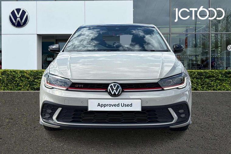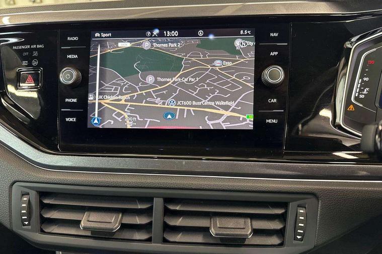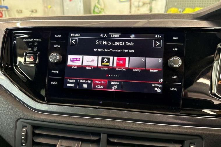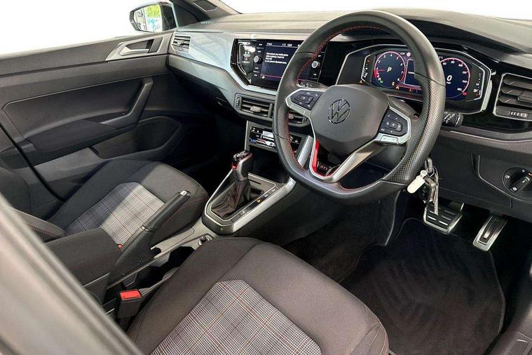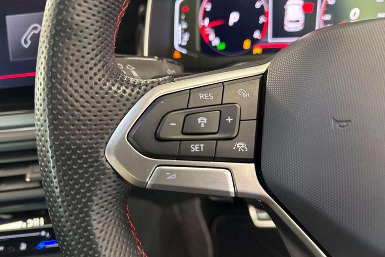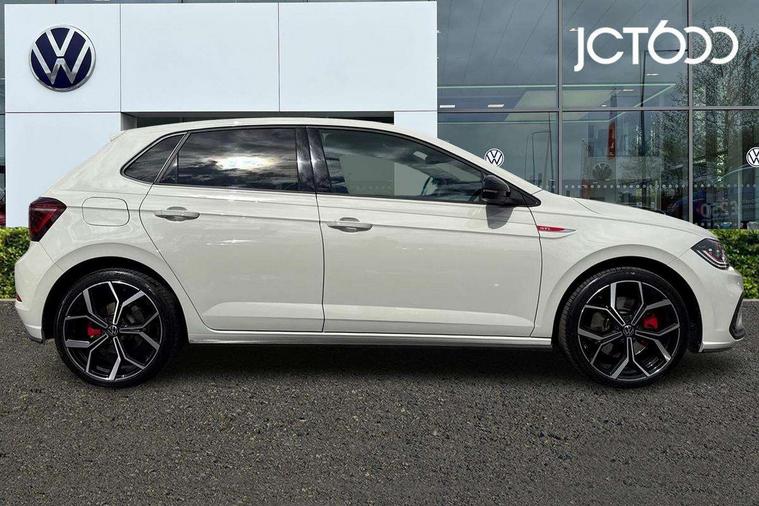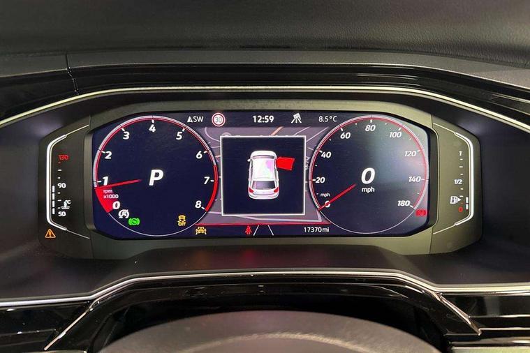 Adaptive cruise control without follow-to-stop and speed limiter, Bluetooth mobile phone interface, Digital Cockpit Pro with 10.25" Display, Driver alert system, Dynamic road sign display, Emergency call service, Power assisted speed sensitive steering, Preparation for We connect and We connect plus, Speedo and rev counter, electronic odometer, trip, service interval display and fuel gauge, Standard rear axle, Travel Assist - Lane keeping system and traffic jam assist, Travel assist including emergency assist, Trip computer, Warning signal and warning light for front and rear seatbelts not fastened, Washer fluid level indicator, Wireless app connect, Front wheel drive, Rear shock absorpion, Start-stop system with battery regeneration (recuperation - energy recovery during braking), DAB Digital radio, Diversity antenna for FM reception, Front and rear 6 speakers, Body colour bumpers, Body colour door handles, Electric front windows, Front scuff plates with R-Line logo, Heat insulating glass in side and rear windows, Heat insulating glass windscreen, Power folding adjustable/heated exterior mirrors and front passenger exterior mirror lowering function, Rear electric windows, Rear fog light, Rear side wing doors, Rear windscreen washer and wiper with interval delay, Third brake light, 12V power socket in centre console, 2 USB-C ports in the front, 2 USB-C charging sockets on the center console in the rear, 3 rear head restraints, 60/40 split folding rear seat and rear seat bench not split, Air care climatronic air conditoning system with active combination filter and 2-zone temperature control, Black roof lining, Chrome plated radiator grille inserts, air vent surrounds and light switch surrounds, Door and side trim panel, Driver and front passenger seat height adjustment, Driver/passenger sunvisors with illuminated vanity mirrors, Front + rear carpet mats in recycled material, Front centre armrest, Front footwell illumination, Front seat backrest storage pockets, Front sports comfort seats, Handbrake lever handle in leather, Headliner in recycled material, Isofix child seat preparation easy-fit (for two outer rear seats, and front passenger seat) compatible with I-size, Karoso artvelours cloth upholstery, Leather trimmed gear knob, LED interior light with switch off delay and dimmer, 2 reading lights front and rear, Luggage compartment cover, Luggage compartment floor, Luggage compartment lighting, Lumbar adjustment for front seats, Multifunction steering wheel, Single front passenger seat, Stainless steel pedals, Standard pedal cluster, Light and sight pack - Polo R-Line, 3 point height adj front seatbelts + pretensioners, 3x3 point rear seatbelts, ABS, Driver and front passenger airbag with front passenger airbag deactivation, Drivers and front passengers safety optimised head restraints, ESC (Electronic stability control) + EDL (Electronic Differntial lock) and ASR (Traction control), Extended and predictive pedestrian/ cyclist protection, Front curtain and side airbags with center airbag, Hill hold control, Manual child lock in rear doors, Single tone horn, Tyre pressure loss indicator, Alarm with interior protection, Anti-theft alarm system with interior monitoring, backup horn, and towing protection, Anti-theft wheel bolts, Electronic engine immobiliser, Chrome applications on rotary light, mirror adjustment, window regulator switches, outlet with frame in black, Dark grey anodised matt decorative inserts in dash and front door panels, Low rolling resistance tyres,