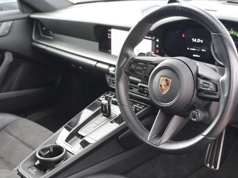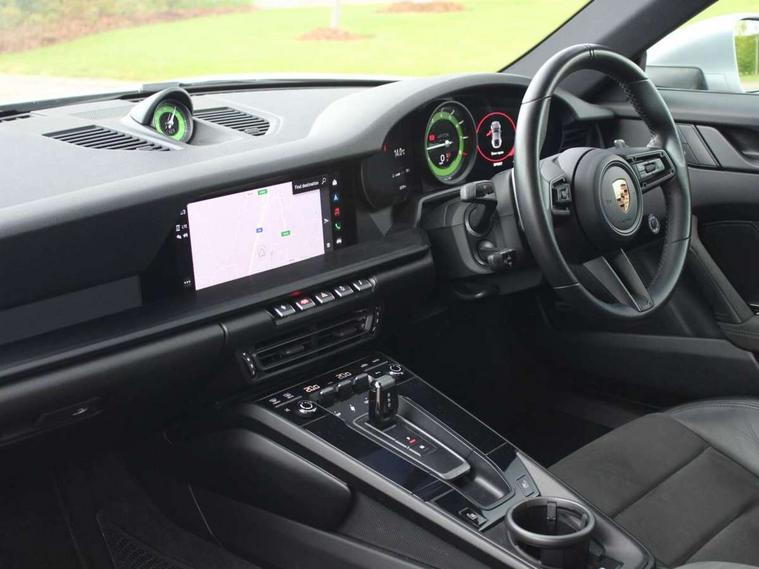 10.9 inch centre display, Apple car play and Android auto, Automatic start/stop system, Digital display for selected gear in rev counter, eCall emergency system, Gear indicator in rev counter, Instrument cluster with central analogue rev counter and two 7-inch TFT displays, Porsche Communication Management (PCM) including online navigation module, mobile phone preparation, audio interfaces and voice control system, Porsche connect plus, Apple carplay, LTE telephone module with Sim card reader, wireless internet access and other Porsche connect services, Service indicator, Stationary management with HOLD function, Trip computer, Warn and Brake Assist with intergrated front cameras, 8 Speed Porsche Doppelkupplung (PDK) with dual mass flywheel, Aluminium block and cylinder heads, Catalytic converters, Direct fuel injection (DFI), Dry sump lubrication, Expansion intake manifold, Four valve per cylinder, McPherson-strut suspension with anti-roll bar at front, PASM sport suspension 10mm lowered with helper springs added to rear, Porsche Stability Management (PSM), ABS with extended brake functions, Porsche Torque Vectoring Plus (PTV Plus) inc electronically regulated rear differential lock and fully variable torque distribution, Rear wheel drive, Twin turbocharger intercooled, Two gasoline particulate filter, VarioCam Plus variable valve timing and switchable valve lift, Water-cooled engine with thermal management, 4 valves per cylinder, 2 USB-C connectivity and charge ports in the centre console storage compartment, DAB Digital radio, Auto deploying rear spoiler, Automatic headlight activation including welcome home lighting, Black trim strips, Body coloured bumpers, Electrically adjustable heated exterior mirrors on door waist rails, aspherical on driver's side, Engine compartment cover grille with vertical slats in black (high-gloss), Green tinted heat insulating glass, Heated rear windscreen, Intelligent lightweight body in Aluminium/Steel composite construction, LED auxiliary light units in the front end with position lights, direction indicators and side indicators, PORSCHE black lettering integrated in taillight strip, Power windows with one touch operation and door seal protection, Rear lid grille with vertical slats in satin black, Side skirts trim in black, Side window trim strips in black, Taillight strip with clear LED taillights including integrated parking lights and rear fog light, Trims on sideskirts in black, Windscreen washer system with aero wiper blades and washer jets, 12V socket in front passenger footwell, 2+2 seater with rear engine, Ascending centre console with storage compartment, Black race-tex on steering wheel rim, seat centres, door handles, door panel armrests, gear lever, centre console storage compartment lid partially, Dashboard trim strip, centre console trim, door panel trim strips in black and black brushed aluminium inlays, Driver and front passenger illuminated vanity mirrors, Front and rear head restraints, Heated front seats, LED door lights, LED footwell lights, LED glove compartment lighting, LED ignition light, LED luggage compartment lighting, LED orientation light, LED reading lights, Lockable glove compartment, Luggage compartment lid release, Particle/pollen filter with active carbon filter, Split folding rear seats, Storage compartments in each doors, Two individual cupholders 1x as inlet in centre console and 1x passenger side, Two zone auto climate control with separate temperature settings for driver/front passenger, automatic air recirculation mode incl air quality sensor, Sport Design pack - 911 GTS, Electric parking brake, Electromechanical power brake, Full size two stage airbags for driver and front passenger, Pedestrian protection, Porsche side impact protection system includes side impact protection in doors, curtain, head/thorax airbags for driver/front passenger in each door, Tyre pressure monitoring system, Engine immobiliser with remote central locking and alarm system with ultrasonic sound based interior surveillance, Porsche vehicle tracking system (PVTS Plus),