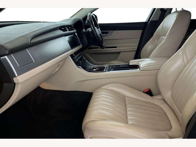 Bluetooth telephone connectivity, Electric power steering, Front parking aid, InControl remote, Jaguar Voice front, Lane departure warning system, Outside temperature gauge, Rear parking sensor, Reversing camera, Service interval indicator, Traffic sign recognition, Trip computer, All terrain progress control, Auxiliary input socket, Bluetooth audio streaming, DAB digital radio module, InControl app, InControl protect, InControl Wi-fi, USB/iPod connection, Acoustic windscreen, Approach lamps, Auto dimming rear view mirror, Automatic headlights, Body colour bumpers, Body colour door mirrors, Chrome grille, Chrome side power vents, Chrome window side surrounds, Electric adjustable heated door mirrors, Electric front/rear windows with one touch/auto up/down, Headlight washers, Heat insulated glass, Heated front windscreen, Heated rear window, LED daytime running lights, LED tail lights, Rain sensor windscreen wipers, Trailer stability assist, 12V socket in rear of vehicle, 2nd row air vents, 3 rear seat head restraints, 40:20:40 split folding rear seats, Auxilliary 12V power socket, Chrome trunk finish, Electric 4-way lumbar support for front seats, Front armrest, Front centre console storage box, Isofix child seat preparation, Jaguar sense, JaguarDrive selector, Lockable glovebox, Overhead console with sunglasses holder, Premium carpet mats, Rear armrests with cupholder, Rear storage compartment, Sunvisors with illuminated vanity mirrors, Tie down hooks in luggage area, Twin front cupholders, Twin rear cupholders, Windsor leather upholstery, ABS+EBA, Anti-whiplash front headrests, Brake pad warning light, Driver/Front Passenger airbags, DSC - Dynamic Stability Control, Electronic parking brake, Emergency brake assist, Front and rear curtain airbags, Front/rear seatbelt pre-tensioners, Hill start assist, Power child locks, Seatbelt warning, Side airbags, Three 3 point rear seatbelts, Torque vectoring brake, Traction control, Tyre pressure monitoring system, Deadlocks, Drive away door locking, Immobiliser, Keyless entry system, Keyless start, Locking wheel nuts, Perimeter alarm, Remote central locking, Morse aluminium IP finisher,