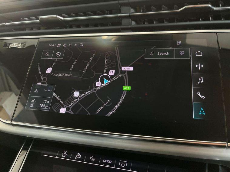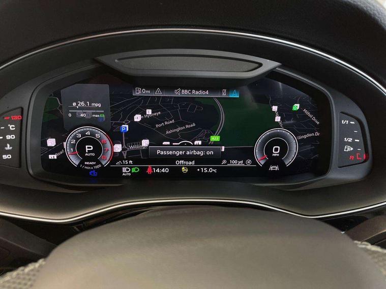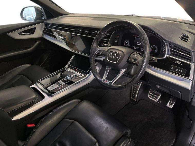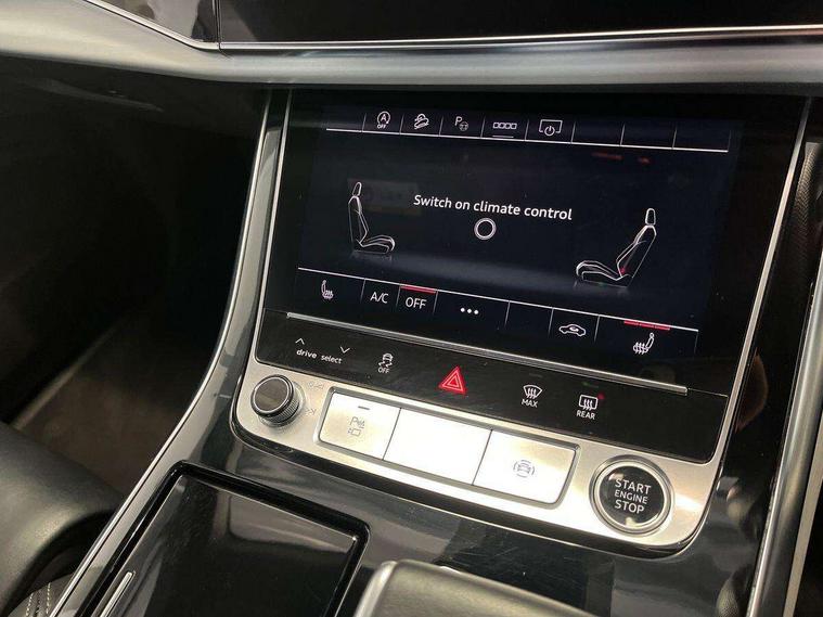 10.1" and 8.6" Dual colour touchscreens, Audi connect safety and service (e-call), Audi connect with Amazon Alexa Integration, Audi drive select, Audi parking system plus includes 360 degree display with front and rear sensors, Audi virtual cockpit - 12.3" high resolution LCD display with fully customisable instrument cluster, Automatic start/stop system, Electro-mechanical PAS, Low washer fluid indicator, MMI - Multi Media Interface control system, MMI navigation plus with MMI touch, Natural voice recognition, On board computer, Operating buttons in black, glass look with haptic feedback, Power operated tailgate, Rear view camera, Service interval indicator, Smartphone interface includes wireless Apple carplay/Android Auto, 48V Mild hybrid technology, 85 litre fuel tank, Adaptive sport air suspension, Quattro all wheel drive with self locking centre differential, Audi music interface with 2 USB ports with charge and data functions, Audi sound system with 6 channel amplifier, 180 watt amplifying capacity and 10 loudspeakers including subwoofer, Aux-in socket, DAB Digital radio, 3rd brake light, Acoustic windscreen, Aluminium window trim, Audi HD Matrix LED headlights with dynamic front and rear indicators, Auto dimming frameless rear view mirror, Body colour door mirrors, Coming/leaving home lighting function, Electric front+rear windows, Electrically folding auto dimming/adjustable/heated door mirrors with memory function, LED side indicators and kerb view function for passenger side, Headlight washers, Heat insulating glass in windshield, Illuminated door sill trims with S line logo, LED signature daytime running lights, Platinum grey front spoiler lip and diffuser insert with honeycomb grille in black, Privacy glass - dark tinted rear and rear side windows from B-pillar backwards, Rain and light sensors, Rear side wing doors, Rear wiper, S line badges on front wings, S Line body styling, S line bumpers in full body colour paint finish, S line roof spoiler, S Line side skirts, S line side ventilation grille, 2 zone automatic climate control, 4-way lumbar support for front seats, 40:20:40 split folding rear bench seat, Black cloth headlining, Comfort front centre armrest, Driver seat memory function, Electrically adjustable front seats, Front head restraints, Front/rear floor mats, Heated front seats, ISOFIX child seat mounting for front passenger seat and 2 outer rear seats with top tether child seat mounting for all 3 rear seats, LED interior ambient lighting, Luggage compartment sill protection in stainless steel, Rear centre armrest with 2 cupholders, Rear headrests, Rear seat bench plus, Single front passenger seat, Stainless steel pedals, Sunvisors with illuminated vanity mirrors, 3 point seatbelts on all seats, Audi pre sense front, Child locks on rear doors, Driver and front passenger, front side and curtain airbags, Electromechanical parking brake, Electronic Stability Control (ESC) including ABS, ASR and EDL, Front passenger airbag deactivation, Hill descent control, Hill hold assist, Predictive pedestrian protection, Seatbelt monitoring, Traction control, Tyre pressure loss indicator, Warning triangle and first aid kit, Anti theft alarm with tow away protection, Anti-theft wheel bolts and wheel loosening detection, Immobiliser, Keyless go with remote central locking, Dark matt brushed aluminium inlay, Tool kit, Tyre repair kit,