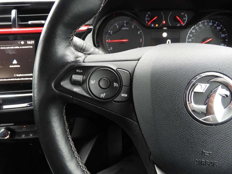 Auto tele unit 3S vehicle communication system, Central facia display with digital clock, outside air temperature and audio information, Cruise control with speed limiter, Driver drowsiness alert system, Electric power steering, Engine oil life indicator, Frequencies rating 433 MHZ, Front camera system, Front pedestrian detection BASIS, Infotainment remote controls right side of steering wheel, telephone buttons on left side, Instrumentation - Speedometer, rev counter, low fuel gauge warning light + water temperature gauge warning light, shift up/down indicate light, Lane departure warning with lane assist, Lights on audible warning, Multi function trip computer - Trip odometer, vehicle range, average speed and fuel economy, instantaneous fuel economy and driving time, Multimedia infotainment systems with 7" touchscreen, DAB/AM/FM radio, USB/iPod, Bluetooth, Apple carplay/Android auto, Rear parking distance sensors, Service indicator, Speed sensitive power steering, Speed sign recognition, Sports switch, Vauxhall connect box, Chassis equipment front strut assembly, Chassis equipment rear axle compound crank, Electronic returnless fuel system, Petrol Particulate Filter, Ride and handling manual electronic controlled, Standard chassis suspension system ride handling, Under body shield for aero, Six speakers, Steering wheel audio, phone and cruise controls, A pillar in black, Active aeroshutter, Auto headlamps (on/off), Black window side moulding, Body colour door handles, Body colour front and rear bumpers, Bonnet/headlight/wiper structure, Centre rear brake lights, Chrome effect tailpipe extension, Chrome logo bar, Dark tinted rear side windows + tailgate window, Electrical adjustment, manual folding and heated outside rear view mirror, Electrically operated front and rear windows, Glazed tailgate and heated rear window with wash/wipe facility, Hazard warning lights, Headlamps for left side traffic, High beam assist, High gloss black finish B pillar and roof spoiler, Inside rear view mirror tiltable day/night folder, Integrated rear roof spoiler level 2 ECO, LED daytime running lights, LED front fog lamps, LED Headlights, Manual headlamp level control, Rear fog lamp, Rear reversing lights, Roof antenna short rod, Solar heat absorbing windscreen and windows, Sports front and rear body styling for upper and lower bumper design, Tailgate spoiler, Two speed windscreen wipers with variable intermittent wipe, Uplevel LED tail lamp, Variable delay windshield pulse wiper system, Windscreen and side window demist vents, 12V power sockets, 2 layer paint IP insert signature wings, 2 way adjustment front driver and co-driver passive headrest, 3 spoke flat bottom leather steering wheel with silver painted bezel + IRC, 4 speed fan with illuminated controls, 4 way manual co-driver fore/aft seat with reclining seatback, 6 way manual fore/aft, up/down with reclining driver seatback, 60/40 split folding rear seat, Air conditioning with air recirculation facility, Alloy sports pedals, Banda marvel cloth upholstery, Base middle console, Cabin particulate filter - removes dust, airborne particles and pollen, Chrome inside door handles, Courtesy lights with map reading light, Dark black headliner, Flat bottomed leather steering wheel, Four adjustable facia vents, Front cupholder, Front driver and co-driver side articulated grab handles, Front passenger side provision for child restraint, Height adjustable head restraints, Illuminated glovebox with lid, Illuminated load compartment trunk, Legroom rear heater, Liquid palladium cloth inserts on door trim, Luggage compartment lighting, Mistral fabric side bolsters and surrounds, Polyurethane gear knob/lever, Rake and telescope adjustable steering column, Rear cupholder, Refrigerant low GWP, Right hand drive (RHD), Signal red and dark titanium seat stitching, Single dome lamp with dual front reading lamps, Sports style front seats, Sunshades with vanity mirror on driver and passenger side, Two litre open door pockets, 3 rear 3 point seatbelts, Anti-lock braking system (ABS), Auto city emergency braking, Cornering brake control, Deactivation switch for front passenger's airbag, Drag torque control, Driver airbag, EBD - Electronic brakeforce distribution, Electrical child lock system in rear door latch, Electronic Stability Programme (ESP), Emergency brake assist, Forward collision alert, Front seat side impact airbags, Front seatbelt unfastened audible warning and warning light, Full size curtain airbags, Hill hold and start system, ISOFIX child seat mountings incorporating top tether anchor points located on second row rear seats, Manual parking brake, Passenger airbag, Single tone horn, Traction control, Tyre deflation detection system, Tyre pressure monitoring system, 2 keys one folding with integral remote, Engine deadlock and immobiliser, Keyless entry and start, Locking wheel nuts, Remote control central locking, Remote control security alarm system, Remote locking fuel filler flap, Steering lock, Liquid palladium facia with hot red accents, 16" Hurrican design-2, 4 double spoke silver alloy wheels,