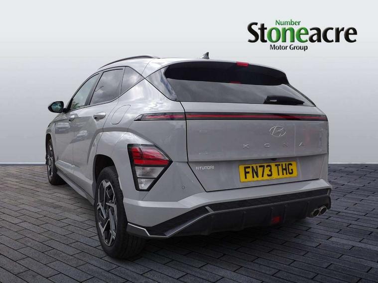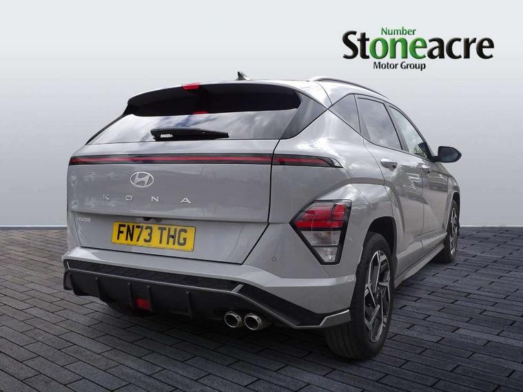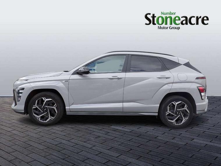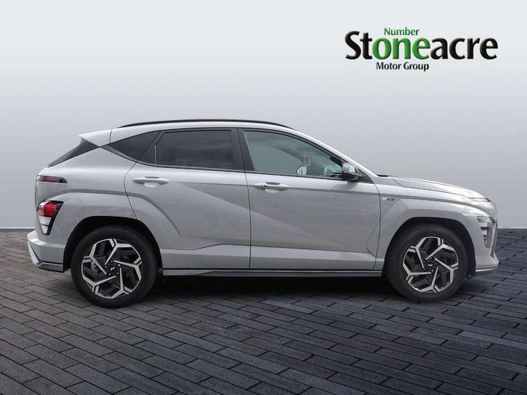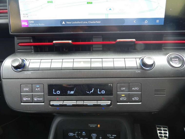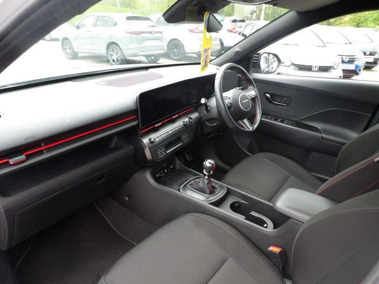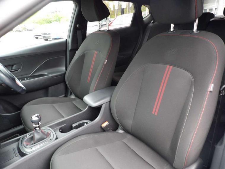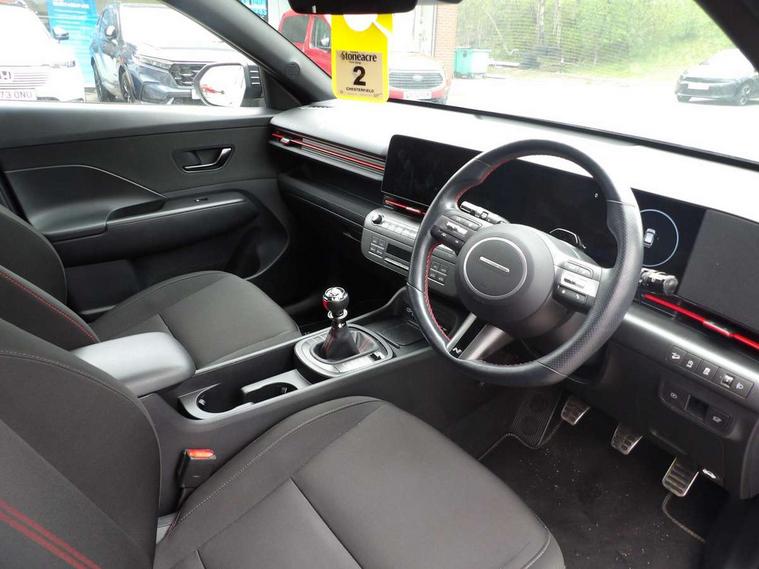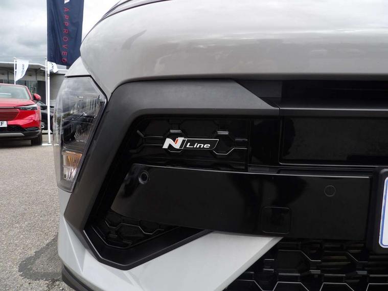 12.3" touchscreen centre console display satellite navigation with bluelink, live services and mapcare, Bluetooth connectivity with voice recognition, Cruise control, Digital clock, Driver status monitor (DSM), Driver supervision instrument cluster with 12.3" LCD display, eCall emergency call system, Feature on demand - Enabled, Forward collision avoidance assist (FCA 1.5) - Car, pededstrian, cycle and junction turning, Front parking sensor, Height adjustable power tailgate, Intelligent speed limit assist, Lane follow assist, Lane keep assist, Leading vehicle departure alert (LVDA), Parking system with rear camera and guidance system, PAS, Rear parking sensor, Roadside assistance, Smartphone integration compatible with Apple CarPlay and Android Auto, Windscreen washer fluid sensor and warning indicator, Wireless phone charging pad, 2 front USB C and 2 rear USB C charging points, DAB Digital radio, Speakers - Front, rear and tweeters, Steering wheel audio, phone and cruise controls, Auto dimming rear view mirror, Automatic headlights with dusk sensor, Automatic windscreen wipers with rain sensor, Body colour bumpers, Body colour exterior door handles, Body coloured wheel arch inserts, Door mirror LED indicator lights, Electric front windows with anti-trap mechanism and one touch control, Electric rear windows, Electrically adjustable and heated door mirrors, Full LED MFR headlights, Gloss black door mirrors, LED daytime running lights, LED upper and lower rear lights, Power folding door mirrors, Privacy glass - Rear windows and tailgate, Rear roof spoiler with integrated LED brake light, Rear side wing doors, Rear wiper, Roof rails, Solar glass with front door glass and windscreen, Tinted glass in front and rear doors, Windscreen auto defog function, 12V power outlet in front console, 2 zone climate control, 3 seat bench in 2nd row, 40/20/40 split folding rear seat, Adjustable head restraints, Aluminium pedals, Ambient lighting, Driver and passenger front seat pockets, Driver's seat lumbar support, Driver/passenger manual seat height adjustment, Driver/passenger sunvisors and illuminated vanity mirrors, Floor mats, Heated front seats, Heated rear seats, Heated steering wheel, Height/reach adjustable steering column, Isofix rear child seat fastenings, Leather wrapped steering wheel and gear knob, LED centre interior light, LED front interior light, Luggage compartment LED lighting, Luggage shelf, Metal paint effect interior door handles, N Line cloth upholstery, Parcel shelf, Rear centre armrest, Rear centre console with air vents, Single front passenger seat, Vertical adjustment rear head restraints, N Line exterior design pack - Kona, Trailer wiring package - Kona, Airbag - front, front side, curtain and centre front airbag, Anti-lock brake system (ABS), Childproof rear door locks, Downhill brake control, EBD + Brake Assist, Electric parking brake, Electronic stability control, Fasten seatbelt reminder, Fixed 3 point for second row centre passenger seatbelt, Front seatbelt pretensioners, Height adjustable front seatbelts, Hill start assist control (HAC), Passenger airbag deactivate switch, Rear seat alert, Traction control, Tyre pressure monitoring system, Alarm/immobiliser, Deadlocks, Folding key, Locking wheel nuts, Remote central locking, Smart key with keyless entry and engine start/stop button, Five year annual vehicle health checks, Temporary mobility kit (TMK),