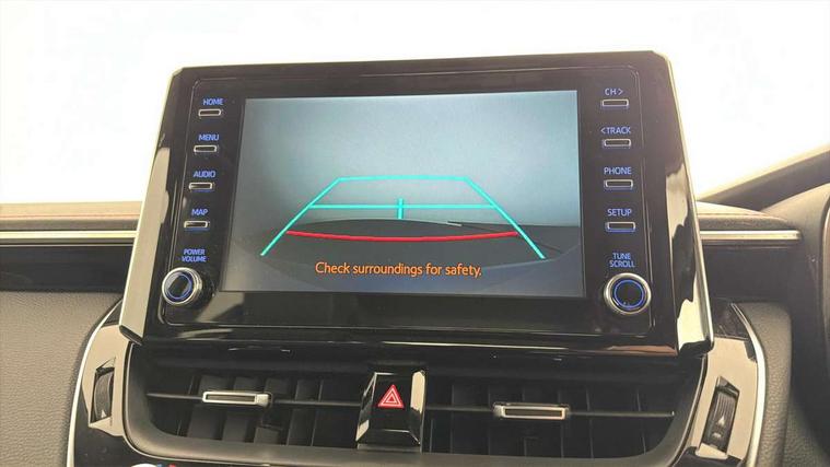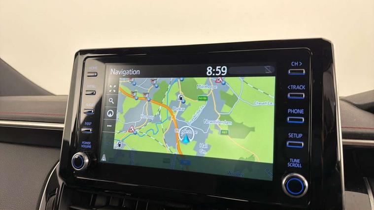 Bluetooth telephone connectivity, E-call, Electrically assisted power steering, Intelligent park assist, Push button start, Reversing camera, Smartphone integration with Apple CarPlay and Android auto, Speed limiter, Voice activation, Vehicle Stability Control (VSC), 2 ring combimeters with 7" colour TFT screen, 6 speakers, 8" multimedia and back monitor, AM/FM radio, DAB Digital radio, Toyota touch 2 with go navigation system, USB and Aux in connectors + 12V front outlet, Anti-jam protection on power windows, Auto dimming inside rear view mirror, Auto up and down function on all power windows, Automatic folding mirrors, Automatic headlights, Automatic wipers, Bi-LED headlights with LED lightguide, Body coloured bumpers, LED daytime running lights, LED front fog lights, LED rear combi lights with LED lightguide, Power adjustable heated door mirrors, Power front windows, Power rear windows, Privacy glass, Rain sensing wipers, Rear window wiper, Reverse tilting door mirrors, Shark fin antenna, 3 rear headrests, 3 spoke leather steering wheel + gear knob, Clean air filter, Dual zone automatic air conditioning with ECO mode switch, Front head restraints, Full leather upholstery, Heated seats, Interior illumination, ISOFIX seat fixing (2 fixings on rear outer seats), Pollen filter, Power lumbar support, Sports seats, Steering wheel switches, Tilt/telescopic steering column, Whiplash Injury Lessening (WIL) feature (active headrest) for seats, Parking pack - Corolla, Toyota safety sense 2 pack - Corolla, 3x3 point rear seatbelts, Adjustable front driver seat belt extender, Anti lock braking system + Electronic brake force distribution, Brake assist function, Electronic parking brake, Front passenger airbag on/off switch, Front seatbelt reminder, HAC - Hill start assist control, Rear seat belt reminder, Seatbelt pretensioners and force limiters, Supplemental restraint system (SRS) 7 airbags - dual driver, dual side curtain, side impact and driver knee airbags, Traction control, Tyre pressure warning system, Alarm/immobiliser, Remote central locking + deadlocks, Smart entry, Tyre repair kit,