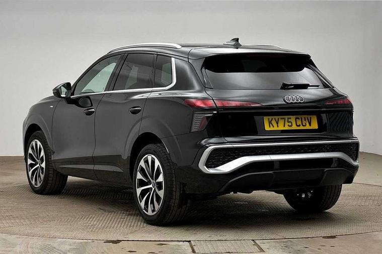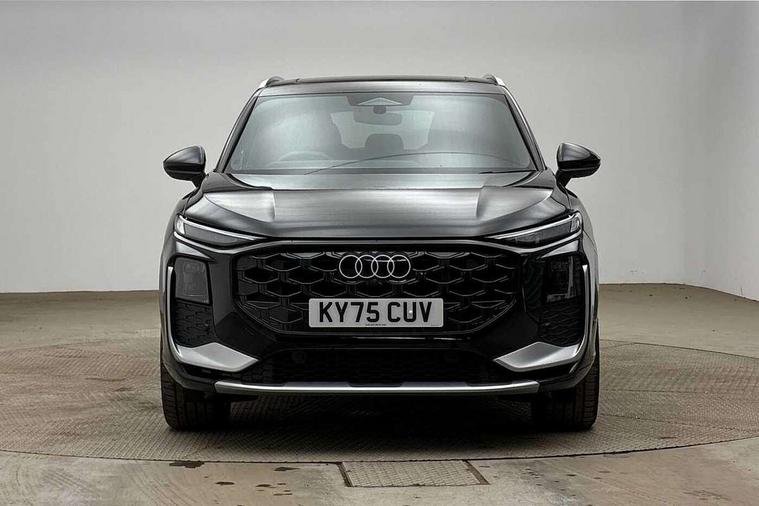 Adaptive cruise control, Audi connect emergency call and service, Audi connect remote and controls, Audi drive select (Balanced/Individual, effeciency, comfort and dynamic), Audi virtual cockpit plus - 11.9" display, Bluetooth interface, Camera based traffic sign recognition, Driver attention and fatigue monitor with driver monitoring, Front cross traffic assist, Lane departure warning with emergency assist, Panoramic curved display with 12.8" MMI navigation plus and MMI touch, Park assist plus with parking system and 360 display, Phonebox light with wireless charging, Reversing camera, Smartphone interface includes wireless Apple carplay/Android Auto, Start/stop system, Swerve assist and turn assist, Traffic sign based speed limiter, Voice control system with natural language interaction, Comfort suspension, Petrol Particulate Filter, 2 USB-C ports with charge and data functions, Audi sound system with 10 loudspeakers, subwoofer, 8 channel amplifier with 260 watts, DAB digital radio module, Acoustic glass for front door windows, Acoustic windscreen, Aluminium roof rails, Aluminium window trim, Audi Q3 lettering on the B-pillars, Auto dimming door mirrors, Auto dimming rear view mirror, Body colour door mirrors, Contrasting finish in volcano grey, Electrically folding, adjustable and heated door mirrors with integrated LED side indicators and kerb view function for passenger side, Full paint finish, Illuminated door sills with aluminium inserts at the front with S logo, LED daytime running lights, LED headlights plus with LED rear lights pro with continous light strip, illuminated Audi rings, rear, LED third brake light, Loading sill protector in stainless steel, Main beam assist, Privacy glass - dark tinted rear window, rear door and side windows, Projection light in the exterior mirrors - Projects a graphic element onto the ground, Q3 badging on the rear, Rain and light sensors, Rear side wing doors, Rear window, rear door windows and rear side windows in clear glass, Rear wiper, Sports bumpers, 3 seat bench in 2nd row, 3 spoke flat top and bottomed leather multi function sport steering wheel with gear shift paddles and "S" badging, 3-zone deluxe automatic air conditioning, 4 way lumbar support for the front seats - electric with horizontal and vertical adjustment in four directions, Black cloth headlining, Front and rear floor mats, Front and rear headrests, Front centre armrest, Heated front seats, Height and reach adjustable steering wheel, Interior storage compartment, Leather/artificial leather upholstery combination with S emblem + front sports seats, Luggage compartment lid, electrically opening and closing, Manual front seats with height adjustment, Rear seat bench plus with split folded 40:20:40, Single front passenger seat, Stainless steel pedals, Steering wheel operating unit, gloss black, Storage compartment in front centre console, Ambient lighting package pro - Q3, S line exterior styling pack - Q3, 3x3 point rear seatbelts, Convenience key with safelock, Driver and front passenger airbag with passenger airbag deactivation, Electromechanical parking brake, Electronic stabilisation control including ABS, ASR and EDL, First aid kit with warning triangle and high visibility vests, Front emergency brake assist, Hill hold assist, i - Size child seat mounting on the front passenger side and i - Size and top tether on the outer rear seats, Power operated child locks, Seatbelt monitoring, Three point automatic belts with belt tensioner and height adjustment, Tyre pressure loss indicator, Anti theft wheel bolts, Remote central locking, Thatcham approved category 1 anti theft alarm, Dark aluminium divergence inlay, Interior elements in dinamica microfibre, Interior trims in aluminium look, Tool kit and Jack,