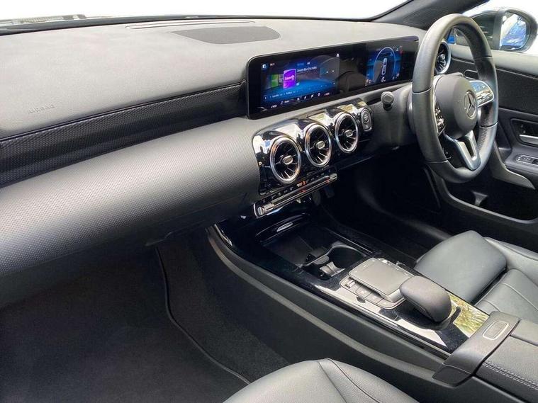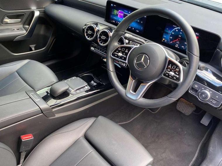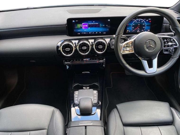 10.25" media display, 180 degree rear view camera with parking guidelines, 7" colour screen in instrument panel, Active parking assist with visual and audible warning of detected obstacles, Attention assist, Brake pad wear indicator warning light, Car wash mode, Cruise control + speed limiter, Direct steering, Dual bluetooth interfaces, DYNAMIC SELECT with a choice of driving modes (ECO, Comfort, Sport and Individual), ECO start/stop function, Fluid level warning indicator for fuel, oil, coolant and washer fluid, Hard-disk navigation, Hey Mercedes Voice activation, Lamp failure indicator, Lane keeping system, Mercedes me connect including emergency call system, accident recovery, breakdown and maintenance management, Mercedes me remote services, Outside temperature gauge, Owners manual in English, Pre-installation for private car sharing, Preinstallation for Mercedes Benz link, Service indicator (ASSYST), Smartphone integration with Apple CarPlay and Android auto, Speed limit assist, Speed sensitive power steering, Trip computer, Ultrasonic sensors positioned in the front and rear bumpers, Lowered comfort suspension, Rear axle torsion beam, 2 USB ports (type C) in rear stowage compartment and one in front of center console, 6 speakers, DAB Digital radio, MBUX multimedia system with DAB digital radio and touchpad including satellite navigation, Mercedes-Benz sound system - 100W, 4 Electric Front and Rear windows, Adaptive brake lights, Automatic headlights, Black weather strip, Body colour bumpers, Body colour door handles with chrome inserts, Body colour side skirt, Body coloured door mirrors, Chrome beltline trim, Diamond radiator grille with black pins with one louvre in silver + chrome insert, Electric adjustable and heated door mirrors with integrated LED side indicators, Exhaust system - Twin visible tailpipes in polished stainless steel, Headlamp assist automatic headlamp activation, Heated glass rear windscreen + timer control, LED high performance headlamps with integrated LED daytime running lights, LED tail lamp, Privacy glass, Radio aerial, Rain sensing windscreen wipers with two sensitivity settings, Rear boot, Rear fog lights, Rear side wing doors, Third brake light featuring LED technology, Window line trim strip in chrome, 3 seat bench in 2nd row, 3 Spoke leather multi function steering wheel, 40:20:40 split folding rear seats, Artico man-made leather upholstery, Auto Mercedes-Benz child seat recognition sensor, Black air vents with surround in silver chrome, Black roof lining, Controller on centre console with chrome surround, Front centre armrest with storage compartment, Front comfort seats with adjustable head restraints, Front door sills with Mercedes Benz lettering, Front seat backs luggage nets, Gearshift paddles on steering wheel, Heated front seats, Height/reach adjustable steering column, Interior mirror with reading lamps in black and frameless, Manual height adjustable front seats, Rear head restraints, Seat occupancy sensor for front passenger seat, Single front passenger seat, Stowage compartment in centre console with retractable cover, Sunvisors with illuminated vanity mirrors, Touchpad on center console, Twin front cupholders, Two zone thermotronic luxury automatic climate control, Velour floor mats, Light and sight pack - A Class, Mirror package - A Class, Seat comfort pack - A Class, 3 rear 3 point seatbelts, ABS with Brake Assist, Active bonnet, Active brake assist includes forward collision warning system with autonomous braking, Adaptive brake assist with hold function and hill start assist, Childproof locks manually operated for rear doors and electrically operated for rear power windows, Crash responsive emergency lighting, Driver and passenger head and side airbags, Drivers knee airbag, Dual stage driver/passenger airbags, Electronic parking brake, ESP curve dynamic assist, ESP with ASR, Front and rear seatbelt reminder, ISOFIX and top tether child seat fixing points in two outer rear seats, Tyre pressure monitoring system, Warning triangle and first aid kit, Window airbags, Alarm system/interior protection/immobiliser, Keyless Go, Remote central locking and crash sensor with emergency opening function, Urban guard vehicle protection system with immobiliser and interior protection, Black seatbelts, Dark carbon fibre interior trim, 18" Multi spoke light alloy wheels painted in himalayas grey with high sheen finish, Summer tyres, Tirefit sealant kit,