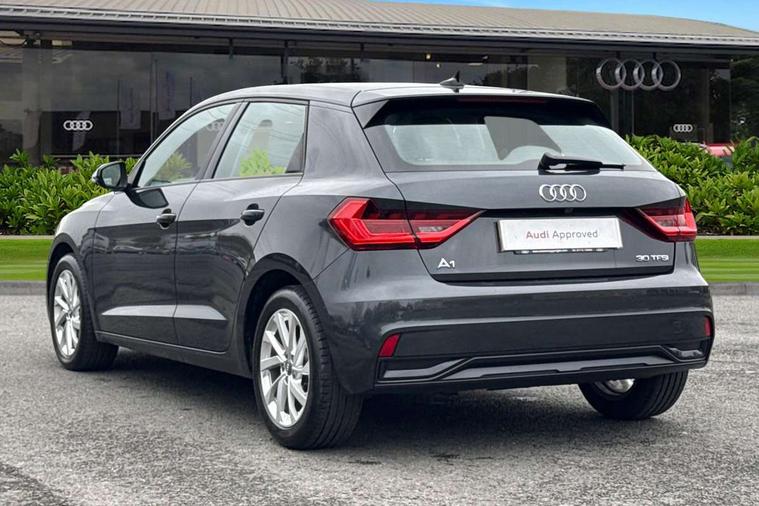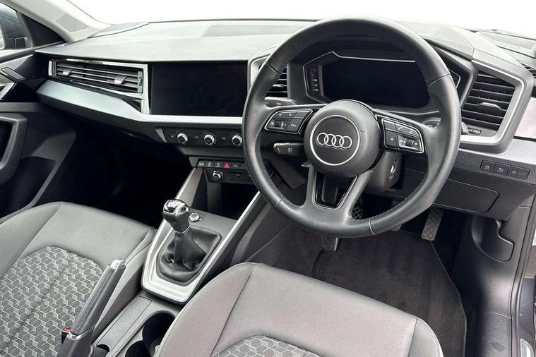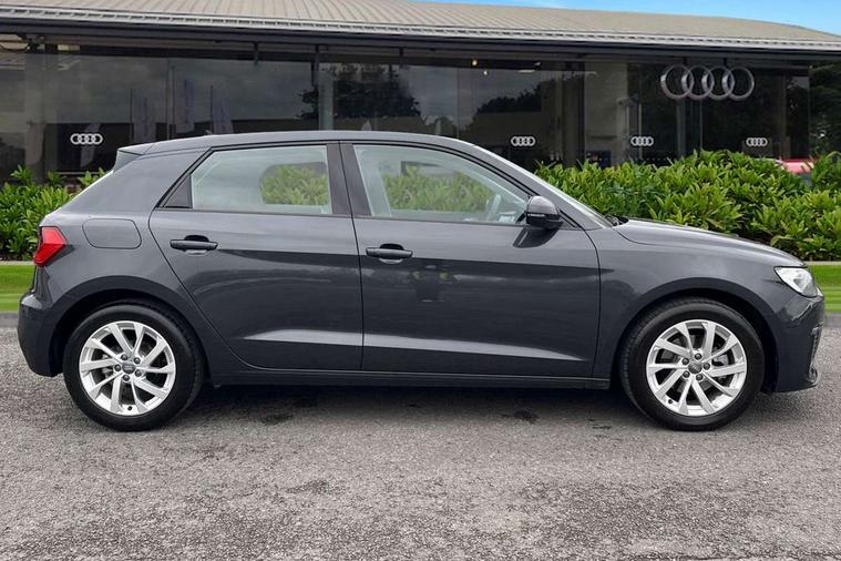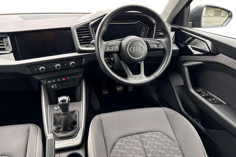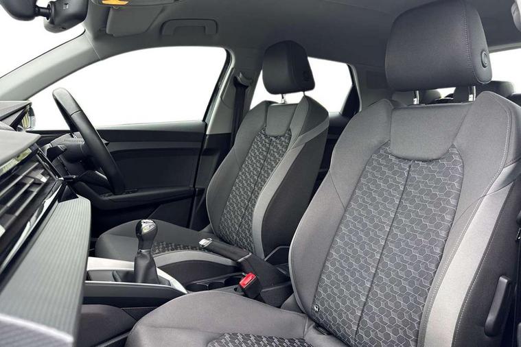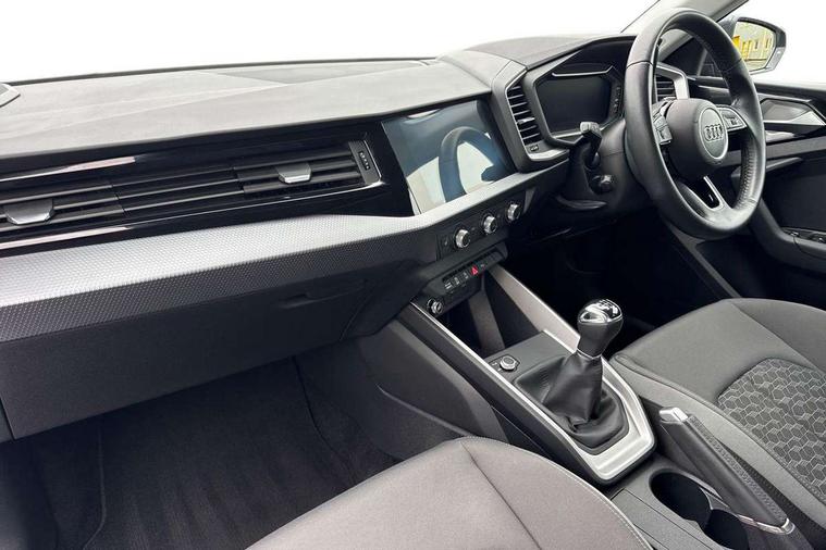 10.25" Digital instrument cluster display classis style instrument dials + speed, odometer, time, outside temperature, telephone menu + fuel level warning, Audi connect safety emergency and service including E-call, Audi drive select - power steering assistance + engine, Audi smartphone interface with connect compatible smartphone via USB directly MMI display + Nav, music, third party apps controlled via MMI controller, Automatic start/stop system, Bluetooth interface, Cruise control, Driver's information system, Electromechanical power steering, Lane departure warning system, Rear parking sensor, Service interval indicator, Speed limiter, Voice control system, Washer fluid level indicator, Dynamic suspension, 1 x SDXC card reader, 1 x USB type C and 1 USB type A charging points, DAB Digital radio, MMI radio plus with 8.8" colour MMI display screen and MMI touch, Auto dimming rear view mirror, Body coloured bumpers, Body coloured door mirrors, Electric front and rear windows, Electrically adjustable, heated, folding door mirrors with integrated LED side indicator, Front side air inlets in grained matt black and C frame in titanium black, Heat insulating glass windscreen and side windows, Heated rear windscreen, LED headlights with LED rear lights + dynamic rear indicators + headlight adjustment and high beam, turning light + LED daytime running lights, Radiator grille and rear diffuser in matt titanium black, Radiator protective grille frame in matt aluminium silver, Rain and light sensors, Rear fog lights, Rear wiper, Scandium grey tailpipe trim, Side front spoiler lips in grained matt black, 12V socket in centre console with two cup holders, 3 rear seats with headrests, 40:60 Split folding rear seat or folded fully, Door sill trims with aluminium inlay, Driver and passenger seat with manual height adjust with forward and backwards adjustment, Front head restraints, Front/rear floor mats, Height and reach adjustable steering wheel, ISOFIX child seat mounting for front passenger and outer rear seats including top tether attachment point of outer rear seats, Leather gear knob with aluminium trim, Leatherette handbrake grip, Luggage compartment light with front and rear reading lights, Manually adjustable lumbar support in front seats, Novum cloth upholstery with front sport seats, Titanium grey cloth headlining, Luggage compartment pack - A1, 3x3 point rear seatbelts, Audi pre-sense front with pedestrain and cyclist recognition, Brake assist function, Driver and front passenger airbag with front side and head airbags, Electronic Stability Control including ABS, EBD, ASR and EDL, Front and rear seatbelt reminder, Front passenger airbag deactivation switch, Hill hold assist, Seatbelt height adjustment for front seats, Seatbelt monitoring, Tyre pressure warning light, Warning triangle and first aid kit, Anti theft alarm, Anti theft wheel bolts and loose wheel warning, Immobiliser, Remote central locking with 2 foldaway keys, Aluminium trim for control switches, air vents and digital instrument cluster, Silver grey accent areas including air vents, door handle recesses and centre console in diamond paint finish, Slate grey inlays polygon structure in fine paint finish,