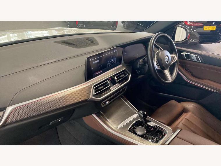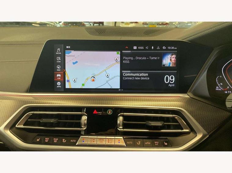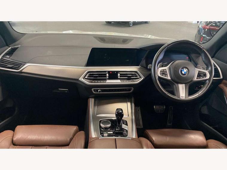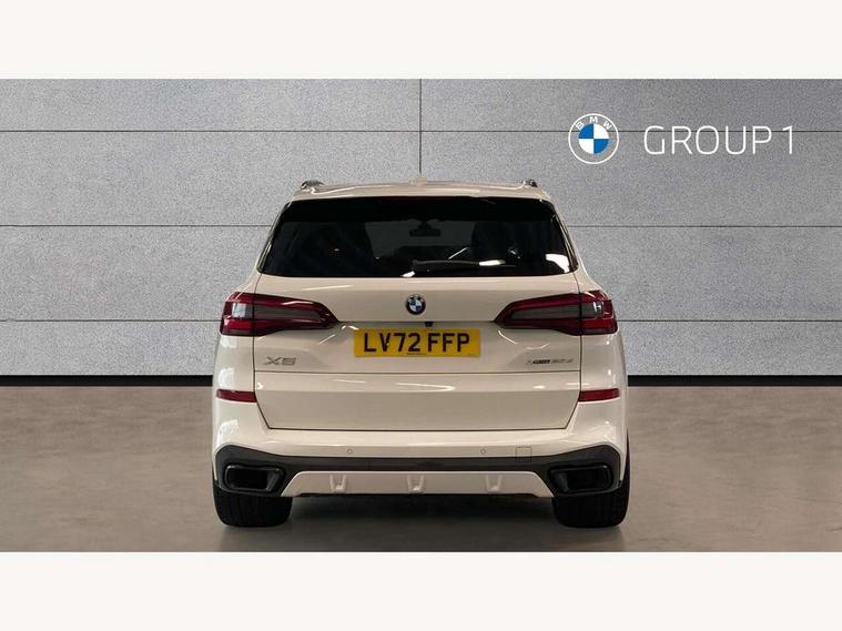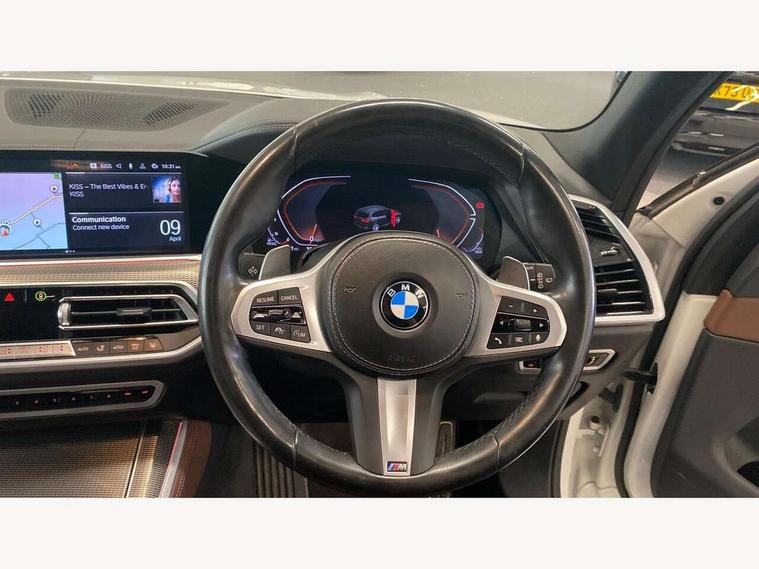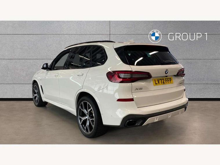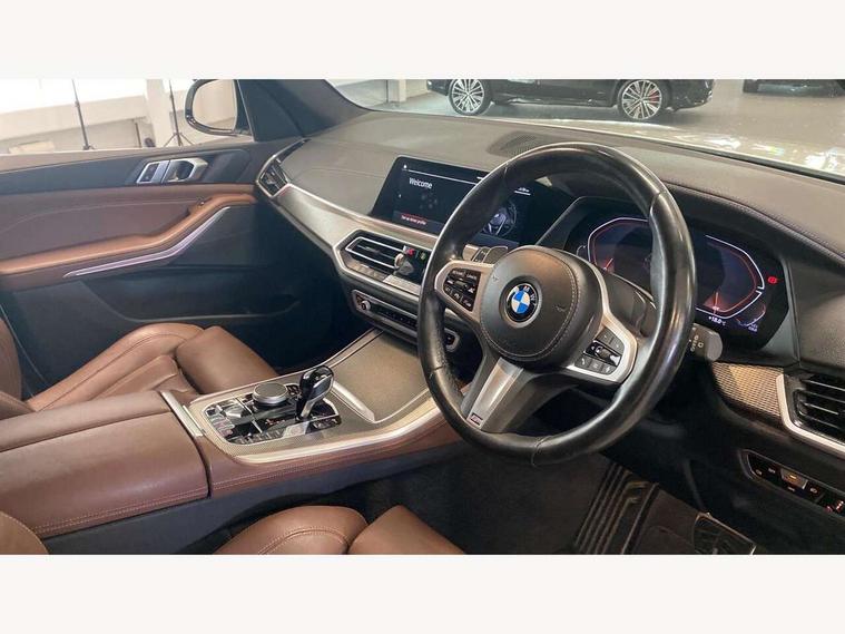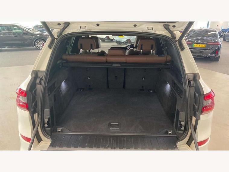 20GB hard disc drive (HDD) memory, Active guard plus, Attentiveness assist, Automatic tailgate with top hinged section open and manual bottom hinged section, BMW ConnectedDrive online services, BMW digital live cockpit professional - 12.3" digital instrument panel and 12.3" CID, with touch/voice command, BMW legal emergency call, BMW Teleservices, Brake force display, Brake pad wear indicator warning light, Cruise control with brake assist, Enhanced bluetooth with wireless charging, Front/rear park distance control, iDrive controller with shortcut buttons, Lights on warning, Oil sensor for level and grade, On board computer inc. average speed, fuel consumption, liquid crystal Info display, journey computer, outside temperature display, personal profile, Service interval indicator, Speed limit info display, Speed limiting function, Wi-Fi hotspot, 48V Mild hybrid technology, Adaptive 2-axle air suspension, Common rail technology, Diesel particulate filter, Double wishbone front axle, Drive performance control with ECO PRO comfort + sport mode, Eight speed steptronic sport automatic transmission and gearshift paddles on the steering wheel, Safety battery terminal clamp, Variable vane geometry, DAB Tuner enables digital radio reception, Favourite buttons, Hi-Fi loudspeaker system, USB connection, USB type A 1.5A in cupholder, USB Type C 3A in centre armrest, Active Air Stream kidney grille with high-gloss chrome, Adaptive air flap control bar in high-gloss black, Automatically dimming rear view mirror, BMW Individual high gloss black shadow line roof rails, BMW Individual high gloss shadow line, Body colour bumpers, Body colour door handles, Dynamic brake lights with LED technology, Exhaust tailpipes - single, left and right with Chrome finisher, Follow me home headlight function, Front and rear electric windows with open and close fingertip control, anti trap facility and comfort closing, Heated windscreen washer jets, High beam assistant, High gloss black outer and central air intakes on front bumper with pearlescent chrome finish, High gloss black Side elements, LED daytime running lights, LED rear lights, M aerodynamic body styling, M designation on left and right front side panels, Pearlescent chrome front grille bars, Rain sensor with automatic headlight activation and windscreen wiper control, Rear side wing doors, Satin aluminium side window graphic, Third brake light in rear spoiler, Variable intermittent rear wash/wipe, Welcome light carpet, X5 on left tailgate, xDrive designation on right tailgate, 12V - Power sockets with 2x centre console and 1x luggage compartment, 3 seat bench in 2nd row, 40:20:40 split folding rear seats, Ambient interior lighting with 6 pre-designed selectable lights including dynamic function, Centre and rear interior light, Child seat ISOFIX attachment with rear outer seats includes top tether, Compartment in front of cupholder, Electric front seat adjustment with driver and front passenger memory function, Electrical steering column with adjustable height and length with activation and control on the steering column, Foldable rear centre armrest with 2 cupholders and storage compartment, Front and rear cupholders x 2, Front and rear door pockets, Front and rear door sill inlays with illuminated BMW M designation, Front and rear side armrest integrated into door trim, Front footwell lights, Front reading lights, Light inside glove compartment, Lockable glove compartment, Luggage compartment floor panel with integral storage tray, Luggage compartment lighting, M leather steering wheel, M specific key, M specific steering wheel, Make-up mirror lights, Multifunction controls for leather steering wheel, Multifunctional hooks, Rear head restraints, Seat back with flap pocket, Securing rings in luggage compartment, Single front passenger seat, Storage bins on all doors, Storage tray and compartment with cover in centre console, Sunvisors with illuminated vanity mirrors, Toolkit located in luggage compartment, Velour floormats, Connected Package Professional - X5, Expanded exterior mirror pack - X5/X5 M, Non-smokers pack - X5, Airbags - driver/front passenger, rear and side, first and second row seats head airbags, front passenger seat airbag deactivation + knee airbag, Anti-lock braking system (ABS), Automatic Stability Control (ASC), Brake drying, Brake energy regeneration, Brake fade compensation, Braking pre-tensioning, Cornering brake control (CBC), Crash sensor activating central locking release, hazard warning lights, fuel cut off, interior lighting + activation of safety battery terminal clamp, Deformation zones - front and rear with door reinforcements and bumpers up to 2.5 mph, DSC - Dynamic Stability Control, Dynamic brake control, Dynamic Traction Control - DTC, Electromechanical parking brake with automatic drive away release and auto hold function, Electronic brake force distribution, Front and rear seatbelts with seatbelt stopper, seatbelt tensioner for front and outer rear seats and belt force limiter, Front head restraints with anti-whiplash, Height adjustable front seatbelts, Hill start assistant, Integrated brake system, M Sport braking system in blue high gloss + blue painted brake calipers with M designation, Mechanical child proof lock on rear doors, Passive protection for pedestrians, Seat occupancy detection for driver and passenger side, Side impact protection, Three 3 point inertia reel seatbelts, Two tone horn, Tyre pressure monitoring system, Ventilated front and rear disc brakes, Warning triangle and first aid kit, Closing system with central locking, Driver and front passenger door centre lock switch, Locking wheel bolts, Thatcham 1 alarm system with remote control and engine immobiliser, Start/stop toggle diamond shaped trim finisher in pearl chrome,