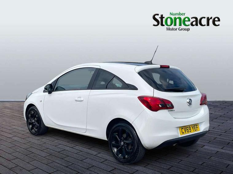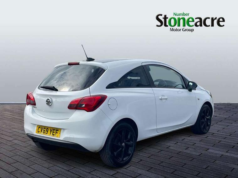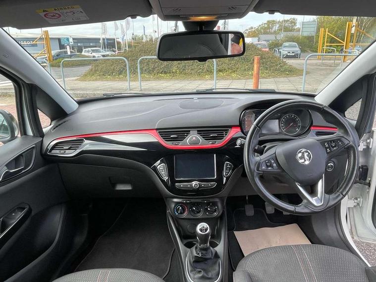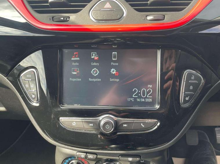 Apple car play/Android Auto, Bluetooth system, Central facia display, Cruise control + speed limiter, Digital fuel gauge with low fuel warning light, Digital water temperature gauge, Electric speed sensitive power steering, Exterior temperature gauge, Lights on audible warning, Navi 4.0 IntelliLink navigation with 7" touchscreen, traffic program, DAB , USB, Bluetooth audio streaming, Apple CarPlay/Android auto, and microphone, Rev counter, Service indicator, Speed warning indicator, Speedometer, Start/stop system, Trip computer, White graphics on black background, Front anti roll bar, Sports suspension, Six speakers, Steering wheel mounted audio/cruise controls, Automatically dimming anti dazzle rear view mirror, Black door mirrors, Black foil on B-pillars, Black front grille logo bar, Black roof, Body colour bumpers, Body colour door handles, Chrome front grille, Dark tinted rear windows, Dipping rear view mirror, Door to door illumination, Electric adjustable/manual folding door mirrors (wide angle on driver's side), Electric headlight beam leveling, Electrically operated front windows with safety auto reverse/one touch facility, Front fog lights with black surround, Front fog lights with chrome surrounds, Griffin badges, Halogen headlights, Hazard warning lamps, Headlamp levelling, Heated rear window, Heated windscreen, High level LED centre brake light, Intermittent rear wash/wipe, Laminated windscreen, LED daytime running lights, Mineral black door mirror housings, Rain sensitive windscreen wipers, Rear fog lights, Rear wiper, Side window demist vents, Tinted windows, Two speed windscreen wipers with variable intermittent wipe, Welcome lighting, Windscreen demist vents, 12V electrical accessory socket in front, 3 spoke steering wheel, Air conditioning, Anti submarining ramps in all seats, Centre console with cupholders, Chrome gear knob, Chrome interior door handles, Comfort front seats, Driver's and front passenger's sunvisors, Driver's and front passenger's tiltable assist handles, Driver's and passenger's vanity mirrors with flip up cover, Driver's vanity mirror, Four adjustable facia vents, Front courtesy lights, Front door pockets, Front map reading lights, Front seat belt pre-tensioners with load limiters, Glovebox with lid, Grab handles, Griffin branded floor mats, Heated front seats, Height adjustable driver's seat, Height adjustable front headrests, Height adjustable rear head restraints with adjustable backrest, Illuminated luggage compartment, Instrument panel light dimmer, Interior tailgate handles, Isofix child seat mounting points on outer rear seats, Lace cloth trim, Load restraining lashing points, Luggage compartment cover, Multi function steering wheel, One piece folding rear seat, Pollen filter, Reach + rake adjustable steering column, Rear bottle holder, Rear courtesy lights, Rear reading lights, Reclining front seats, Sports front seats, Storage box on driver's side lower facia, Stowage facility for luggage compartment cover behind rear seats, Twin gas assisted tailgate struts, Two rear tiltable passenger assist handles, Sight and light Pack - Corsa, Winter pack - Corsa, Anti-lock braking system (ABS), Brake assist function, Electronic brake force distribution, Electronic Stability Programme, Energy absorbing steering column, Front and rear seatbelt reminder, Front and rear seatbelt unfastened audible warning and warning light, Front seatbelt force limiters, Gas pressure dampers, Height adjustable front seatbelts, Hill start assist, Passenger airbag deactivation system, Pedal release system, Rear child proof door locks, Reinforced passenger safety cell, Side impact protection beams, Six airbags - Driver's dual stage airbag/front passenger's dual stage airbag/front seat side impact airbags/full size curtain airbags, Three 3 point rear seatbelts, Three inertia reel lap/diagonal seatbelts, Traction control, Tyre pressure monitoring system, Electronically protected audio, Engine Immobiliser & Deadlocks, Key left in ignition audible warning, Locking wheel bolts, Remote control central locking, Visible vehicle identification number, Rhutenium facia with chrome effect inserts, 16" 4 twin spoke black alloy wheels, Tyre inflation kit,