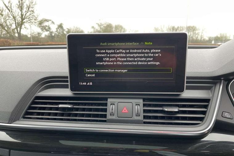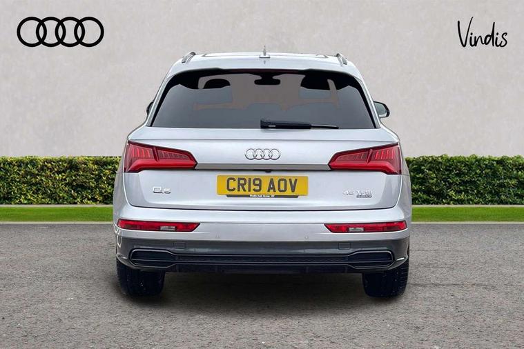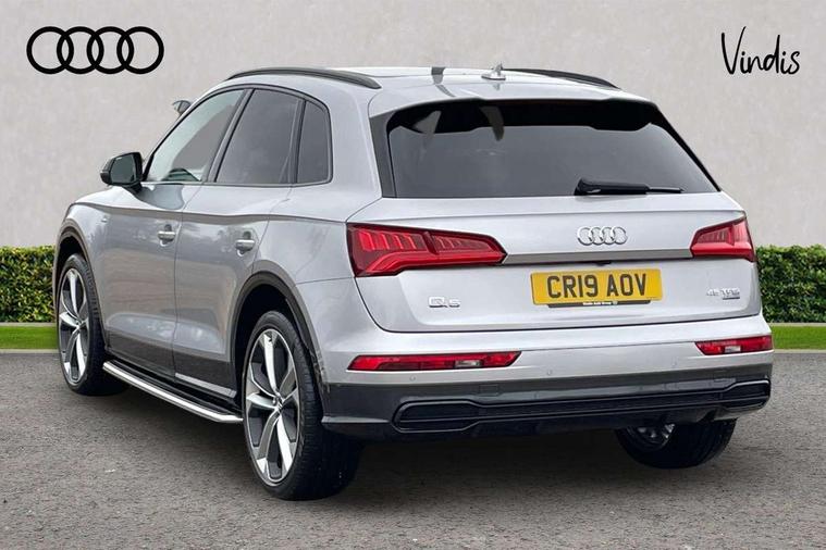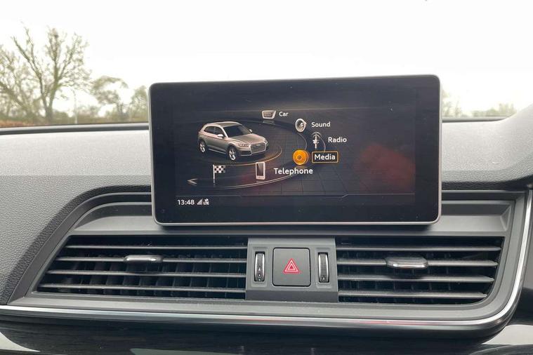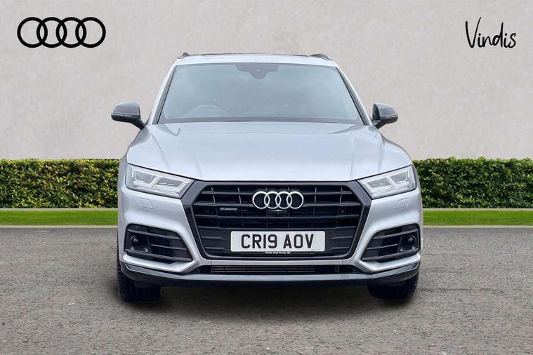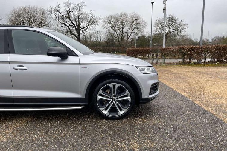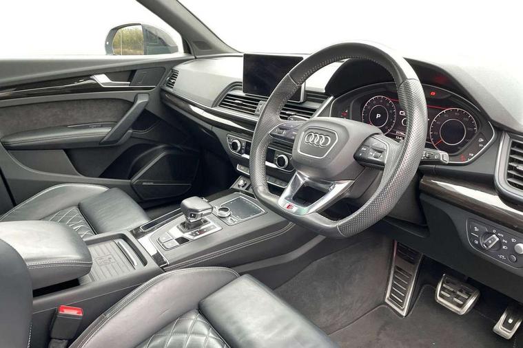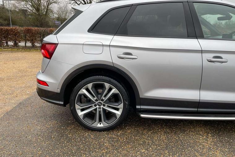 360 degree view camera, Adaptive cruise control with Stop and Go and traffic jam assist, Audi active lane assist, Audi connect infotainment services, Audi connect safety and service (e-call), Audi drive select, Audi phone box with wireless charging, Audi pre-sense front with collision avoidance assist and turn assist, Audi side assist, Audi smartphone interface, Audi virtual cockpit - 12.3" high resolution LCD digital instrument cluster display, Automatic start-stop system with coasting functionality and efficiency programme, Camera based traffic sign recognition, Electro - mechanical power assisted steering, Head up Display, MMI navigation plus with 8.3" colour MMI screen and MMI touch, Mobile telephone preparation - bluetooth interface, Park assist system, Power tailgate, Predictive efficiency assistant, Rear cross traffic assist, Service interval indicator, Voice control system, Adaptive comfort suspension with damping control, Quattro on demand, 2 x USB charging port with aux input socket, 2x SD card slot, CD player, DAB Digital radio, MMI radio plus with 7" colour MMI screen and MMI controller, Acoustic windscreen, Air inlets in matt titanium black with blades in matt aluminium silver, Audi Beam uses LEDs to project the Audi Sport logo, Audi matrix LED headlights with LED rear lights + dynamic front and rear indicators, Auto dimming rear view mirror, Automatic headlight levelling, Black roof rails, Body colour rear diffuser with matt aluminium silver surrounds, Body colour underbody protection, Chrome exhaust tailpipe, Contrast bumpers in Manhattan grey, Electric panoramic glass sunroof, Electrically folding/heated/auto dimming door mirrors with memory function, Front and rear bottom section bumpers in Manhattan grey, Front and rear electric windows, High beam assistant, Light and rain sensor for auto activation of lights and windscreen wipers, Loading sill protector in stainless steel, Privacy glass with front acoustic glazing, Rear wiper, Running boards, Titanium black door mirror housings, 3 rear headrests, 3 spoke flat bottom high multi-function leather steering wheel, 3 zone climate control, 40/20/40 split folding rear seats with rear centre armrest, Black cloth headlining, Contrast stitching on seats, steering wheel and gear lever gaiter, Electric steering wheel adjustment, Electrically adjustable front seats with driver memory, Fine Nappa leather upholstery, Front centre armrest, Front sports seats in fine nappa leather, Front/rear floor mats, Heated front and outer rear seats, Height adjustable front head restraints, ISOFIX child seat mounting and top tether, Luggage compartment carpet, Massage function for front seats, Perforated leather gearknob, Rear seat bench plus, Removable luggage compartment floor, Stainless steel pedals, Sunvisors with vanity mirrors, Trunk roller cover, Comfort and sound pack with reversing camera - Q5, Extended interior upholstery pack - Q5, Extended LED Interior Lighting Pack - Q5, Non Smokers pack, Parking Assistance Pack - Q5, Titanium black styling pack - Q5, Tour pack - Q5, 3 point seatbelts on all seats, 6 airbags - Driver, front passenger, curtain and side airbags, Audi pre sense basic and rear, Electromechanical parking brake, Electronic stabilisation control including ABS, ASR and EDL, Exit warning, Front passenger airbag deactivation, Hill descent control, Hill hold assist, Multi collision brake assist, Pop-up bonnet for pedestrian protection, Pre sense city, Seat belt force limiter, Seatbelt monitoring, Tyre pressure warning, Warning triangle and first aid kit, Anti theft alarm, Anti-theft wheel bolts, Keyless Go access/ignition system, Remote central locking, 21" 5 twin-spoke module design Audi sport alloy wheels with matt grey inlays, Tool kit, Tyre repair kit,