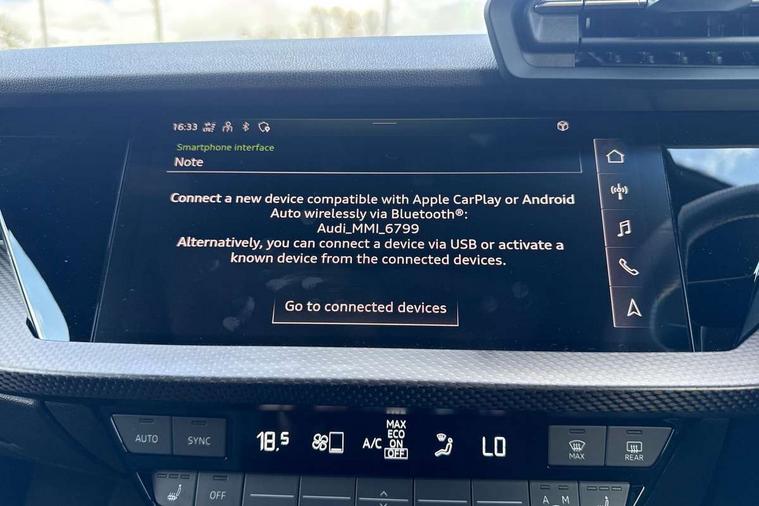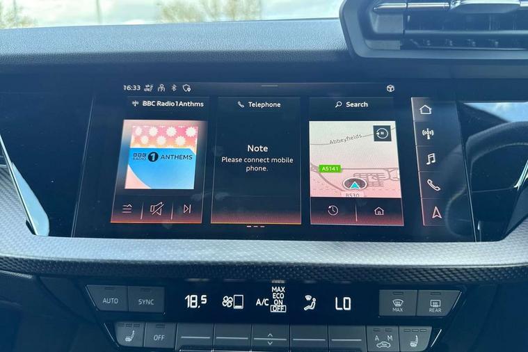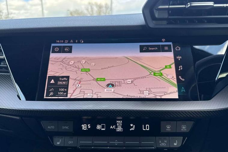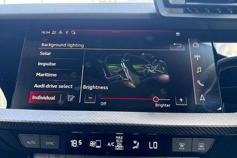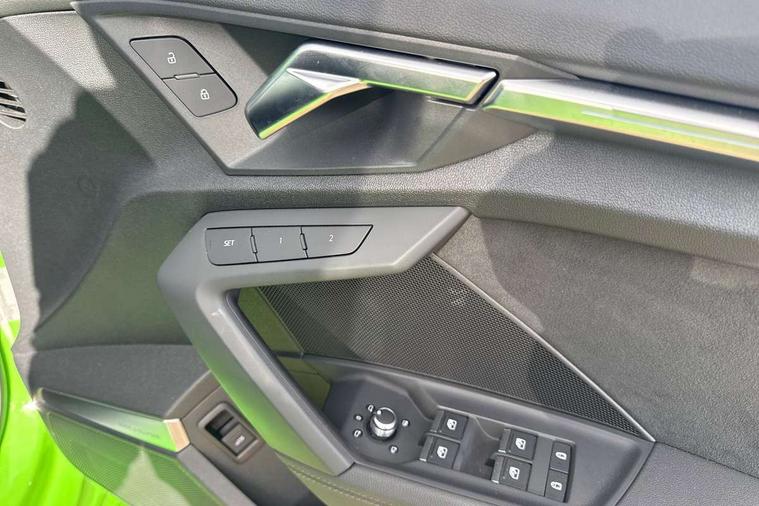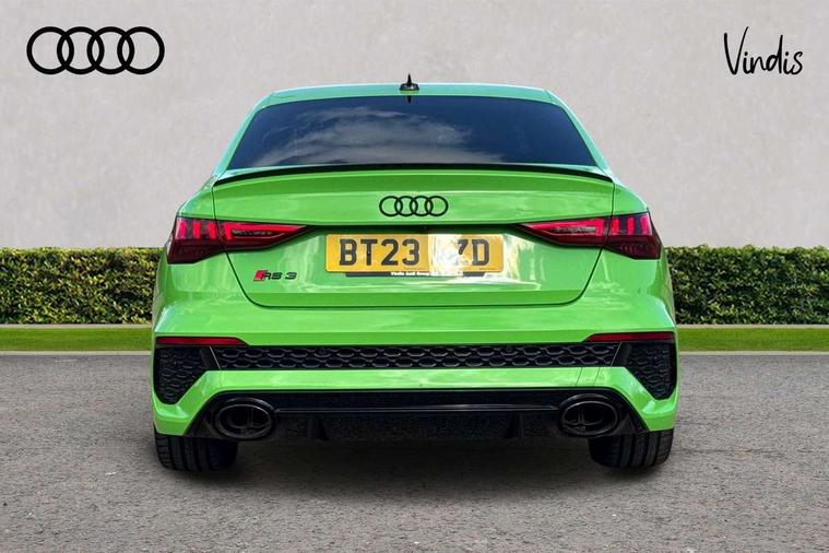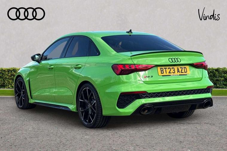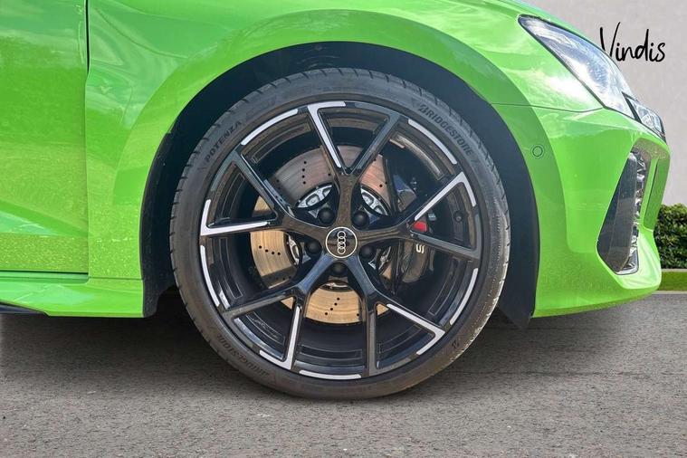 Audi smartphone interface, Audi virtual cockpit with RS specific display 12.3" full colour digital instrument cluster, Automatic start/stop system with recuperation, Bluetooth interface, Collision avoidance assistant, Emergency e-call, Head up Display, Lane departure warning system, Legal emergency call, Parking assist with parking system plus, Power operated tailgate - Luggage compartment lid opens electrically, Progressive power assisted steering, Reversing camera, Quattro permanent four wheel drive, Rear suspension, DAB Digital radio, 3rd brake light, Acoustic glass windscreen, Audi beam uses LEDs to project the Audi sport logo onto the ground as you exit your RS 3, Audi matrix LED headlights, LED rear lights, dynamic front and rear indicators and headlight cleaning system, Auto dimming rear view mirror, Black side skirts, Body colour roof, Carbon fibre engine cover, Electric adj heated/folding + auto dimming exterior mirrors with memory + LED indicator + auto kerb side function for passenger side exterior mirror, Front spoiler in high gloss black, Heat insulating glass windscreen, LED daytime running lights, Light and rain sensors, Panoramic glass sunroof, Privacy glass - dark tinted rear and rear side windows from B-pillar backwards, Rear boot, Rear side wing doors, RS exterior features in gloss black, RS sports exhaust system, 3 seat bench in 2nd row, 3 spoke leather multifunction steering wheel with gear shift paddles, 4 way lumbar support for front seats, 40/20/40 split folding rear seat bench, Black cloth headlining, Dual zone electronic climate control, Electrically adjustable front seats with memory function for driver's side, Front and rear headrests, Front centre armrest, Front sports seats RS embossed logo, Front/rear floor mats, Heated front seats, Honeycomb stitching and RS embossing, Illuminated door sill trims inlays in aluminium with RS 3 logo, RS emblems, Single front passenger seat, Stainless steel pedals and front footrest in black, Aluminium interior elements pack - RS3, Ambient lighting pack - RS3, Comfort and sound pack - RS3, Driver assistance pack with 3 spoke leather multi function steering wheel - RS3, MMI navigation plus with MMI touch - RS3, RS bodystyling - RS3, Storage Pack - RS3, 3x3 point rear seat belts, ABS/EBD, ASR, Audi pre sense front, Driver/Front Passenger airbags, EDL, ESC - Electronic Stability Control + traction control, Front passenger airbag deactivation, Front side airbags with head airbags and interaction airbag, Hill hold assist, Seat belt reminder with passenger presence detection in rear, Tyre pressure loss indicator, Warning triangle and first aid kit, Anti theft alarm, Anti-theft wheel bolts, Electronically operated child lock, Remote control central locking, Full decorative carbon trim, 19" 5 Y spoke black with graphic print alloy wheels, Tool kit, Tyre repair kit,