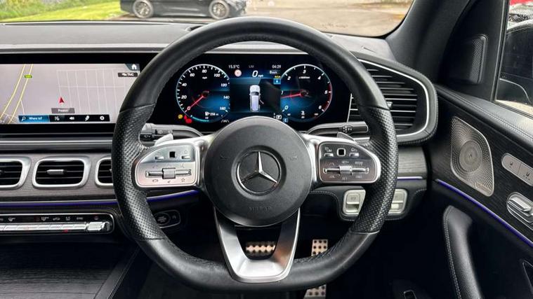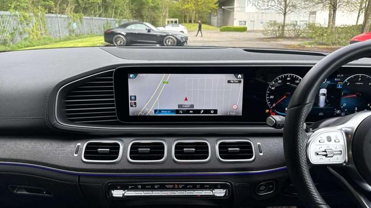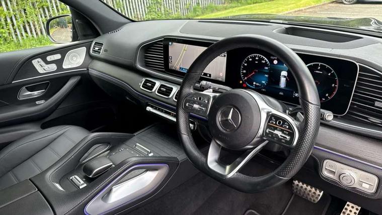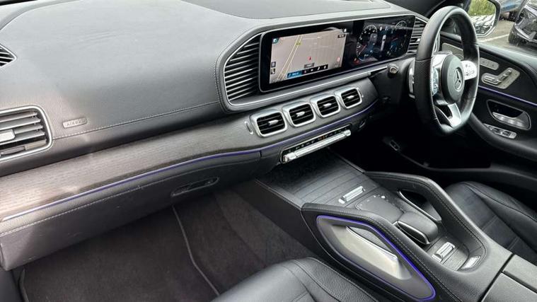 Active parking assist with parktronic and 360 degree camera, Bluetooth connectivity, Crosswind Assist, Direct steering, DYNAMIC SELECT with a choice of driving modes (ECO, Comfort, Sport and Individual), Easy-pack tailgate - Powered opening/closing automatically, ECO start/stop function, Emergency call service, Front wireless charging system for mobile devices, Head up Display, MBUX Interior assistant, Pre-installation for MBUX entertainment, Service indicator (ASSYST), Smartphone integration with Apple CarPlay and Android auto, Soft closing aid for boot/doors, Speedtronic cruise control, 4MATIC permanent four wheel drive, 9G TRONIC automatic transmission with steering column gear selector, DIRECT SELECT steering wheel gearshift paddles, Airmatic air suspension with adaptive damping system + level adjustment, Diesel particulate filter, Fuel tank with increased capacity, 1 data-enabled USB port in the oddments tray, 2 USB ports capable of charging in the 2nd seat row, 2 USB ports capable of charging in the 3rd seat row, 2 USB ports in centre console, Burmester surround sound system, DAB Digital radio, USB-C, Adaptive brake lights, Adaptive high beam assist plus, AMG bodystyling front and rear aprons and side skirts, Black roof rails, Headlamp assist automatic headlamp activation, Heat insulating dark tinted privacy glass from the B-pillar backwards, Illuminated running boards with rubber studs, LED daytime running lights, LED tail lights, LED third brake light, Magic vision control with adaptive heated windscreen wiper system, Multibeam LED, Panoramic sliding sunroof, Rain sensor windscreen wipers, Rear side wing doors, Rear wiper, Tinted glass all round with single layer safety glass, Underguard - full length reinforced underfloor panelling, 2 seat bench in 3rd row, 3 seat bench in 2nd row, 3 spoke multifunction sports steering wheel in black nappa leather with flattened bottom section, perforated grip area with touch control buttons, 3rd row access facility - folds flat 2nd row seating via button control, 3rd row rear seats with electrically folding and raising with EASY ENTRY system power release, AMG brushed stainless steel sports pedals with rubber studs, AMG floor mats with edging and embroidered AMG lettering, Auto Mercedes-Benz child seat recognition sensor, Beltlines on doors in Artico man made leather, Double sun visors with illuminated vanity mirrors, Easy entry/ electrically adjustable steering column, Easy-pack removable load compartment cover, Front and rear head restraints, Front centre armrest with storage compartment, Front cupholders x 2, Front/rear reading lights, Heated front seats, Heated rear seats for 2nd row, Illuminated front door sill panels with Mercedes-Benz lettering in white, Interior lighting - 64 colour Ambient lighting, Leather upholstery, Load securing rings in luggage compartment, Rear cupholder, Rear folding armrest, Single front passenger seat, THERMOTRONIC luxury automatic climate control 5 zone function with separate air distribution for driver/front passenger and two for 2/3 row seats, Air balance pack - GLS, Driving assistance pack - GLS, Exclusive Trim package - GLS AMG Line Night Ed, Keyless go comfort package - GLS, Memory package - GLS, Mirror pack - GLS, Night pack - GLS, 3 rear 3 point seatbelts, ABS with Brake Assist, Active bonnet, Adaptive brake assist with hold function, hill start assist, priming and dry braking in the wet, Airbags - windowbags, Detects sudden strong gusts of wind, Driver/Front Passenger airbags, Drivers knee airbag, Electronic four wheel traction control, Electronic parking brake, ESP with ASR, Front side airbags, i-Size child seat fixing points in two outer second row seats and two third row seats, Manual rear child locks, Tyre pressure monitor, Alarm system/interior protection/immobiliser, Remote central locking, Anthracite open pore oak wood trim, Dashboard upper and lower section in artico man-made leather, 22" AMG multi spoke light alloy wheels painted in high gloss black, Collapsible spare wheel,
