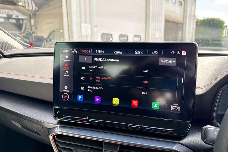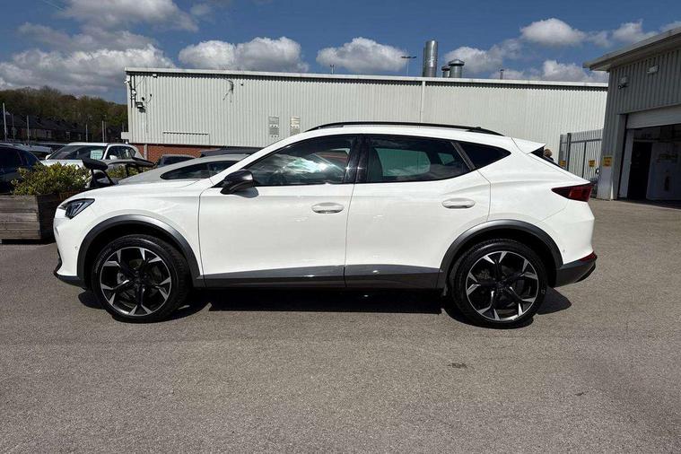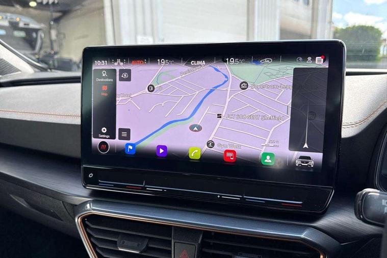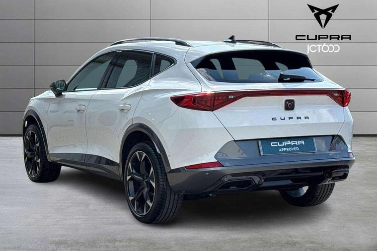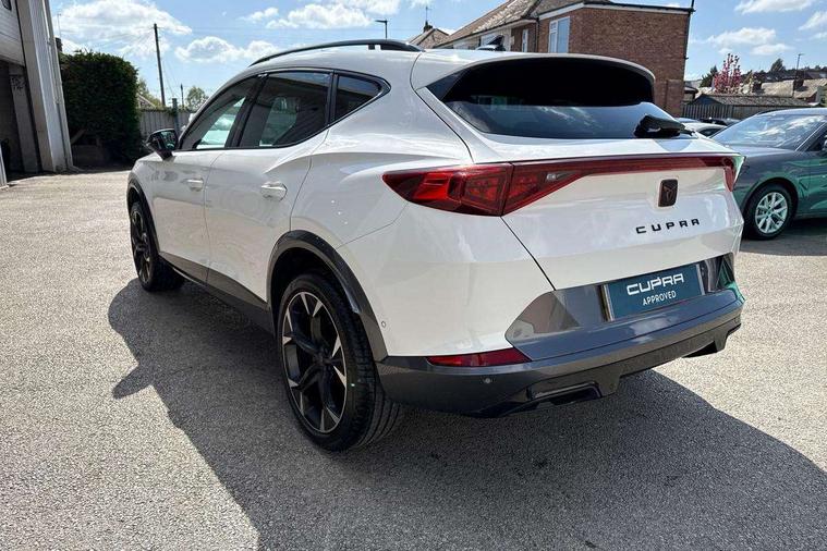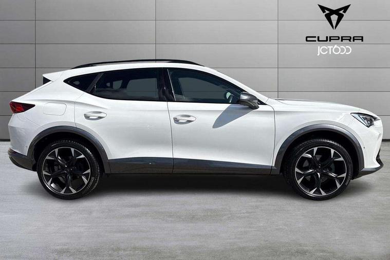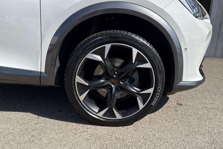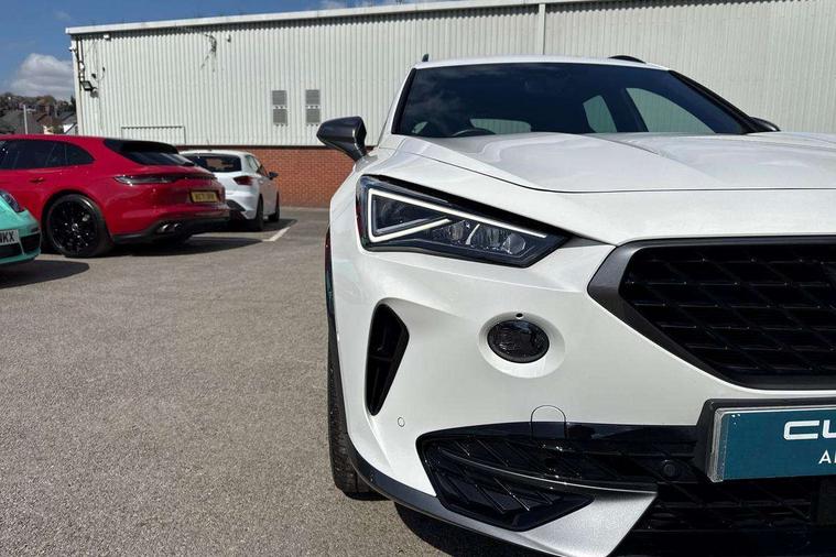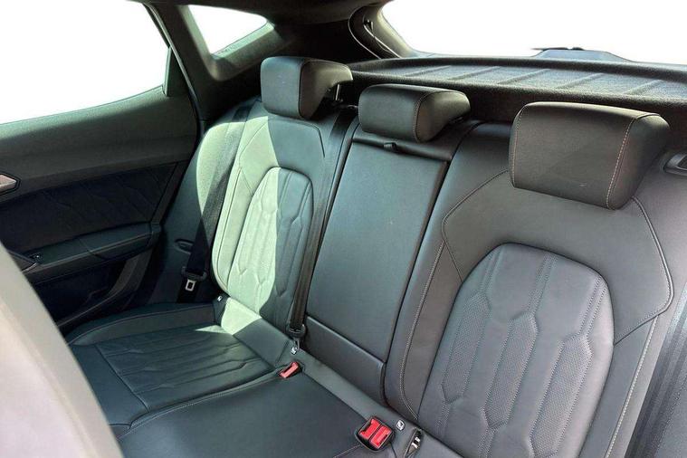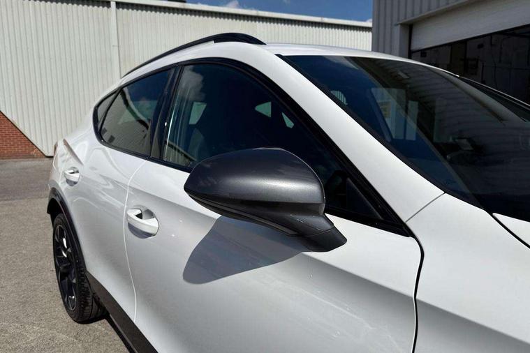 Digital cockpit and configurable dashboard, Driver alert system, Driving profile selection, Forward collision warning with automatic braking, Lane assist, Navigation system with 12'' Touchscreen Display, Park assist (inc front/rear parking sensors), PAS, Predictive adaptive cruise control with speed limiter, Rear view camera, RPM, trip computer, outside temp gauge, instrument light brightness, low fuel warning light, lights on reminder, gearshift indicator, Service interval indicator, Start/stop system with regenerative braking, Voice control system, Wired Android Auto, Wireless apple carplay, Wireless phone charger, Electronic locking differential and dynamic traction support, Standard suspension, 2 front and 2 rear USB type C sockets, Auxiliary input socket, DAB radio, Auto dimming rear view mirror, Body colour door handles, Body coloured bumpers, Dark grey wing mirror, Daytime running light with automatic headlight control and coming home feature, Dynamic headlight range control, Electric front/rear windows, Electrically adjustable heated and folding door mirrors with memory function, Front fog lamps with cornering function, Gloss black roof rails and window surrounds, LED Headlights, LED Taillights with dynamic indicator, Rain sensing wipers, Rear diffuser with black simulated exhaust pipes, Rear side wing doors, Rear wash/wipe, Third brake light, Tinted rear windows, Welcome lights, 12v power supply in centre console, 12V socket, 12v socket in loadspace, 2 front and 2 rear reading lights, 230V socket, 3 seat bench in 2nd row, 60/40 split rear bench seat with armrest and mechanical seat release, Black headlining, Dust/pollen filter, Front and rear head restraints, Front centre armrest, Height/reach adjust steering wheel, Illuminated interior front door sills, Illuminated sunvisor with mirror, Isofix, Leather multi function heated steering wheel with gear shift paddles, Luggage tie-down hooks, Single front passenger seat, Three zone climate control with control panel in rear, Variable luggage/load compartment floor, Wraparound lighting, Genuine Nappa leather Pack - Cupra, 3 point seatbelts on all rear seats, ABS, Brake control system - ESC and brake booster, Child proof door locks, Driver and front passenger airbags with front passenger airbag de-activation, Electronic parking brake, Front and rear disc brakes, Front side curtain airbags, Hill hold control, Public e-call, Seat belt reminder for front and rear seats, Tyre pressure monitoring system, Anti theft alarm system, Keyless entry and start system (KESSY), Locking wheel bolts, Copper and aluminium interior detailing, 19" 'Exclusive' machined sport matte black and silver alloy wheels,