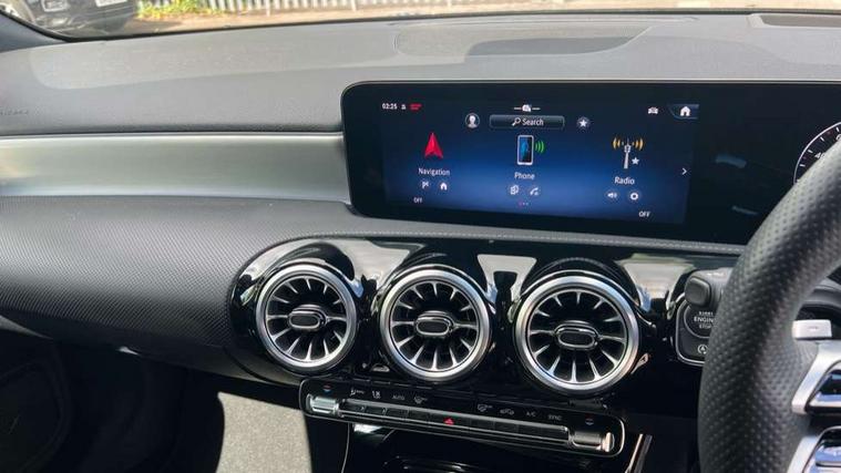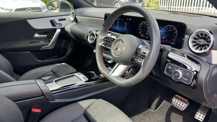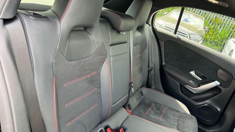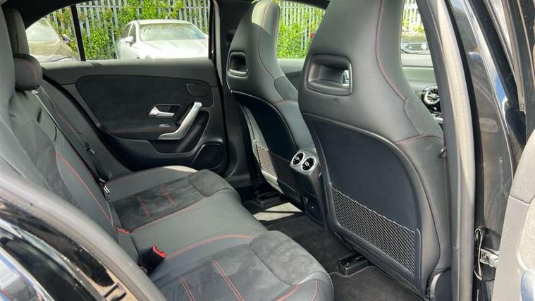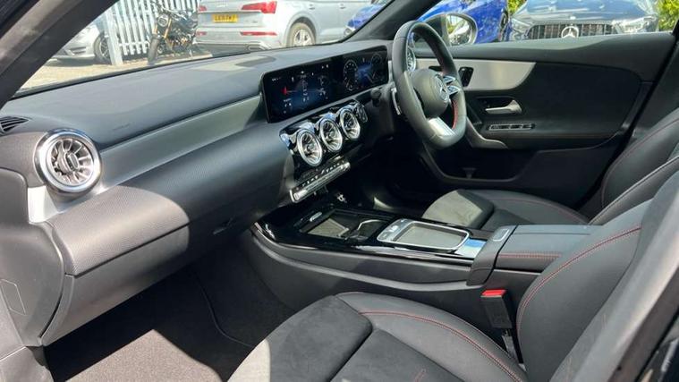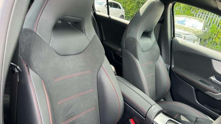 10.25 inch touchscreen central media display, 10.25" Digital instrument cluster display screen, Attention assist, Brake pad wear indicator warning light, Car wash mode, Direct steering, Direction indicators with lane change function, Dual bluetooth interfaces, DYNAMIC SELECT with a choice of driving modes (ECO, Comfort, Sport and Individual), Easy pack tailgate hands-free access, ECO start/stop function, Engine start/stop button, Fingerprint scanner, Fluid level warning indicator for fuel, oil, coolant and washer fluid, Fluorescent jacket for driver, Hard-disk navigation, Head up Display, Hey Mercedes Voice activation, Lamp failure indicator, Mercedes me connect including emergency call system, accident recovery, breakdown and maintenance management, Mercedes me remote services, Outside temperature gauge, Owners manual in English, Pre-installation of private car share, Preinstallation for Mercedes Benz link, Remote boot closing, Service indicator (ASSYST), Smartphone integration with Apple CarPlay and Android auto, Speed sensitive power steering, Tailgate, Traffic sign assist, Trip computer in multifunction display with current consumption indicator, Wireless charging, Lowered comfort suspension, DAB Digital radio, MBUX multimedia system, Mercedes Benz advanced sound system (225 W) with 10 speakers, 1 central speaker, speakers on doors, a tweeter on door, one sub woofer + boost amplifier, 4 Electric Front and Rear windows, Adaptive brake lights, AMG body styling - AMG front apron with front splitter and AMG rear apron and visible exhaust tailpipe trim elements, Body colour bumpers, Body colour door handles with chrome inserts, Body colour side skirt, Chrome beltline strips, Diamond radiator grille with pins in fine star pattern, Electric adjustable and heated door mirrors with integrated LED side indicators, Exhaust system with 2 visible tailpipe trim elements and rear apron, Headlamp assist automatic headlamp activation, Heat insulating dark tinted rear and rear side windows, Heated glass rear windscreen + timer control, LED daytime running lights, LED High level third brake light, LED tail lamp, Multibeam LED headlamps with adaptive highbeam assist and cornering function, Panoramic sliding sunroof, Privacy glass, Radio aerial, Rain sensing windscreen wipers with two sensitivity settings, Rear fog lights, Rear side wing doors, Rear windscreen wiper, 3 seat bench in 2nd row, 3 Spoke flat bottom leather multi function steering wheel with perforated leather in grip area, 40:20:40 split folding rear seats, Air conditioning - Two zone thermotronic luxury automatic climate control with display, AMG floor mats, Automatic child seat recognition sensor, Black air vents with surround in silver chrome, Black roof lining, Brushed stainless steel sports pedals with rubber studs, Electrically adjustable front memory seats including lumbar support and backrest inclination, Front centre armrest with stowage, Front seat backs luggage nets, Galvanished gear shift paddles on steering wheel, Height/reach adjustable steering column, Illuminated Mercedes Benz lettering front door sills with changeable cover, Interior lighting - 64 colour Ambient lighting, Interior mirror with reading lamps in black and frameless, Rear armrest with 2 cupholders, Seat occupancy sensor for front passenger seat, Single front passenger seat, Sports seats with integrated headrests, Stowage compartment in centre console with retractable cover, Sunvisors with illuminated vanity mirrors, Twin front cupholders, Light and sight package - A Class, Mirror package - A Class, Night pack - A Class Sport, Parking pack with 360 degree camera - A Class, Seat comfort pack - A Class, USB pack plus - A Class, Winter pack - A Class, 3 rear 3 point seatbelts, ABS with Brake Assist, Active bonnet, Adaptive brake assist with hold function and hill start assist, Bonnet with power domes, Childproof locks manually operated for rear doors and electrically operated for rear power windows, Crash responsive emergency lighting, Driver and passenger head and side airbags, Drivers knee airbag, Dual stage driver/passenger airbags, Electronic parking brake, ESP curve dynamic assist, ESP with ASR, Exit warning, Front and rear seatbelt reminder, ISOFIX and top tether child seat fixing points in two outer rear seats, Tyre pressure monitoring system, Warning triangle and first aid kit, Window airbags, Alarm system/interior protection/immobiliser, Guard 360 degree vehicle protection, Keyless entry lock/unlock, Keyless Go, Remote central locking and crash sensor with emergency opening function, Black seatbelts, Light longitudinal grain aluminium trim, 19" AMG multi-spoke light alloy wheels, aerodynamically optimised, painted in black with high sheen rim flange, Summer tyres, Tirefit sealant kit,
