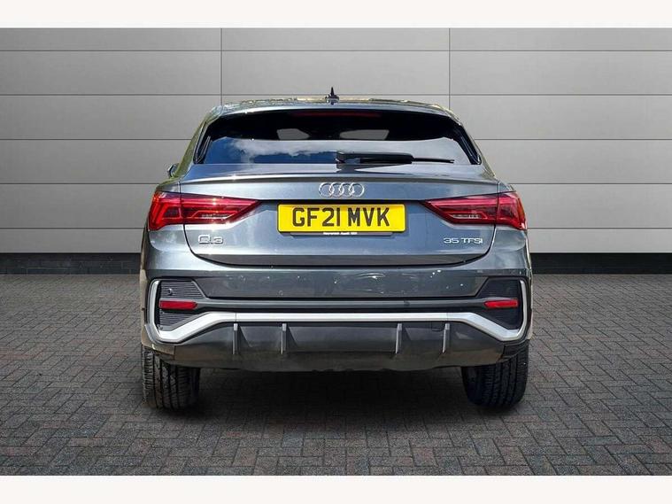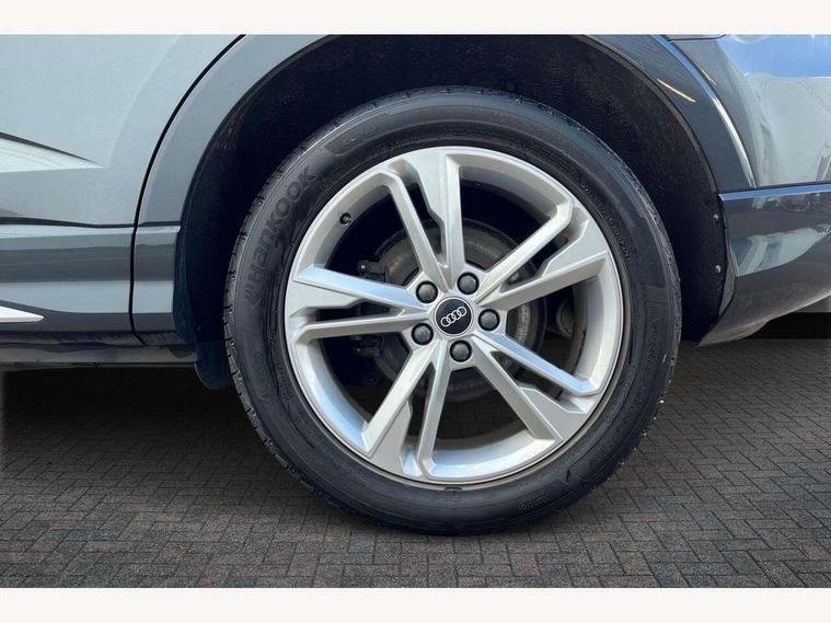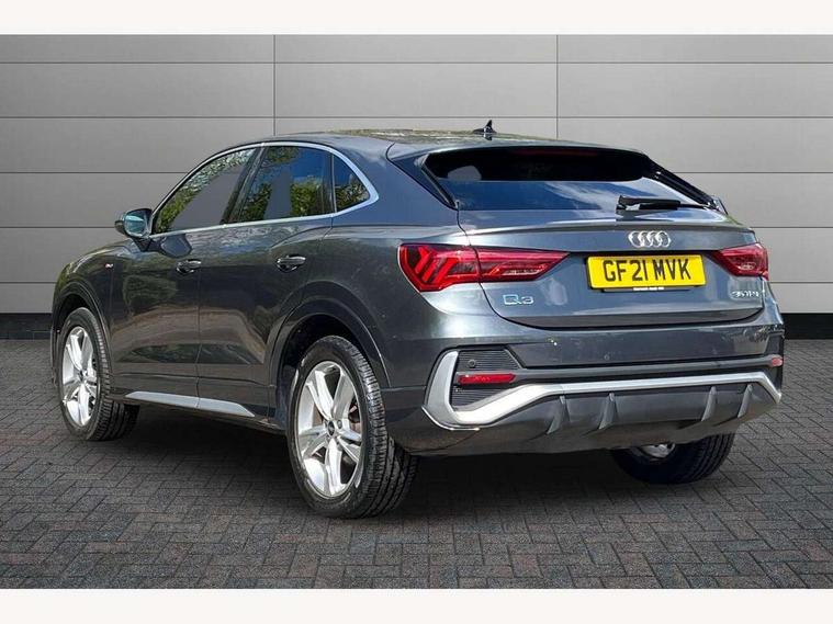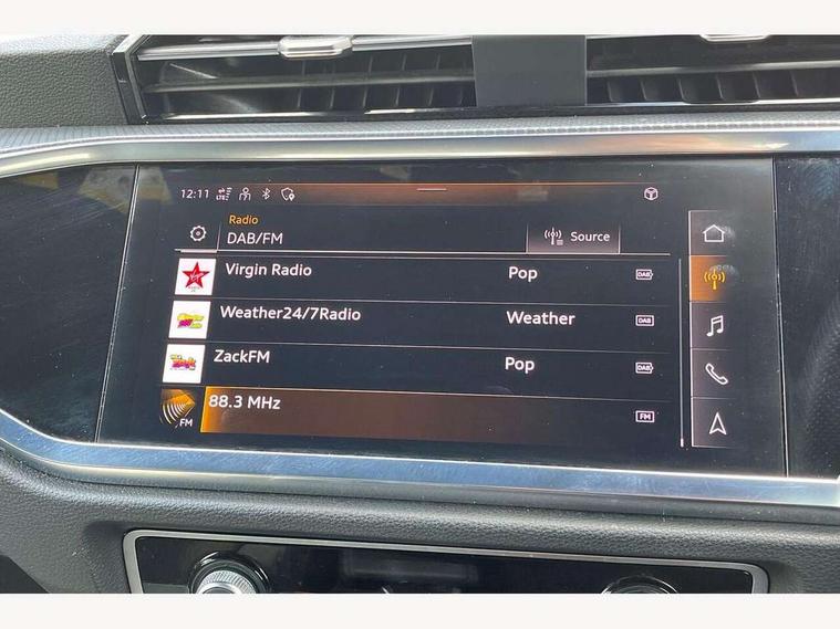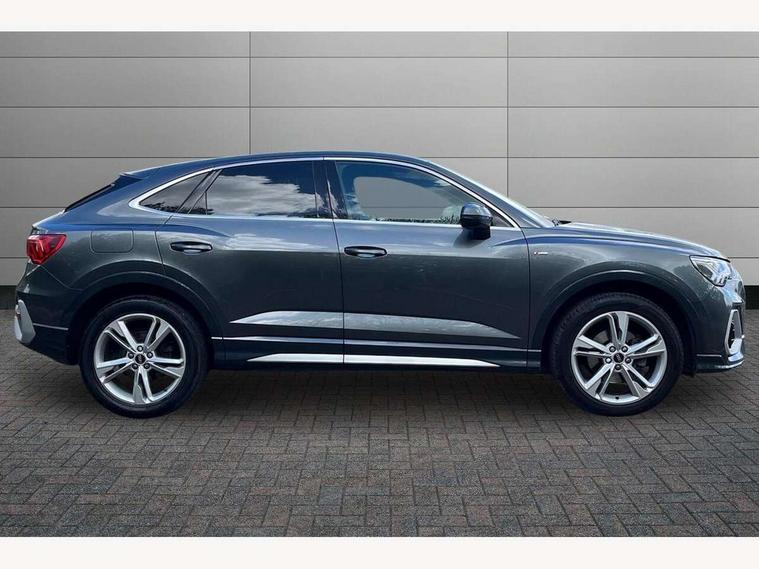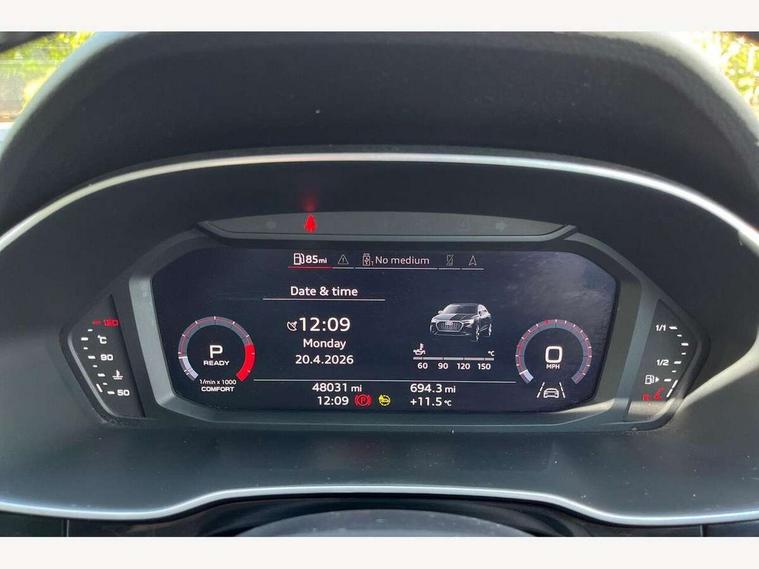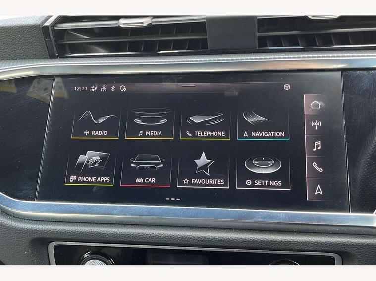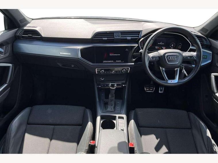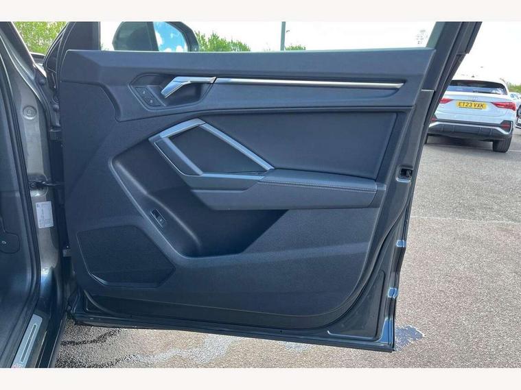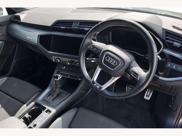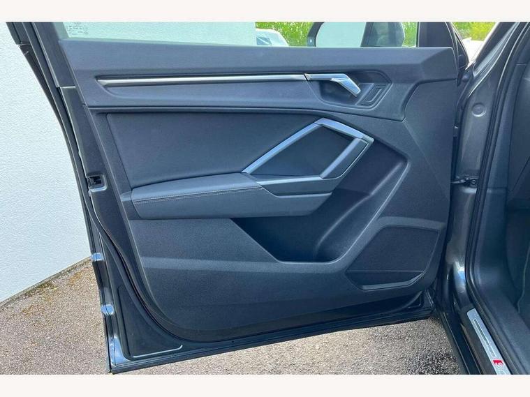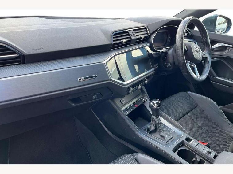 Audi connect safety and service (e-call), Audi drive select, Audi lane departure warning, Audi smartphone interface includes wireless Apple carplay/Android Auto, Audi Virtual Cockpit - 10.25" display, Bluetooth interface, Camera based traffic sign recognition, MMI Navigation Plus with high resolution 10.1 inch touchscreen colour display, Power operated tailgate, Progressive steering, Service interval indicator, Start stop system with recuperation, Voice control system with natural language interaction, 48V Mild hybrid technology, Sports suspension, 2 USB-C ports with charge and data functions, 6 passive loudspeakers, DAB digital radio module, Acoustic windscreen, Aluminium window trim, Auto dimming frameless rear view mirror, Diffuser grille in grained matt black, Diffuser trim in selenite silver, Electrically folding, adjustable and heated door mirrors with integrated LED side indicators and kerb view function for passenger side, Front and rear electric windows, Front fog lights, Front side air inlets in selenite silver, Front underbody protection in manhattan grey paint finish, Grille surround in aluminium silver matt, High gloss black finish B and C pillars, LED headlights with LED daytime running lights and dynamic rear indicator, LED rear lights, Privacy glass dark tinted rear and rear-side windows (from B-pillar backwards), Radiator grille in titanium black with inlay in matt aluminium silver, Rain and light sensors, Rear underbody protection in matt black, S line badges on front wings, Side skirt insert in matt Platinium grey, 12V socket in rear centre console, 40:20:40 folding with manual adjustment for 60:40 forwards/backwards position and backrest angle, Adjustable rear seat bench/backrest with centre armrest and cupholder, Black cloth headlining, Dual zone electronic climate control, Front and rear black floor mats with contrast stitching, Front and rear headrests, Front and rear roof module including reading lights, Front centre armrest, Glove compartment lighting, Height and reach adjustable steering wheel, Illuminated door sill trims with S logo, ISOFIX child seat mounting for front passenger with airbag deactivation and outer rear seat including top tether attachment point for outer rear seats, Luggage compartment light, Manual front seats with height adjustment, Perforated leather gearknob, Stainless steel luggage compartment sill finisher, Stainless steel pedals, Tool kit, Non smoking pack - Q3, 3x3 point rear seatbelts, 6 airbags - Driver, front passenger, curtain and side windows, Audi pre-sense front with pedestrain and cyclist recognition, Electrically operated child locks on rear doors, Electromechanical parking brake, Electronic stabilisation control including ABS, ASR and EDL, Hill descent control, Hill hold assist, Pre sense basic, Seatbelt monitoring, Tyre pressure warning, Warning triangle and first aid kit, Anti theft alarm, Anti theft wheel bolts, Remote central locking, Black dashboard, Dark matt brushed aluminium inlay, Detail dashboard around MMI touch colour display in glass look, black with surround in aluminium look, Leatherette door armrest, Tyre repair kit,