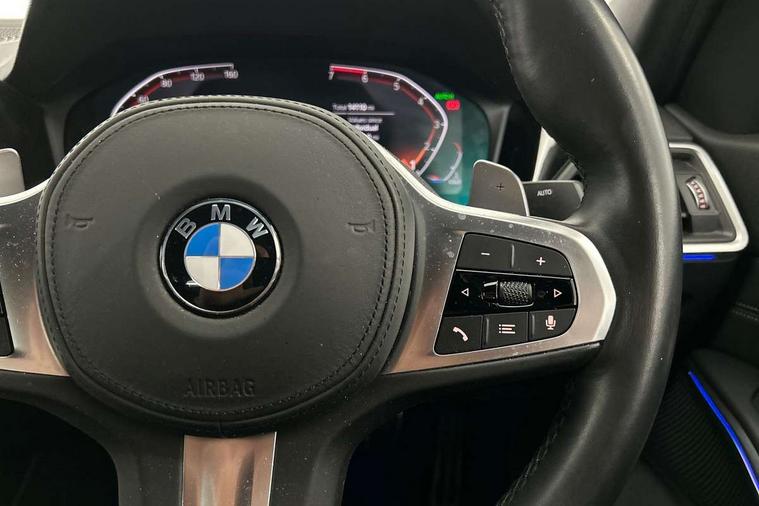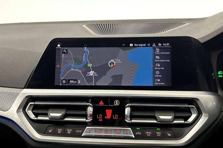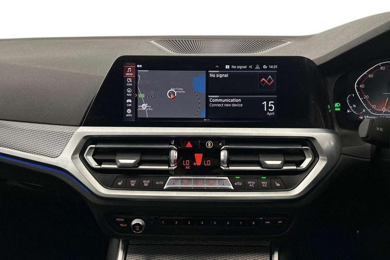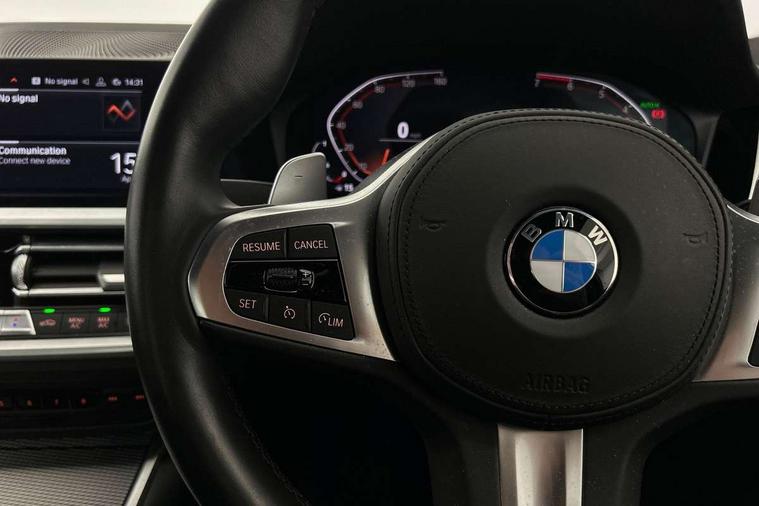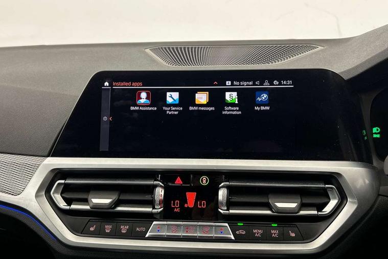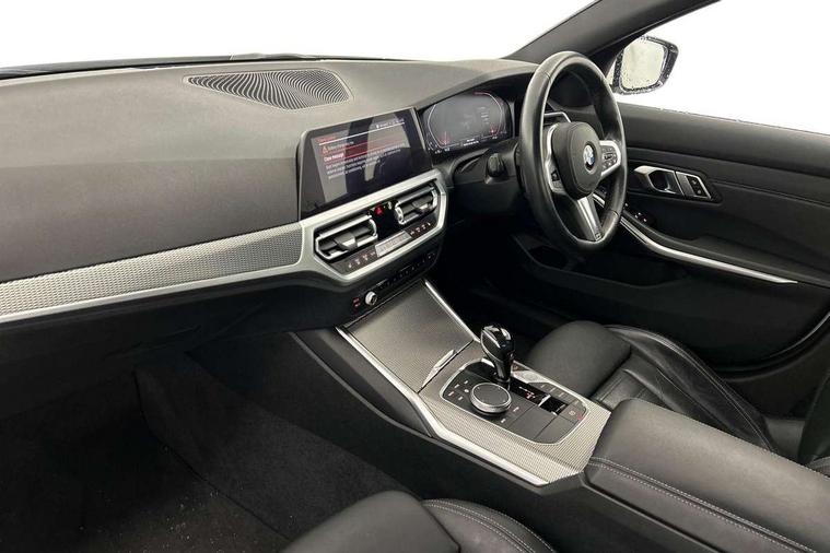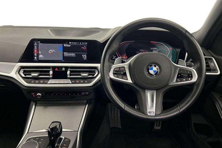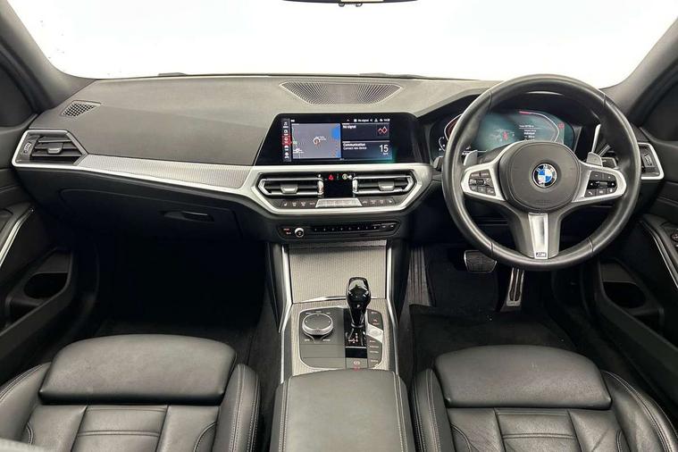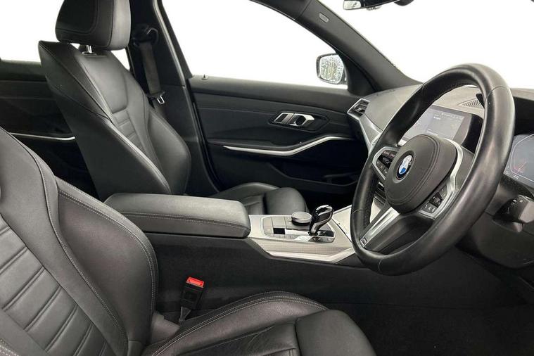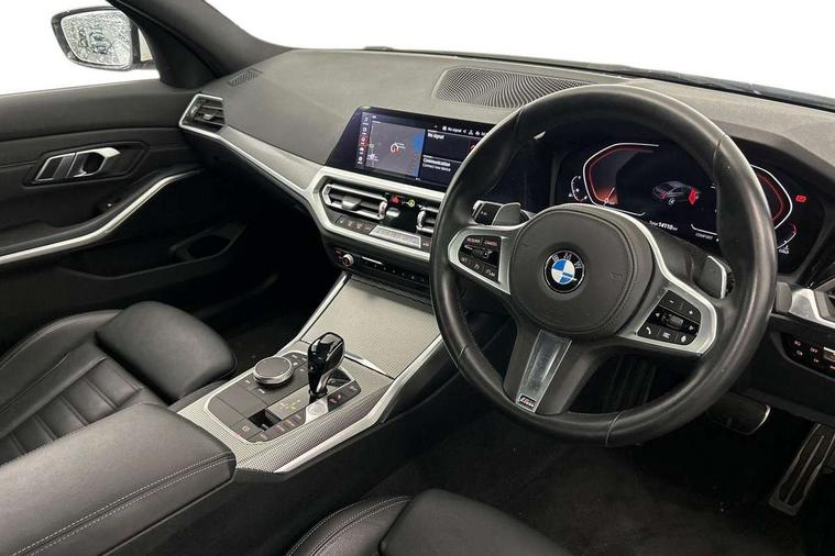 Active guard plus, Attentiveness assist, Auto start-stop, BMW ConnectedDrive online services, BMW iDrive controller on centre console, BMW Live Cockpit Professional sat nav system including 10.25" high resolution display and Intelligent Voice Assistant, BMW service history, BMW Teleservices, Brake pad wear indicator in front and rear, Check Control warning system for monitoring of lights and door/luggage compartment open warning, Condition based service, Electric power steering with Servotronic steering optimised at all speed ranges, Instrument cluster with speedometer with mph readout, tachometer, fuel gauge and oil temperature gauge, Integrated owners handbook, Oil sensor for level and grade, warning by check control system, On board computer - average speed+fuel consumption, service interval, clock/date, odometer/trip meter, outside temperature display and ice warning, Optimum shift indicator, Personal Profile - automatic lock when driving away selectable, Variable sport steering, Balanced 50/50 weight distribution, Battery cut-out switch, Drive performance control - ECO PRO, comfort and sport modes, Electronic differential lock control (EDLC), Larger capacity fuel tank, M sport suspension, Petrol Particulate Filter, Sport automatic transmission with steering-wheel mounted gearshift paddles and launch control, Stroke dependent dampers, DAB tuner, Electronic service booklet, Acoustic glazing, Active airstream chrome frame kidney grille with 8 high gloss black vertical slats, Automatic headlight beam throw control with load dependent regulating reaction, dynamic compensation of braking dive and acceleration squat, Black roof mouldings, Body colour - fuel filler flap, front and rear bumpers, door handles and mirror caps with integrated turn indicator + bottom segment in matt black, Dynamic brake lights, Electric windows - front and rear, with open/close fingertip control, anti-trap facility and comfort closing, Exhaust tailpipe - split left and right, Extended LED headlights, Exterior mirrors - electrically folding with anti-dazzle, Fading support, Front and rear bumper system with replaceable deformation elements, Front black door sill finishers with BMW designation, Green tinted heat protection glazing, High gloss shadow line exterior trim, Interior rear view electrochromatic mirror with automatic anti dazzle function, LED front fog lights, Lightweight engineering, M designation on front side panels, left and right, Matt black exterior B pillar, Model designation on right side of tailgate, Rain sensor with automatic headlight activation, Rear wiper, Shark fin antenna, Two part LED tailights in L-shape with components in smoked glass, brake light, LED turn indicator and rear fog light, Visible VIN plate, Welcome lights in interior and door handle area, Windscreen wipers with integrated washing jets, 12V power socket in front storage compartment, 2 front cupholder in centre console with clamping elements and matt black inlay, 3 rear seats with non folding headrests with 3 point seat belts, 3 zone automatic air conditioning, 4 pieces lashing eyelets in luggage compartment, 40:20:40 split folding rear seat with loading system, Ambient lighting with welcome carpet light, Anthracite headlining, Armrest integrated in front and rear door trim + front centre console armrest, Centred top Luggage compartment lights, Four grab handles integrated in roof lining, Front and rear door exit lighting (left / right), Front and rear door pockets, Front and rear reading lights, Front and rear velour floor mats, Front head restraints, Front sport seats, Heated driver and front passenger seats, Height adjustable mechanically and infinitely variable steering column, Illuminated armrest storage compartment, Illuminated glove compartment with separate small compartment, Interior lighting - front centre over interior mirror with soft light, rear centre and front and rear footwell lighting, M Sport multifunction leather steering wheel, Make-up mirror lights, Rear centre armrest with 2 cupholders, Rear centre console with storage compartment and ventilation grille, Sunvisors with vanity mirrors and ticket pocket, Toolkit located in luggage compartment, Connected pack professional - 3 Series Saloon/Touring, M Aerodynamics pack - 3 Series Saloon/Touring, 2 tone horn, BMW emergency call, Brake energy regeneration, Braking pre-tensioning, Child proof locking system in rear door, Child seat ISOFIX attachment rear outer seats, Coasting in idle in ECO PRO mode, Crash sensor activating of airbags, Unlocking doors, hazard warning lights, interior light, safety battery terminal, Driver and front passenger side airbags, integrated in the door side seat backrest bolsters for all seat variants, Driver/Front Passenger airbags, Dry braking, Dynamic brake control, Dynamic stability control + (DSC+) - Anti-lock Braking System (ABS) with brake assist and cornering brake control + Automatic Stability Control (ASC), Dynamic Traction Control - DTC, Electric parking brake including automatic hold function and automatic release of the parking brake when driving off, Front passenger manual airbag deactivation, Head airbags for all 4 outer seats, Hill start assist, Seat belt security check for driver and front passenger, Side impact protection, Three 3 point seat belts on all seats including front belt stopper, pyrotechnic belt tensioners and belt force limiters, Tyre pressure monitoring with three level warning strategy, Ventilated front and rear disc brakes, Warning triangle and first aid kit, Alarm system (Thatcham 1) with remote control and electronic engine immobiliser, Central locking switch for all doors, fuel filler cap and luggage compartment, Remote control with integrated key one button open/close vehicle and windows, sole opening of the luggage compartment lid and panic mode, Start/stop button with Comfort Go keyless engine start and auto Start/stop deactivation button, Vehicle key with M specific designation, Reduced rolling 