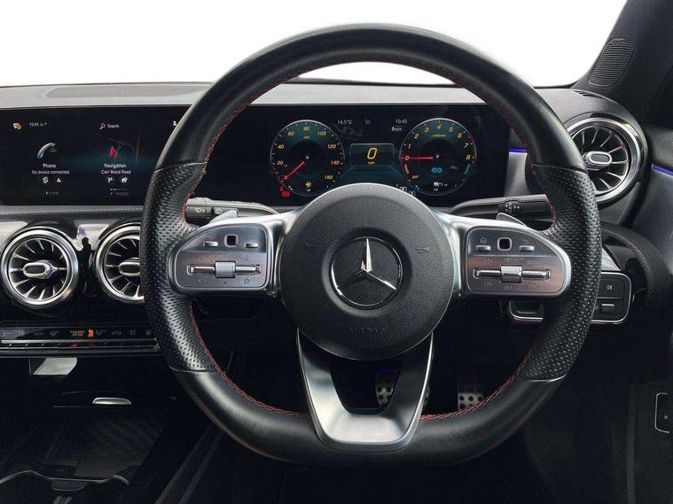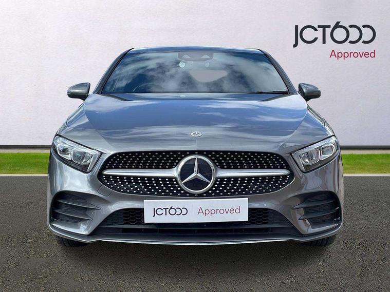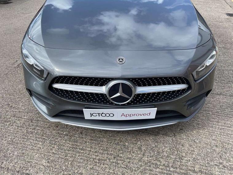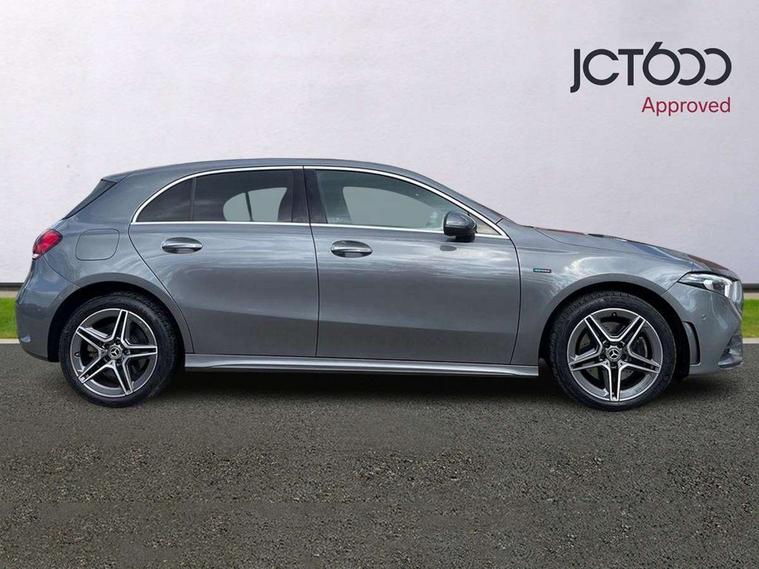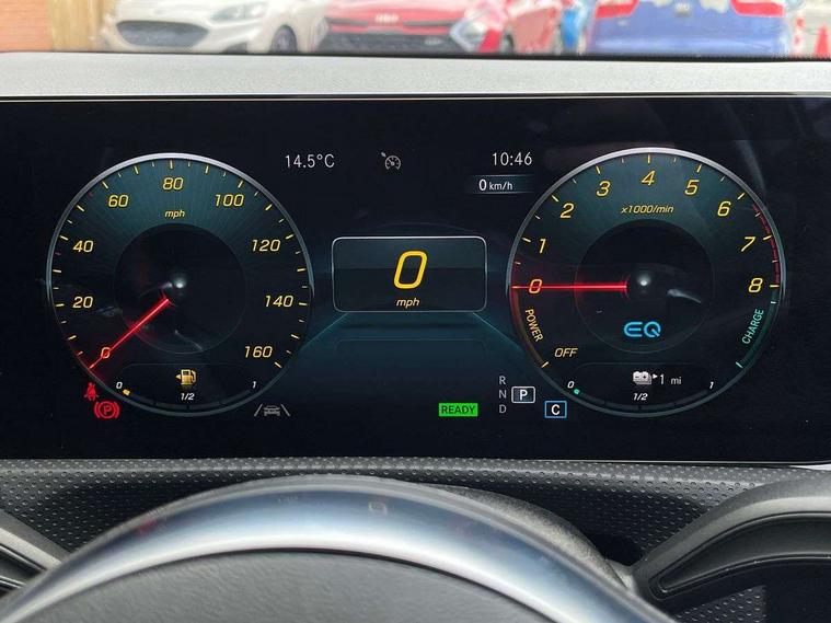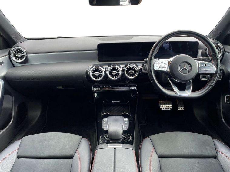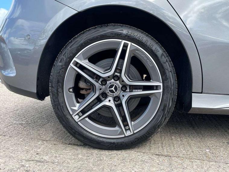 10.25" Digital instrument cluster display screen, 10.25" media display, 180 degree rear view camera with parking guidelines, Acoustic ambient protection, Active parking assist with visual and audible warning of detected obstacles, Attention assist, Brake pad wear indicator warning light, Car wash mode, Cruise control + speed limiter, Direct steering, Dual bluetooth interfaces, DYNAMIC SELECT with a choice of driving modes (ECO, Comfort, Sport and Individual), ECO start/stop function, Fluid level warning indicator for fuel, oil, coolant and washer fluid, Hard-disk navigation, Hey Mercedes Voice activation, Lamp failure indicator, MBUX augmented reality for navigation, Mercedes me connect including emergency call system, accident recovery, breakdown management and maintenance, Mercedes me remote services, Outside temperature gauge, Owners manual in English, Pre-installation for car sharing, Preinstallation for Mercedes Benz link, Remote and charging services plus, Service indicator (ASSYST), Smartphone integration with Apple CarPlay and Android auto, Speed sensitive power steering, Trip computer, Ultrasonic sensors positioned in the front and rear bumpers, Wireless charging, 7.4 kW monophase on board charger, Comfort suspension, Mode 3 charging cable 11 kW, Rear axle multi-link, 10 speakers, 2 USB ports (type C) in rear stowage compartment and one in front of center console, DAB Digital radio, MBUX multimedia system with DAB digital radio and touchpad including satellite navigation, Mercedes-Benz advanced sound system - 225W, 4 Electric Front and Rear windows, Adaptive brake lights, AMG bodystyling - Front apron with splitter in chrome, rear apron with chrome trim and chrome visible trim elements in tailpipe, Black weather strip, Body colour bumpers, Body colour door handles, Body colour side skirt, Body coloured door mirrors, Chrome beltline trim, Diamond radiator grille with chrome pins and silver louvre + chrome insert, Electric adjustable and heated door mirrors with integrated LED side indicators, EQ badging, Exhaust system - Twin visible tailpipes in polished stainless steel, Headlamp assist automatic headlamp activation, Heated glass rear windscreen + timer control, LED high performance headlamps with integrated LED daytime running lights, LED tail lamp, LED third brake light, Privacy glass, Radio aerial, Rain sensing windscreen wipers with two sensitivity settings, Rear fog lights, Rear wiper, Window line trim strip in chrome, 3 Spoke flat bottom leather multi function steering wheel with perforated leather in grip area, 40:20:40 split folding rear seats, Artico man-made leather/Microfibre Dinamica upholstery with red contrast stitching, Auto Mercedes-Benz child seat recognition sensor, Black air vents with surround in silver chrome, Black roof lining, Brushed stainless steel sports pedals with rubber studs, Charging socket, Controller on centre console with chrome surround, Floor mats with stitched edging and AMG lettering, Front centre armrest with storage compartment, Front seat backs luggage nets, Front seat cushion length adjustment, Galvanished gear shift paddles on steering wheel, Heated front seats, Height/reach adjustable steering column, Illuminated front door sills with changeable cover, Interior lighting - 64 colour Ambient lighting, Interior mirror with reading lamps in black and frameless, ISOFIX and top tether child seat fixing points in two outer rear seats, Manual height adjustable front seats, Pre-entry climate control, Rear armrest with 2 cupholders, Rear head restraints, Seat occupancy sensor for front passenger seat, Sports seats with integrated headrests, Stowage compartment in centre console with retractable cover, Sunvisors with illuminated vanity mirrors, Touchpad on center console, Twin front cupholders, Two zone thermotronic luxury automatic climate control, Light and sight pack - A Class, Mirror package - A Class, Seat comfort pack - A Class, 3 rear 3 point seatbelts, ABS with Brake Assist, Active bonnet, Active brake assist includes forward collision warning system with autonomous braking, Adaptive brake assist with hold function and hill start assist, Black seatbelts, Childproof locks manually operated for rear doors and electrically operated for rear power windows, Crash responsive emergency lighting, Driver and passenger head and side airbags, Drivers knee airbag, Dual stage driver/passenger airbags, Electronic parking brake, ESP curve dynamic assist, ESP with ASR, Front and rear seatbelt reminder, Front brake callipers with Mercedes Benz lettering, Perforated front brake discs, Radar based regeneration, Tyre pressure monitoring system, Warning triangle and first aid kit, Window airbags, Alarm system/interior protection/immobiliser, Keyless entry lock/unlock, Keyless Go, Remote central locking and crash sensor with emergency opening function, Urban guard vehicle protection system with immobiliser and interior protection, Light aluminium with longitudinal grain interior trim, 18" AMG 5 twin spoke light alloy wheels in titanium grey with highsheen finish, Summer tyres, Tirefit sealant kit,