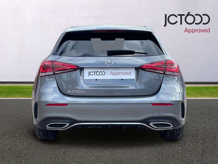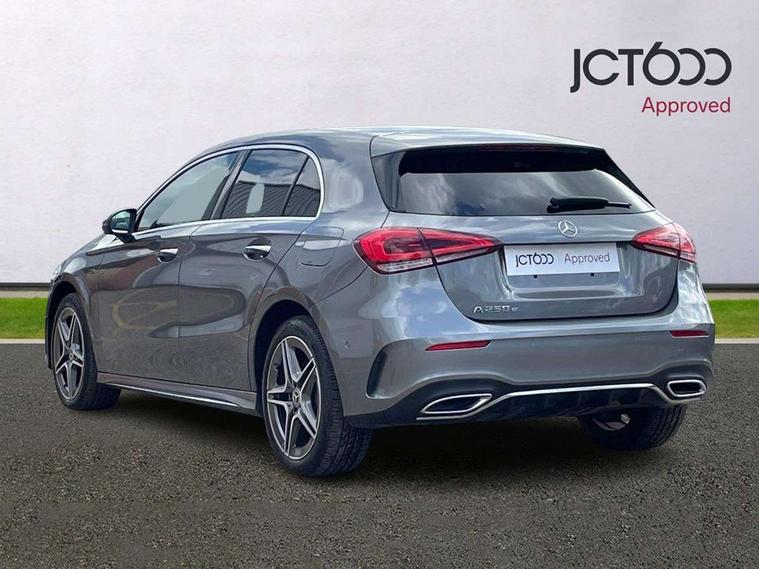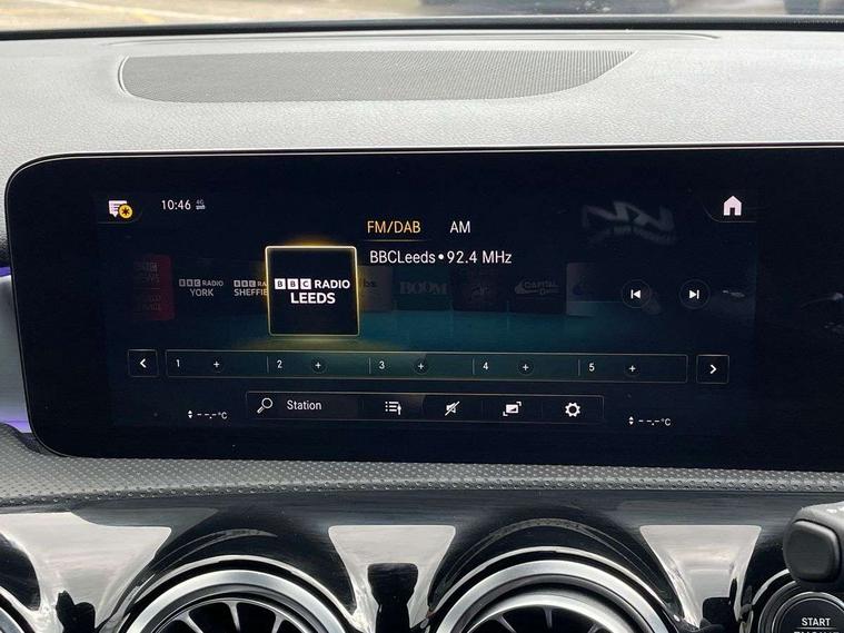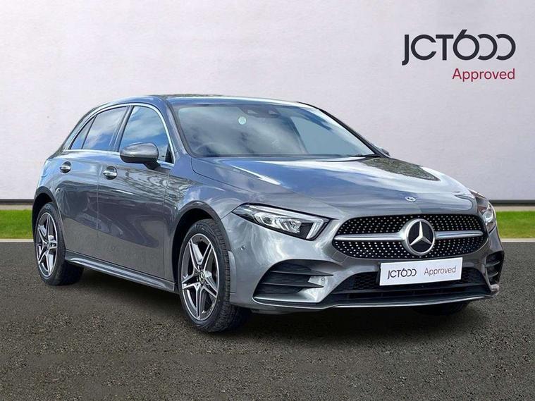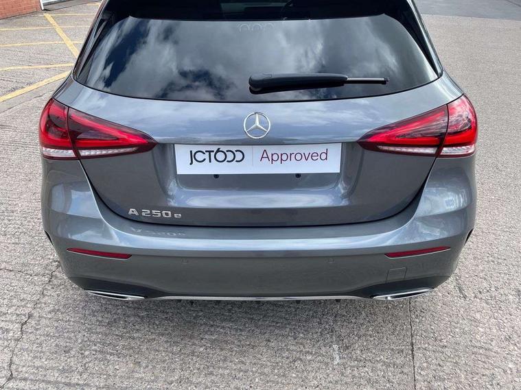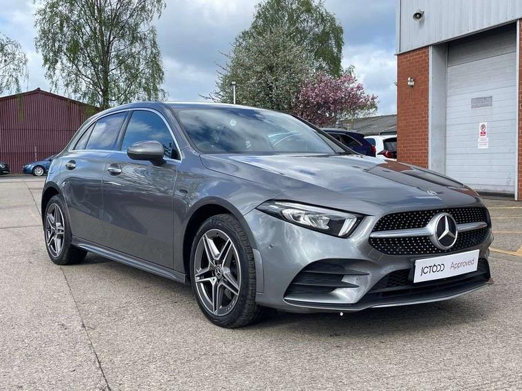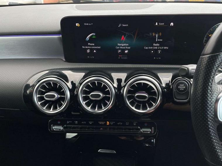 10.25" Digital instrument cluster display screen, 10.25" media display, 180 degree rear view camera with parking guidelines, Acoustic ambient protection, Active parking assist with visual and audible warning of detected obstacles, Attention assist, Brake pad wear indicator warning light, Car wash mode, Cruise control + speed limiter, Direct steering, Dual bluetooth interfaces, DYNAMIC SELECT with a choice of driving modes (ECO, Comfort, Sport and Individual), ECO start/stop function, Fluid level warning indicator for fuel, oil, coolant and washer fluid, Hard-disk navigation, Hey Mercedes Voice activation, Lamp failure indicator, MBUX augmented reality for navigation, Mercedes me connect including emergency call system, accident recovery, breakdown management and maintenance, Mercedes me remote services, Outside temperature gauge, Owners manual in English, Pre-installation for car sharing, Preinstallation for Mercedes Benz link, Remote and charging services plus, Service indicator (ASSYST), Smartphone integration with Apple CarPlay and Android auto, Speed sensitive power steering, Trip computer, Ultrasonic sensors positioned in the front and rear bumpers, Wireless charging, 7.4 kW monophase on board charger, Comfort suspension, Mode 3 charging cable 11 kW, Rear axle multi-link, 10 speakers, 2 USB ports (type C) in rear stowage compartment and one in front of center console, DAB Digital radio, MBUX multimedia system with DAB digital radio and touchpad including satellite navigation, Mercedes-Benz advanced sound system - 225W, 4 Electric Front and Rear windows, Adaptive brake lights, AMG bodystyling - Front apron with splitter in chrome, rear apron with chrome trim and chrome visible trim elements in tailpipe, Black weather strip, Body colour bumpers, Body colour door handles, Body colour side skirt, Body coloured door mirrors, Chrome beltline trim, Diamond radiator grille with chrome pins and silver louvre + chrome insert, Electric adjustable and heated door mirrors with integrated LED side indicators, EQ badging, Exhaust system - Twin visible tailpipes in polished stainless steel, Headlamp assist automatic headlamp activation, Heated glass rear windscreen + timer control, LED high performance headlamps with integrated LED daytime running lights, LED tail lamp, LED third brake light, Privacy glass, Radio aerial, Rain sensing windscreen wipers with two sensitivity settings, Rear fog lights, Rear wiper, Window line trim strip in chrome, 3 Spoke flat bottom leather multi function steering wheel with perforated leather in grip area, 40:20:40 split folding rear seats, Artico man-made leather/Microfibre Dinamica upholstery with red contrast stitching, Auto Mercedes-Benz child seat recognition sensor, Black air vents with surround in silver chrome, Black roof lining, Brushed stainless steel sports pedals with rubber studs, Charging socket, Controller on centre console with chrome surround, Floor mats with stitched edging and AMG lettering, Front centre armrest with storage compartment, Front seat backs luggage nets, Front seat cushion length adjustment, Galvanished gear shift paddles on steering wheel, Heated front seats, Height/reach adjustable steering column, Illuminated front door sills with changeable cover, Interior lighting - 64 colour Ambient lighting, Interior mirror with reading lamps in black and frameless, ISOFIX and top tether child seat fixing points in two outer rear seats, Manual height adjustable front seats, Pre-entry climate control, Rear armrest with 2 cupholders, Rear head restraints, Seat occupancy sensor for front passenger seat, Sports seats with integrated headrests, Stowage compartment in centre console with retractable cover, Sunvisors with illuminated vanity mirrors, Touchpad on center console, Twin front cupholders, Two zone thermotronic luxury automatic climate control, Light and sight pack - A Class, Mirror package - A Class, Seat comfort pack - A Class, 3 rear 3 point seatbelts, ABS with Brake Assist, Active bonnet, Active brake assist includes forward collision warning system with autonomous braking, Adaptive brake assist with hold function and hill start assist, Black seatbelts, Childproof locks manually operated for rear doors and electrically operated for rear power windows, Crash responsive emergency lighting, Driver and passenger head and side airbags, Drivers knee airbag, Dual stage driver/passenger airbags, Electronic parking brake, ESP curve dynamic assist, ESP with ASR, Front and rear seatbelt reminder, Front brake callipers with Mercedes Benz lettering, Perforated front brake discs, Radar based regeneration, Tyre pressure monitoring system, Warning triangle and first aid kit, Window airbags, Alarm system/interior protection/immobiliser, Keyless entry lock/unlock, Keyless Go, Remote central locking and crash sensor with emergency opening function, Urban guard vehicle protection system with immobiliser and interior protection, Light aluminium with longitudinal grain interior trim, 18" AMG 5 twin spoke light alloy wheels in titanium grey with highsheen finish, Summer tyres, Tirefit sealant kit,