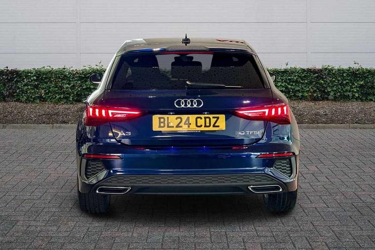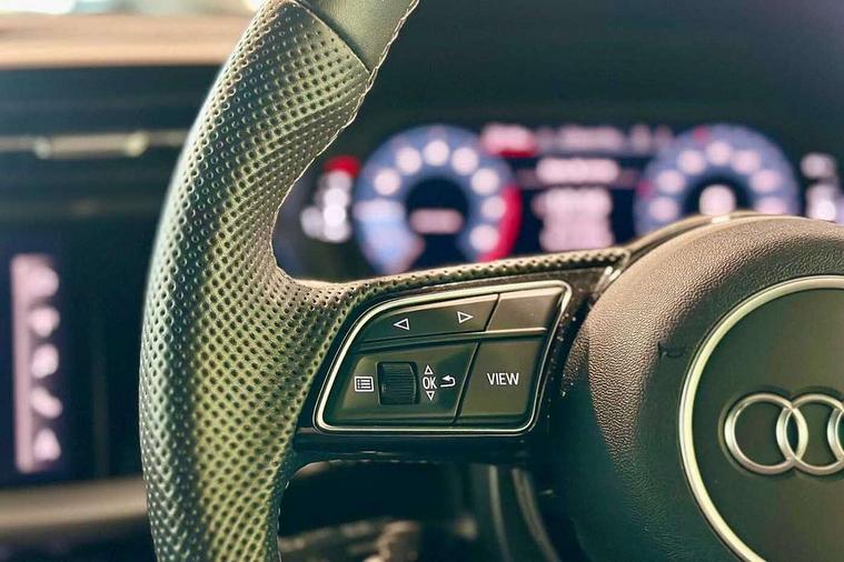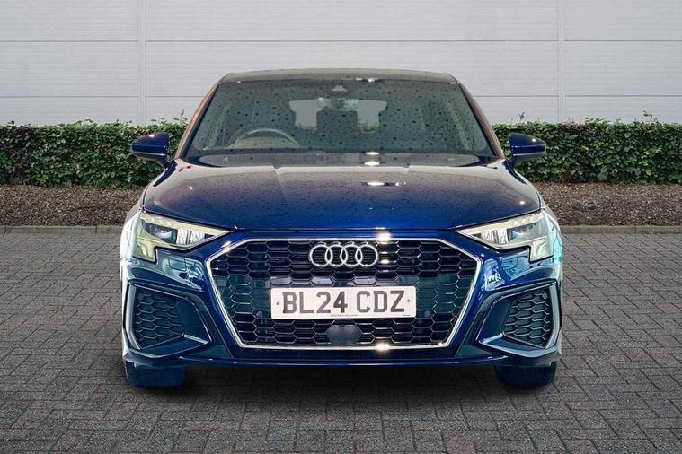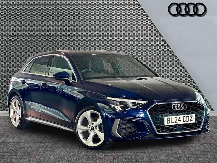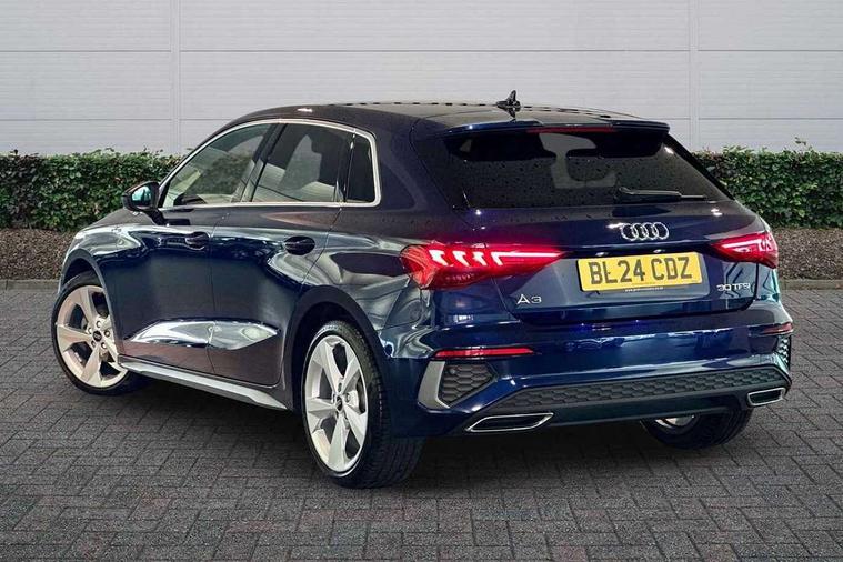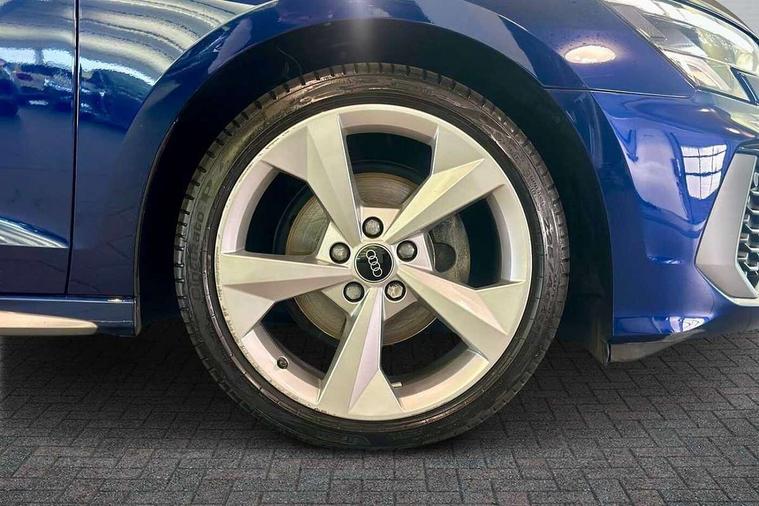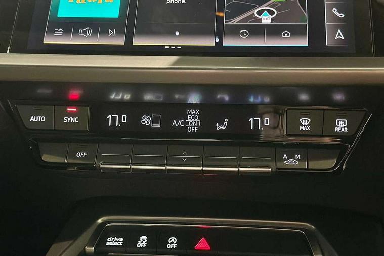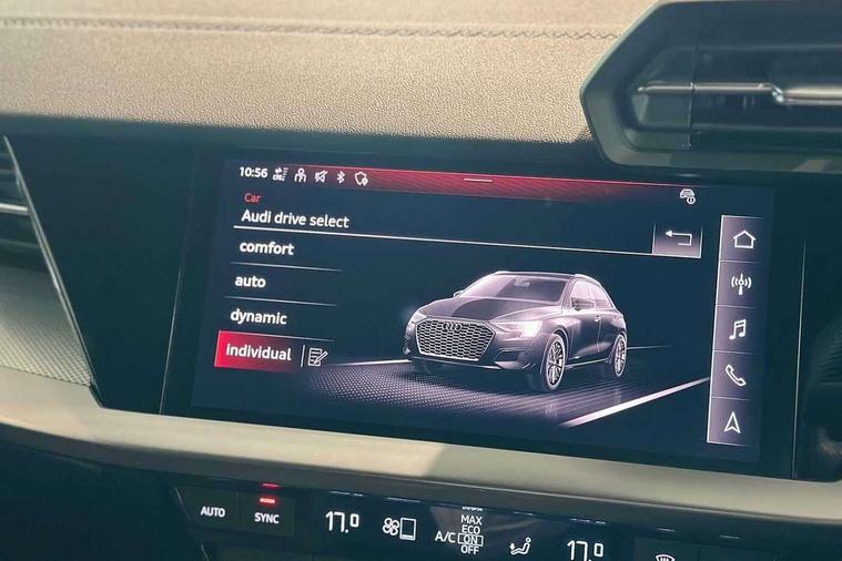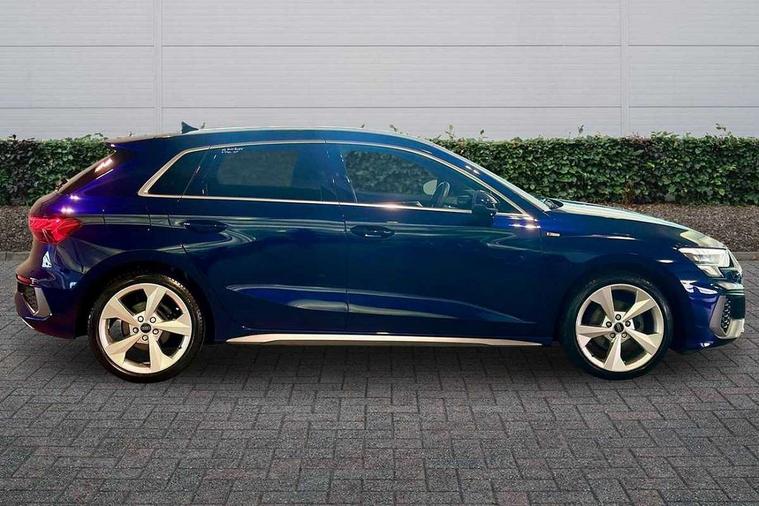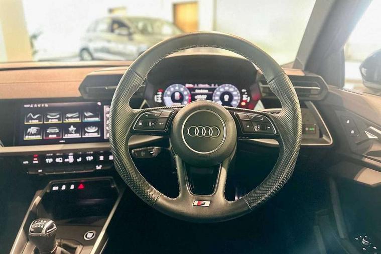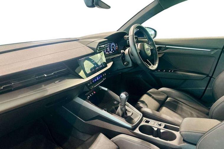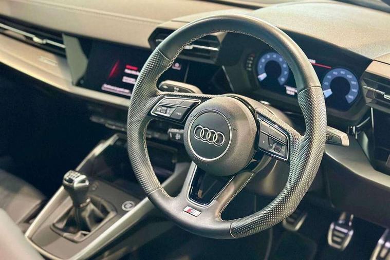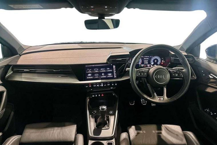 Audi drive select (Auto, Comfort, Dynamic and Individual), Audi smartphone interface, Audi Virtual Cockpit - 10.25" digital and colour instrument cluster, Automatic start/stop system with recuperation, Bluetooth interface, Camera based traffic sign recognition, Collision avoidance assistant, Cruise control, e-Call (emergency call), Electromechanical power speed sensitive steering, Lane departure warning system, MMI Navigation Plus with high resolution 10.1" colour touch screen display, Rear parking sensors, Service indicator, Trip computer, Voice control system with natural language interaction, Sports suspension, 2xUSB-C connection with data and charging functions, 6 passive loudspeakers, DAB Digital radio, 3rd brake light, Acoustic glass windscreen, Aluminium window trim, Auto dimming frameless rear view mirror, Body colour exterior mirrors, Electrically adjustable/heated/folding/auto dimming door mirrors with integrated LED indications + kerb view function for passenger side, Front electric windows, Illuminated door sills with aluminium inserts at the front with S logo, LED daytime running lights, LED headlights with LED rear lights and dynamic rear indicators, Light and rain sensors, Privacy glass - dark tinted rear window, rear door and side windows, Rear electric windows, Rear side air outlets in grained matt black, Rear side wing doors, Rear wiper, S line bumpers, S roof spoiler, 12V socket and storage compartment in front centre console, 3 seat bench in 2nd row, 3 spoke leather multifunction steering wheel, 4 way electrically adjustable lumbar support for driver and front passenger, 60/40 split folding rear seat bench, Black cloth headlining, Dual zone electronic climate control, Front and rear centre armrest in artificial leather, Front and rear headrests, Front/rear floor mats, Height and reach adjustable steering wheel, Interior lighting - glove compartment light and right hand side, Luggage compartment floor covering, Manual boot compartment lid, Manually adjustable front seats, Seat side bolsters, Single front passenger seat, Stainless steel pedals and front footrest in black, Twin leather upholstery with front sports seats S embossed logo, Aluminium interior elements pack - A3 Sportback, LED interior lighting pack - A3 Sportback, S line styling pack - A3 Sportback, 3x3 point rear seat belts, Driver and front passenger airbag with passenger airbag deactivation, Electronic Stabilisation Control (ESC) including ABS, ASR and EDL, First aid kit with warning triangle and 2 safety vests, Front side airbags with head airbags and interaction airbag, Pre-sense front with pedestrian and cyclist detection, Seatbelt monitoring, Tyre pressure loss indicator, Anti theft alarm, Anti-theft wheel bolts, Electronically operated child locks, Immobiliser, Remote control central locking, Dark spectrum aluminium inlays, accent surfaces in the dashboard and centre console in platinum grey silk effect paint finish,