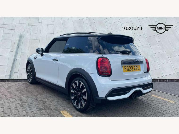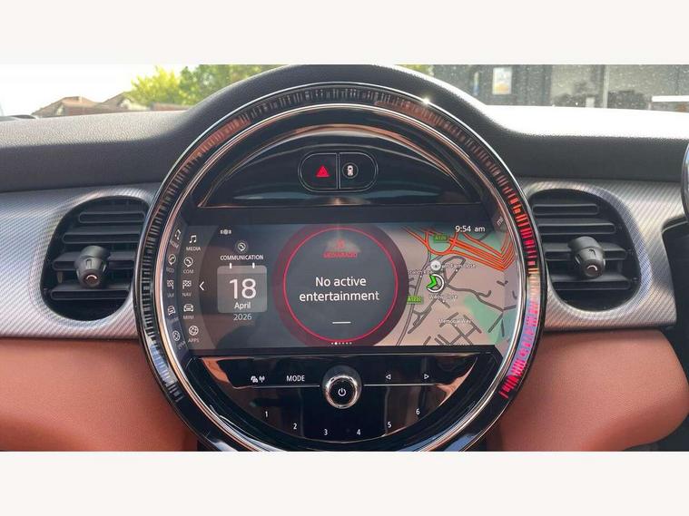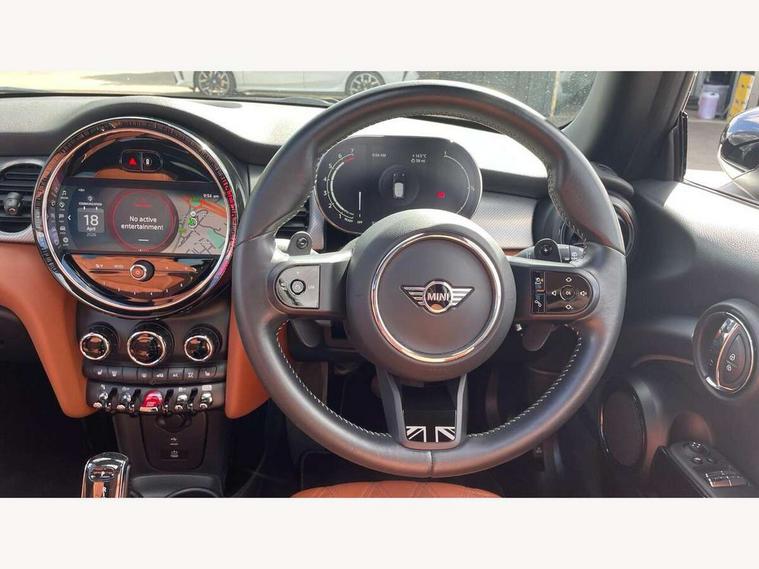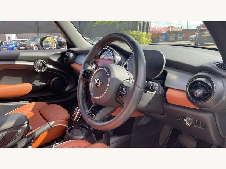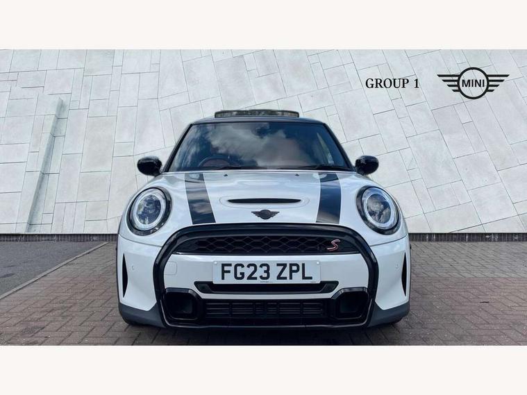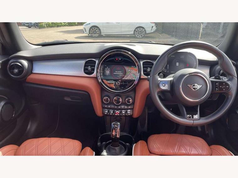 Apple CarPlay, Automatic start/stop function with brake energy recuperation, Compatible mobile phone bluetooth with audio streaming, Cruise control with brake assist, Electro-mechanical speed dependant steering assistance, Flexible car sharing preparation, Instrument cluster, MINI Driving Modes - centre toggle switch to control driving setting (sport, mid and green), Mini E-call, MINI TeleServices, On board computer, Rear park distance control, Service interval indicator, Double Vanos system, Fully variable valve control, High precision injection, Performance Control, Steptronic sport transmission with double clutch and steering wheel paddles, 8.8" touchscreen with LED ring, FM tuner and DAB digital radio, 3rd brake light, Automatic headlight activation switch, Bonnet scoop, Chrome line exterior - radiator grille bars, tailgate handle, lower front grille grating and rear central fog-light, Dynamic brake lights, Electric front windows, Heated rear window, Heated windscreen washer jets, LED headlight with closed ring and daytime driving lights, Metal door sill strips with Cooper S, Model logo Cooper S on right of tailgate, Rain sensor window wipers, Rear fog lights, Rear LED lights with union jack design, Rear window wiper, Side scuttle panel with integrated indicator, Sun/heat protection glass, White indicator lenses, 12V Accessory socket in centre console, 2 seat bench in 2nd row, 4 lashing eyes in luggage compartment, 60/40 split folding rear seat, Carbon black colour line - Knee roll and door armrest, Chrome interior highlights, Chrome line interior - air vents, gear lever base, door handles and speakers in doors, Cupholders, Front and rear head restraints, Front and rear isofix with front passenger airbag deactivation, Front floor mats in velour, Glove compartment, Height and length steering column adjustment, Interior lighting with 12 different colours across the dashboard, underneath door bezel with illuminated laser-engraved design on central display, Leatherette gearshift lever and handbrake gaiters, LED reading lights, vanity mirror lights, front foot well light and spotlight on front seats, Manual air conditioning, Mechanical seat adjustment - forward/back & backrest for front seats and driver seat height adjust, MINI yours badge on exterior pillar, Multifunction steering wheel, Passenger seat height adjuster, Satellite grey headlining including grab handles and clothes hooks, Single front passenger seat, Storage compartments in doors, Storage pocket on back of front seats, Sunvisors with vanity mirrors, Walknappa leather steering wheel with grey seam and MINI Yours badge on Piano Black lower steering wheel spoke, 3 point seatbelts on all four seats, 6 Airbags - front, side, head and seat belt tensioners, Anti-lock braking system (ABS), DSC - Dynamic Stability Control, Front and rear disc brakes, Two tone horn, Tyre pressure monitoring system, Alarm system with tilt sensor, monitoring doors, bonnet interior and tailgate, Electronic vehicle immobiliser, Start/stop toggle with keyless go, Tool kit,