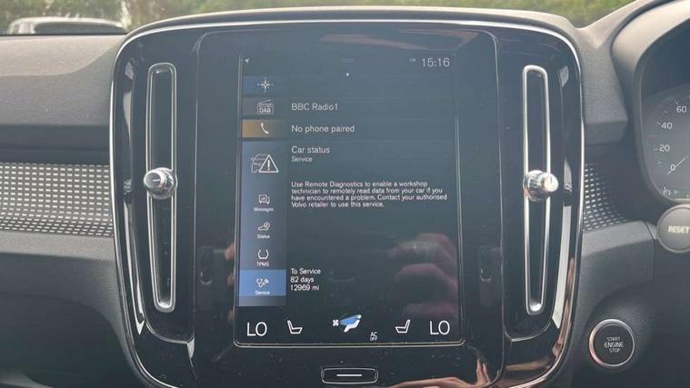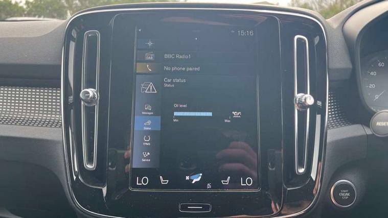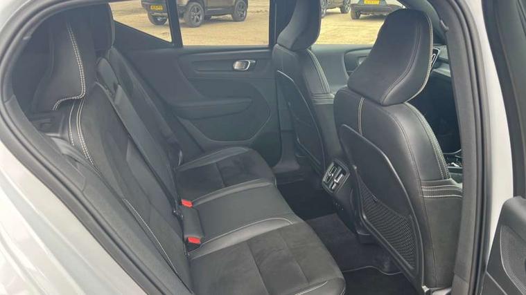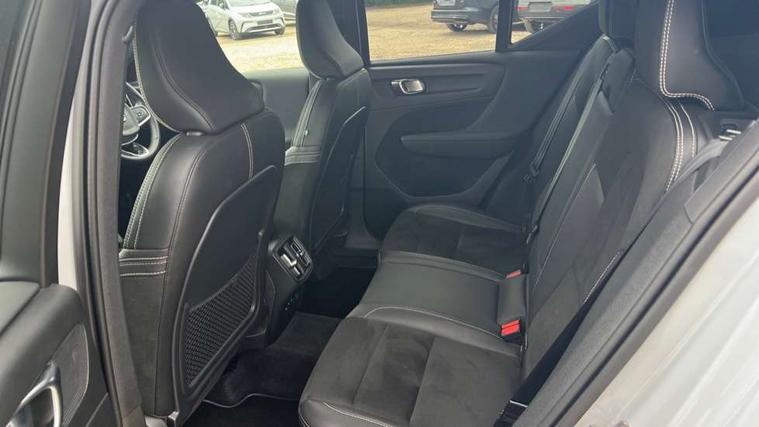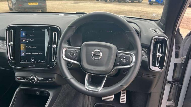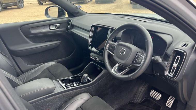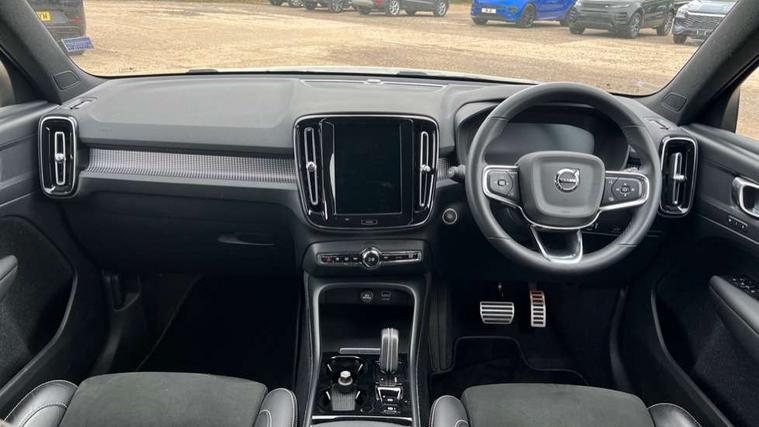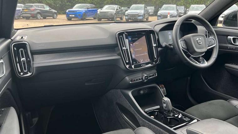 12.3" Active TFT crystal driver's instrument display, 9" centre console portrait touch screen, Adjustable steering wheel force, Bluetooth hands free telephone kit, Drive mode selector, Lane keep assist with driver alert control, Oncoming Lane Mitigation, Power operated tailgate, Sensus navigation with European mapping and traffic information, Speed limiter, Speed sensitive steering, Voice activated control for key functions, Volvo on call, Sports chassis, DAB Digital radio, Steering wheel mounted remote controls, Adaptive brake lights with high level LED brake lights, Auto dimming interior mirror, Automatic headlamp levelling, Black stone door mirrors, Black stone roof, Colour coordinated auto folding and heated power door mirrors, Dark tinted windows for rear door side windows and cargo compartment, Dual integrated exhaust pipes with high gloss black surround, Front aluminium tread plates, Front and rear electric windows, Heated front windscreen, Heated washer nozzles, High gloss black front and rear skid plate, High gloss black lower front bumper, High gloss black mesh front grille with high gloss black surround, High gloss black roof rails, High gloss black sensus surround deco, High gloss black window trim, Home safe and approach lighting, LED Headlights + Active high beam incorporating daytime running lights, Rain sensor with automatic windscreen wiper activation, Rear side wing doors, Rear wiper, Roof antenna, Roof spoiler, Visible VIN plate, 12V socket in front tunnel console and luggage compartment, 2 zone electronic climate control and rear air vent, 3 seat bench in 2nd row, 60/40 versatile split folding rear seat, A-pillar parking ticket holder, Bright metal luggage threshold, Centre console cupholders and storage, Charcoal headlining, Driver's side lower dashboard credit card storage compartment, Front footwell illumination, Front headrests, Front reading light and theatre lighting, Front seat cushion extensions, Front tunnel net pocket and integrated waste bin, Glovebox bag hook, Heated front seats, Height/reach adjustable steering column, Height/tilt adjustable driver's seat, High gloss centre tunnel deco, Illuminated glovebox, Illuminated luggage compartment, Illuminated tailgate, Illuminated vanity mirrors, Isofix attachments on outer rear seats, Key integrated remote, Leather gearknob, Load protection net, Multi directional lumbar support, Power driver seat with memory + exterior mirrors memory, Rear armrest / integral cup holders / storage tray, Rear coat hook, Single front passenger seat, Sports floor mats, Sports pedals, Sports tailored steering wheel, Underfloor cargo storage, Lighting pack - XC40, 3x3 point rear seatbelts, City safety includes pedestrian, cyclist and large animal detection and front collision warning with full auto brake, Drivers knee airbag, Dual stage driver/passenger airbags, Electronic parking brake with auto hold, First aid kit, Front and outer rear seatbelt reminder and pretensioners, Front seats SIPS airbags, Hill descent control, Hill start assist, Inflatable curtain, Passenger airbag cut-off device, Road sign information display, Run off Road Mitigation, Run off Road Protection, SIPS (Side Impact Protection System), Slippery road and hazard light alert, Stability and Traction Control with Spin control, Engine Drag Control and Corner Traction Control, Tyre pressure monitoring system, Vehicle deceleration control with Anti-lock Brake System, Electronic Brake Distribution and Emergency Brake Assist, Warning triangle, WHIPS whiplash protection system - front, Anti-theft alarm including immobiliser/volume sensor + level sensor, Care key with user defined top speed, Key integrated remote control central locking + fuel flap with deadlocking system and auto open/close power windows, Locking wheel nuts, Private locking for tailgate, Cutting edge aluminium inlay, Lower dashboard, tunnel console and door panel in charcoal,