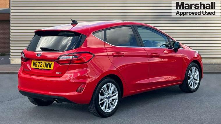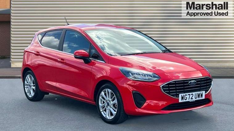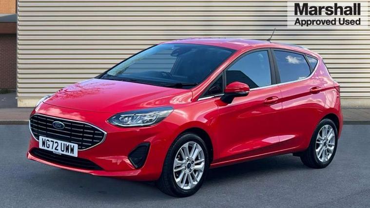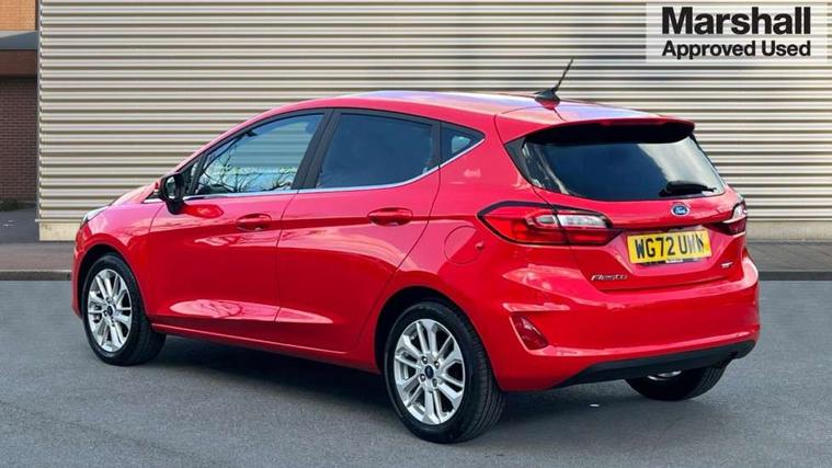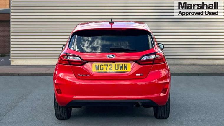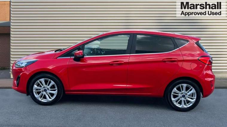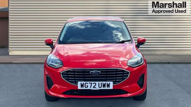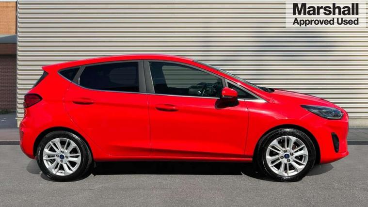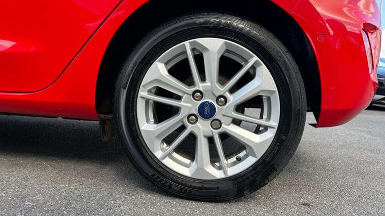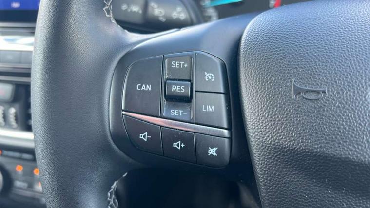 Bluetooth system, Electric power steering, Ford easy fuel, Ford SYNC 3 Navigation system incl 8" touchscreen, 7 speakers, FordPass connect, Apple carplay, android auto, voice control and emergency assistance, Rear parking distance sensors, Selectable drive modes (Normal, Sport, Track), Trip computer, 2 USB ports, Auxiliary input socket, DAB Digital radio, Steering wheel mounted controls, Body colour bumpers, Body colour door handles, Body colour rear spoiler, Body coloured electrically operated and heated door mirrors with side indicators, Chrome beltline trim, Chrome front grille, Chrome lower window surround, Cornering front fog lights, Electric front windows/one touch facility, Electric rear windows, Quickclear heated windscreen, Rain sensing wipers and auto dimming rear view mirror, Rear privacy glass, Rear wiper, 3 spoke leather trimmed steering wheel with audio control, 60/40 split folding rear seat, Adjustable head restraints, Boot carpet, Centre console with opening armrest, 2x cupholders, 12v and USB, Chrome inner door handles, Cloth upholstery, Footwell illumination, Front floor mats in velour, Front map reading lights, Front seat and rear pockets, Illuminated glovebox, Leather gaiter, Load area light, Luxury woven headliner, Manual 2 way passenger seat adjust, Manual 4-way driver seat adjust, Manual air conditioning, Overhead console with sunglasses holder, Pollen filter, Rake/reach adjustable steering wheel, Sensico wrapped steering wheel, NCAP Pack - Fiesta, 3 point seatbelts on all rear seats, ABS+EBA, Curtain airbags, Driver and passenger airbags, Drivers knee airbag, Electronic stability control with hill start assist, Front passenger airbag deactivation, Front side airbags, Seatbelt warning, Two tone horn, Tyre pressure monitoring system, Keyless start with 'Ford Power' starter button, MyKey system, Remote central locking & engine immobiliser, Thatcham Cat.1 alarm, 16" 10 spoke alloy wheels,