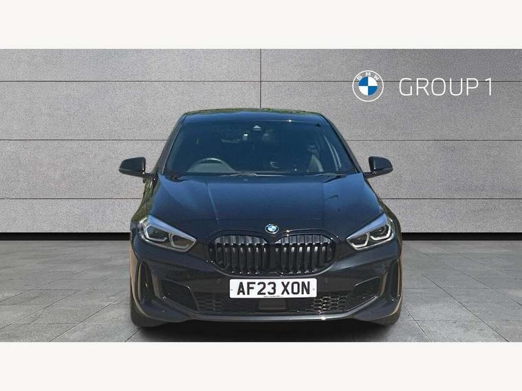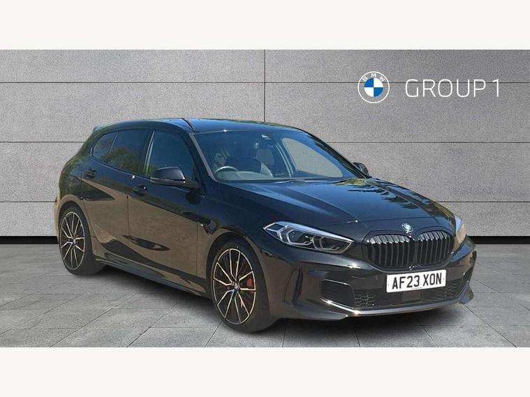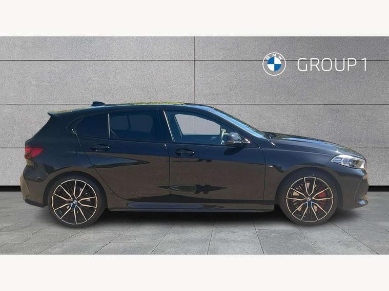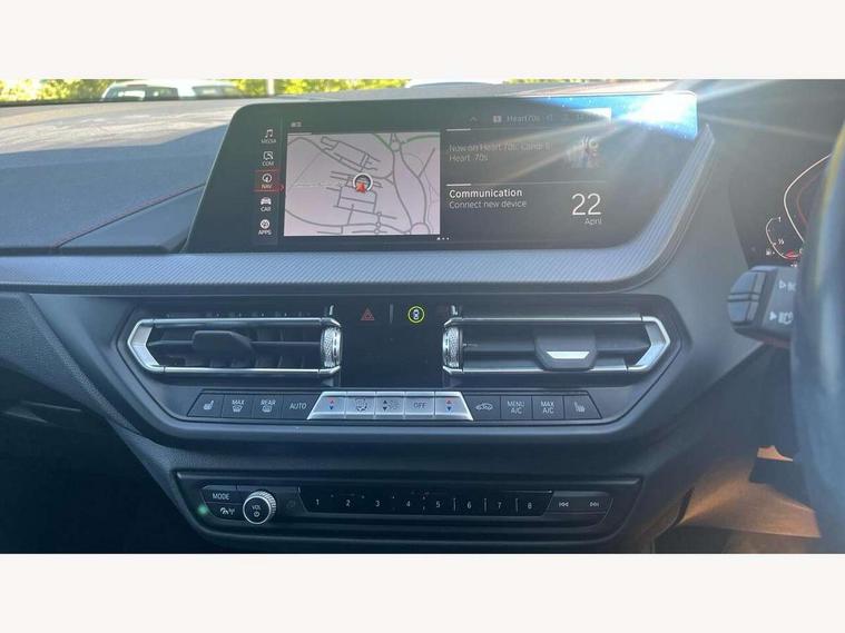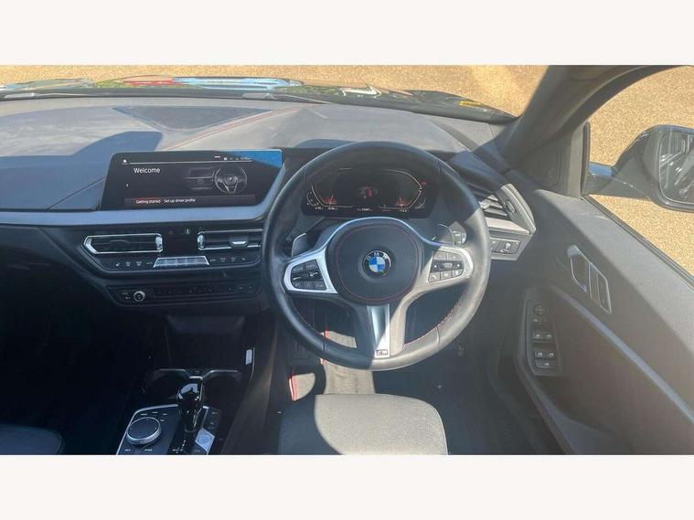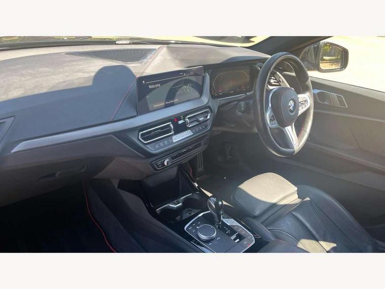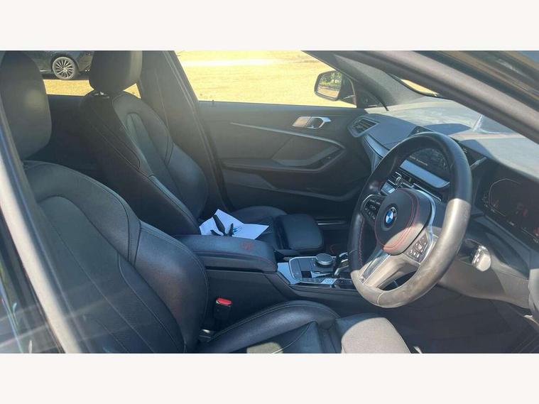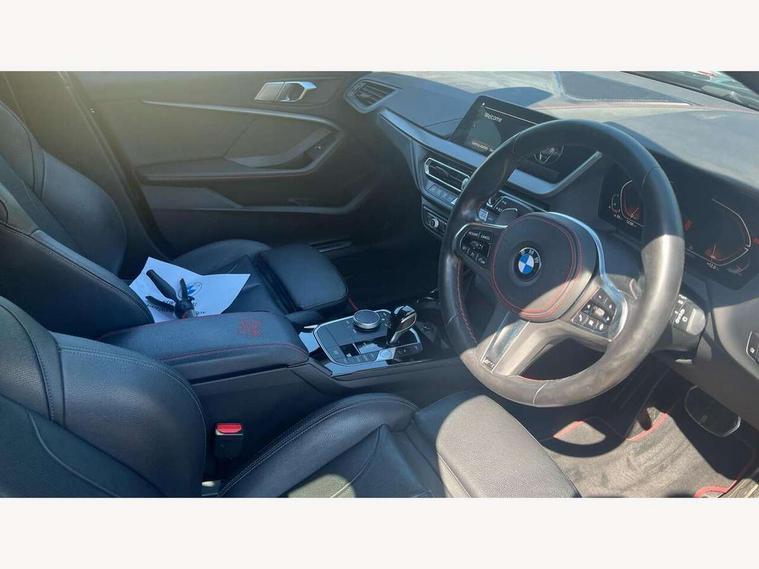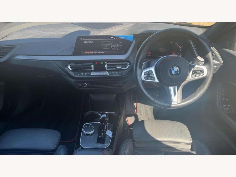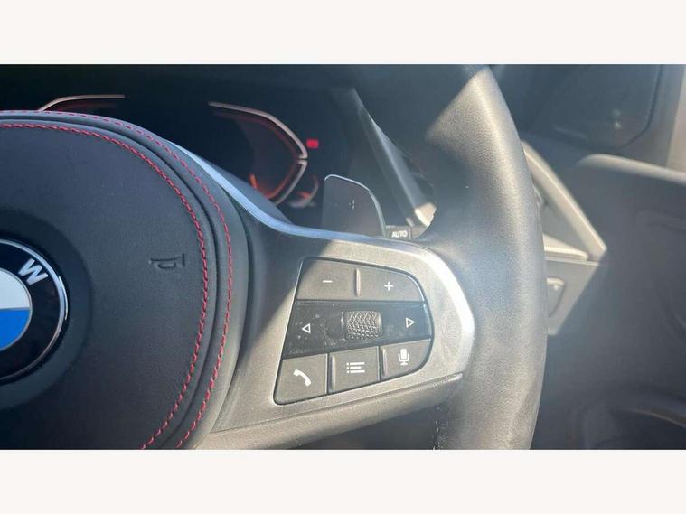 Active guard plus, Attentiveness assist, BMW ConnectedDrive online services, BMW Teleservices, Check Control warning system for monitoring of lights and door/luggage compartment open warning, Cruise control with speed limiter, Eco pro mode, Electric power steering with Servotronic steering optimised at all speed ranges, Front axle single joint with specific axle kinematics to minimise drive influences on steering + provide increased rigidity agile driving behaviour, Integrated owners handbook, Lane departure warning system, Oil sensor for level and grade, On board computer, Optimum shift indicator, Personal Profile, Pull away assistant, Rigidly mounted rear subframe - Multi link construction with separate spring / damper configuration and excellent driving characteristics, Speed limit Info including no-overtaking indicator, Aluminium lightweight construction, Anti roll bar front and rear, Balancer shaft, Double VANOS twin scroll turbocharging system, Drive Performance Control, Eight speed sport automatic transmission with gearshift paddle switches, Electronic differential lock, High precision injection, Larger fuel tank capacity (50 litres), M sport suspension with M128i xDrive specific settings, Petrol Particulate Filter, Twin tube gas filled shock absorbers with degressive characteristic curve, VALVETRONIC engine management, DAB Digital radio, Auto dimming rear view mirror, Automatic headlight beam throw control, Automatic windscreen wipers and automatic headlight, Black chrome tailpipe finishers, BMW individual high gloss shadow line with extended content, Body colour door handles, Body colour mirror caps, Body colour roof trims, Chrome 'M' logo side designation, Chrome kidney grille frame with Satin Aluminium struts, Direction indicator side lights in exterior mirrors, Electrically adjustable exterior mirror with mirror adjustment switch on drivers armrest and aspheric on driver side, convex on passenger side, Fading support, Folding side mirrors with auto dimming/folding wing mirrors with auto dimming, Follow me home headlights, Front and rear bumper system with replaceable deformation elements, Front and rear electric windows with open and close fingertip control, anti trap facility and comfort closing, Front door sill finishers in black plastic with M designation in metallic look, Green tinted heat protection glazing, High gloss shadowline window frame, Recess cover mirror frames and B/C pillar embelisher trim, High level third brake light, Integrated front windscreen with washer jets, Kidney frame and struts in high gloss black extended, LED daytime running lights, LED eyebrow turn indicators, LED front fog lights, Lightweight engineering, Matt black air guide grilles, Matt black wheel arch trim, Model designation on electric bootlid, Nearside reverse light in rear light cluster, Preparation for high beam assistant, Rear fog lights, Rear side wing doors, Rear window wiper, Shark fin antenna, Trailer stabilisation logic, Visible VIN plate, Welcome lighting, 12V power socket in front centre console with blanking plug, 3 rear seat head restraints, 3 seat bench in 2nd row, Anthracite headlining, Black boot net with lashing eyes, Cargo function on 2nd seat row, Child seat ISOFIX attachment for two outer rear seats and front passenger seat with anchorage points, Conditioned based service, Driver and front passenger backrest net on rear, Driver and front passenger seat heating, Driver side folding compartment in instrument panel, Folding rear clothes hook, Four grab handles integrated in roof lining, Front and rear door pockets with bottle holders, Front and rear side armrest integrated into door trim, Front armrest, Front sports seats, Glove compartment, Height adjustable front head restraints, Luggage compartment for bag hooks on left and right, foldable luggage compartment liner and four lashing eyelets, Manual adjust steering wheel, Multi-function controls for steering wheel, Single front passenger seat, Storage compartment in centre console, Storage compartment in luggage compartment, Stowage of the parcel shelf in luggage compartment trim, Sun visors with vanity mirrors and insert tab, Three spoke M sport design multi function leather steering wheel in unique red stitching, Two front centre console cupholders, Two zone automatic air conditioning, Type C two USB ports in rear centre console, Additional interior lighting pack - 1 Series, BMW live cockpit professional pack- 1 Series, Connected pack professional - 1 Series, Interior lights pack - 1 Series, M Sport exterior styling aerodynamics pack - 1 Series, 2 tone horn, 3 point seatbelts on all seats, front pyrotechnic belt tensioners, stopper and belt force limiters, rear coded belt buckles, Airbags - Front driver/passenger, front and rear curtain head protection, front side, manual deactivation of front passenger airbag, Anti lock braking system (ABS) with brake assist, BMW emergency call, Brake drying, Braking readiness, Child proof locking system in rear door, City braking function, Comfort modes, Cornering brake control, Crash sensor activating of airbags, Unlocking doors, hazard warning lights, interior light, safety battery terminal, Driver and front passenger seat belt security check, Dynamic stability control + (DSC+), Dynamic Traction Control - DTC, Electrically operated hand brake including automatic hold function, Front and rear disc brakes, M Sport brakes with red calipers, M Sport seatbelts, Seatbelt warning, Side impact protection, Tyre pressure monitoring system, Warning triangle and first aid kit, Central locking switch for all doors, fuel filler cap and luggage compartment, Deadlocking function system to all doors, Drive away locking system on all doors and luggage compartment with de-activated in iDrive settings, Locking wheel bolts, Remote control with integrated key with High-gloss Black inlay and M designation and 1 button for open/ close lock, window, open luggage compartment, Start/stop button illuminated in
